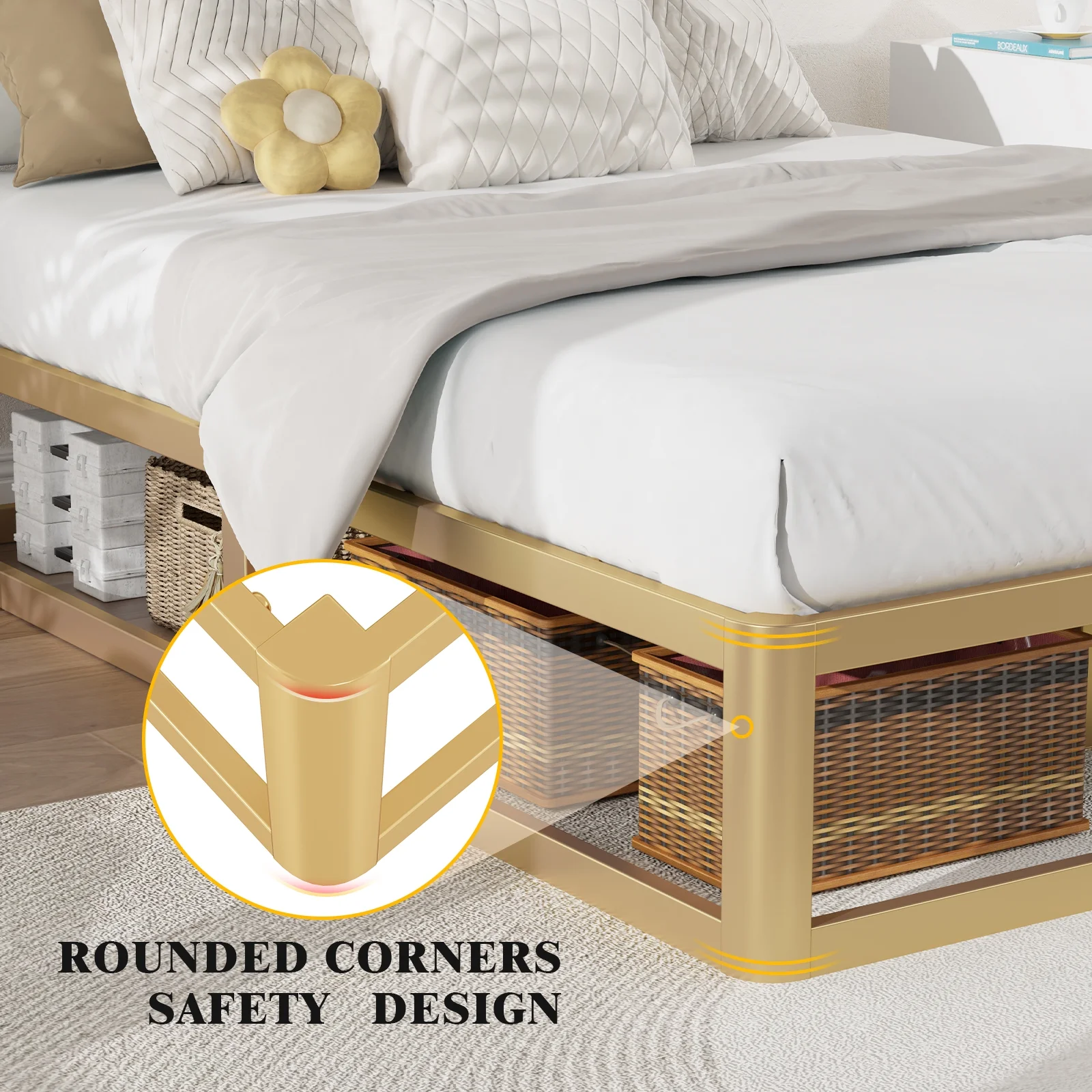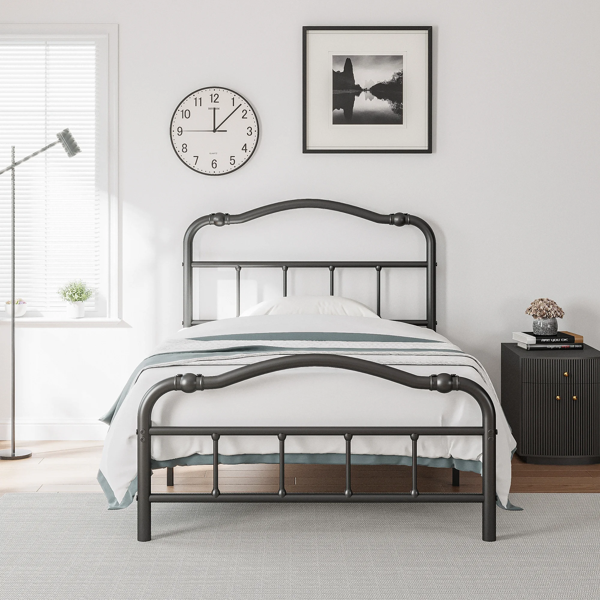 FDW Bed Frame Full Metal Folding Base Mattress Foundation 14 inch No Box Spring Needed,Black