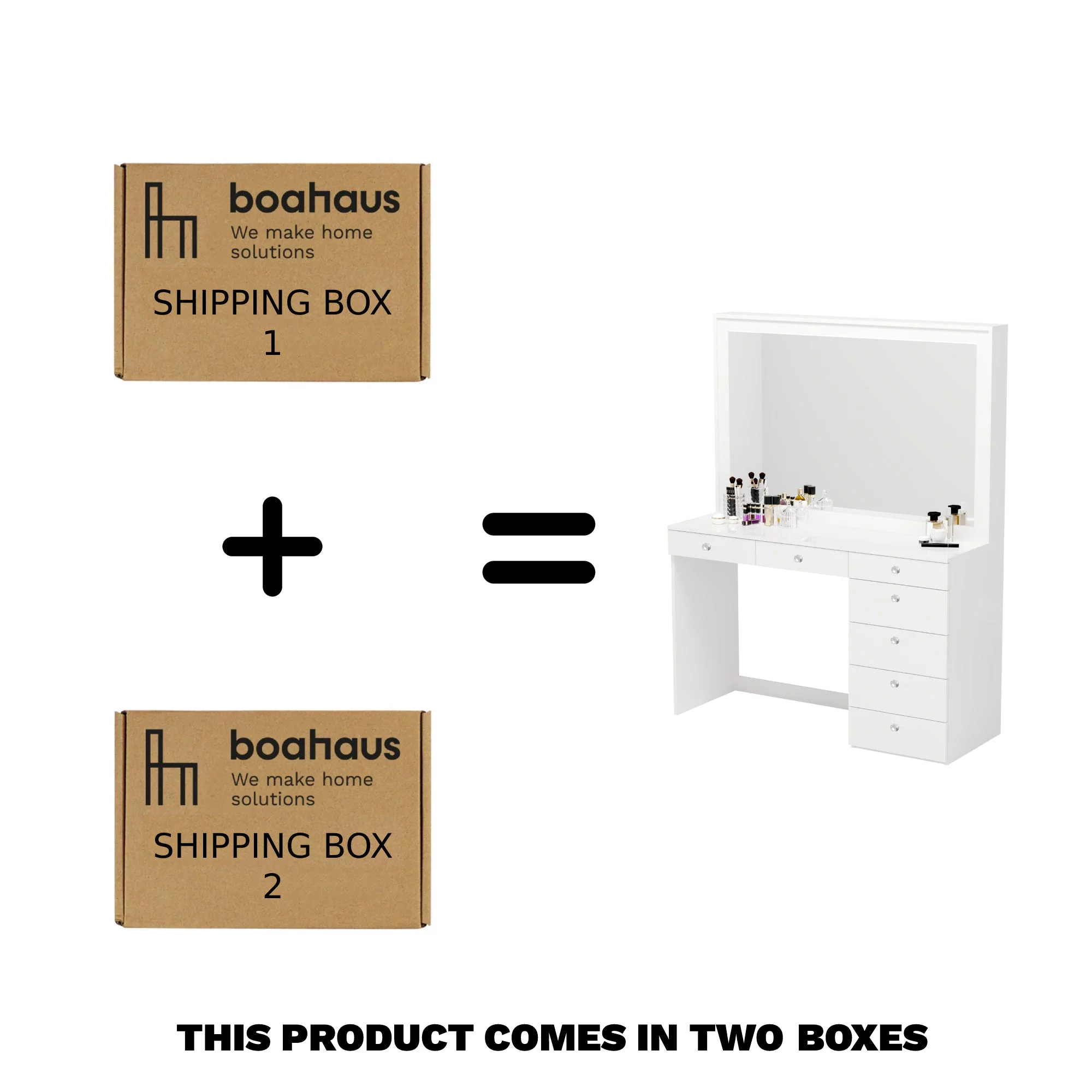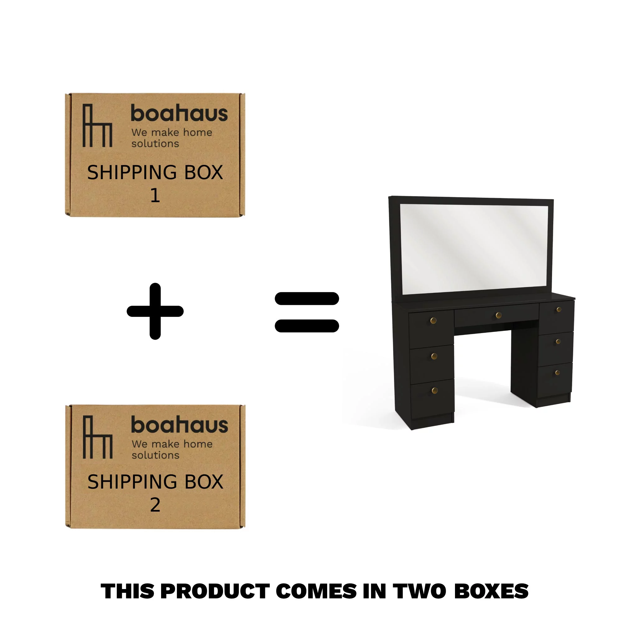 Boahaus Kira PRO Modern Makeup Vanity, 5 Drawers, Mirror, Golden Knobs, Black, for Bedroom