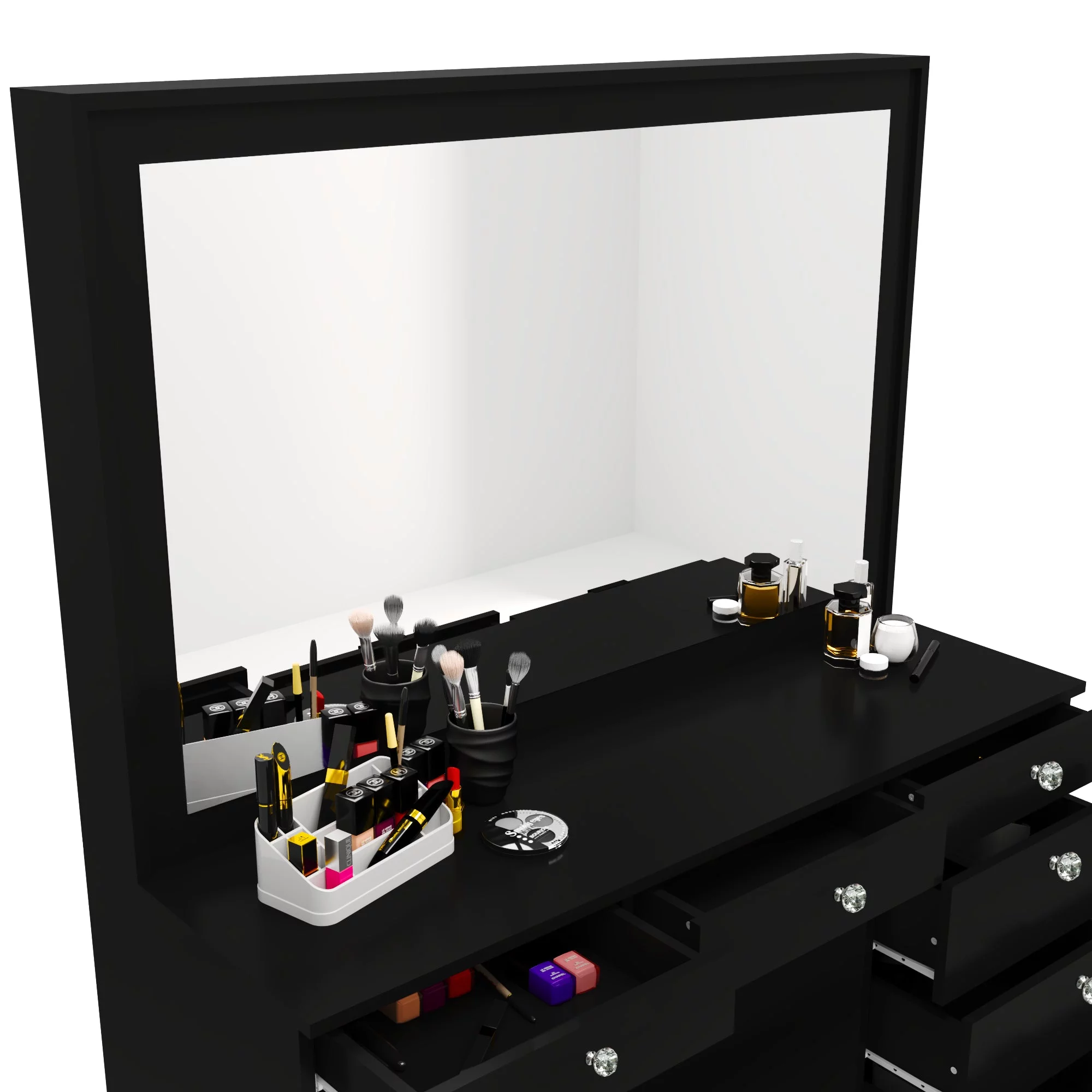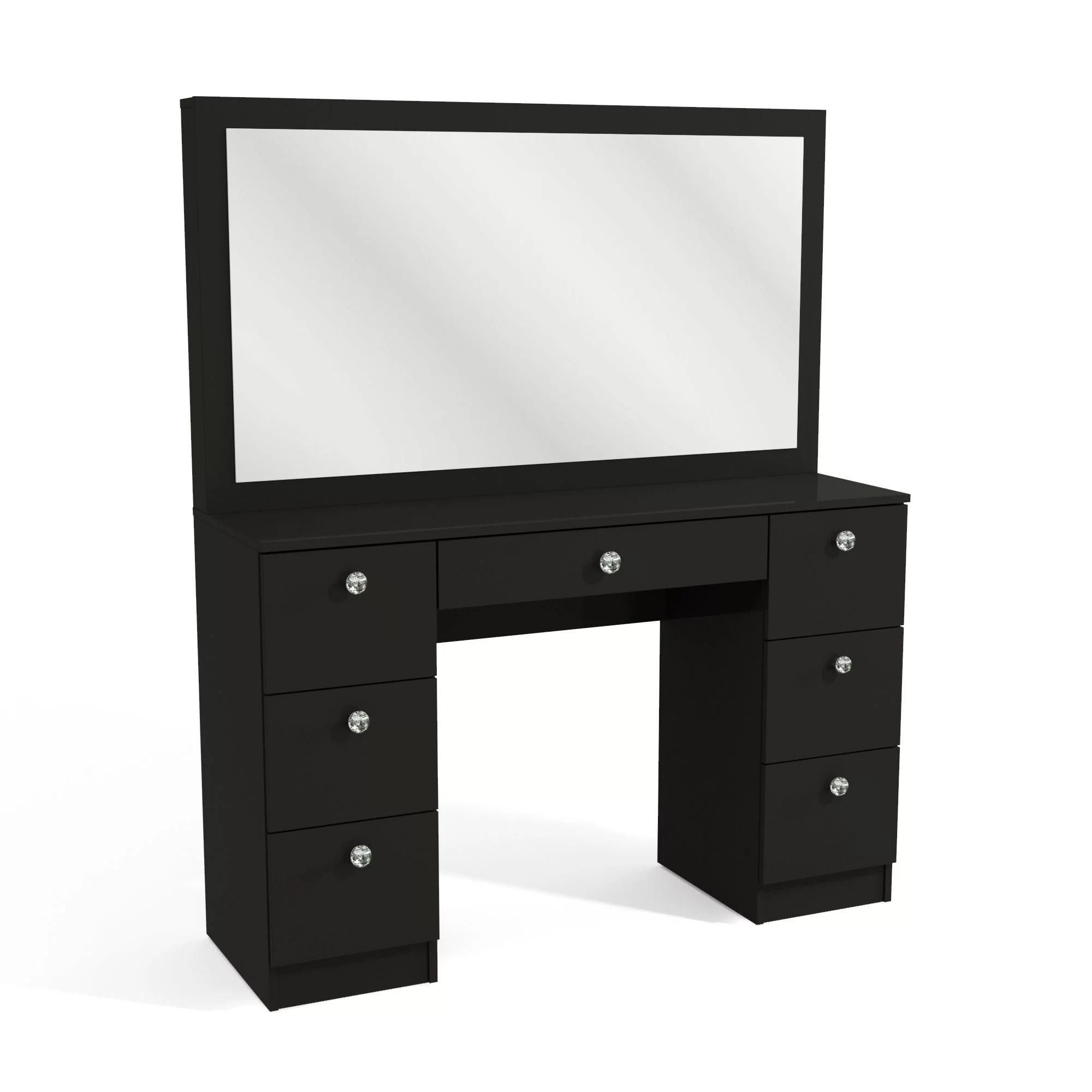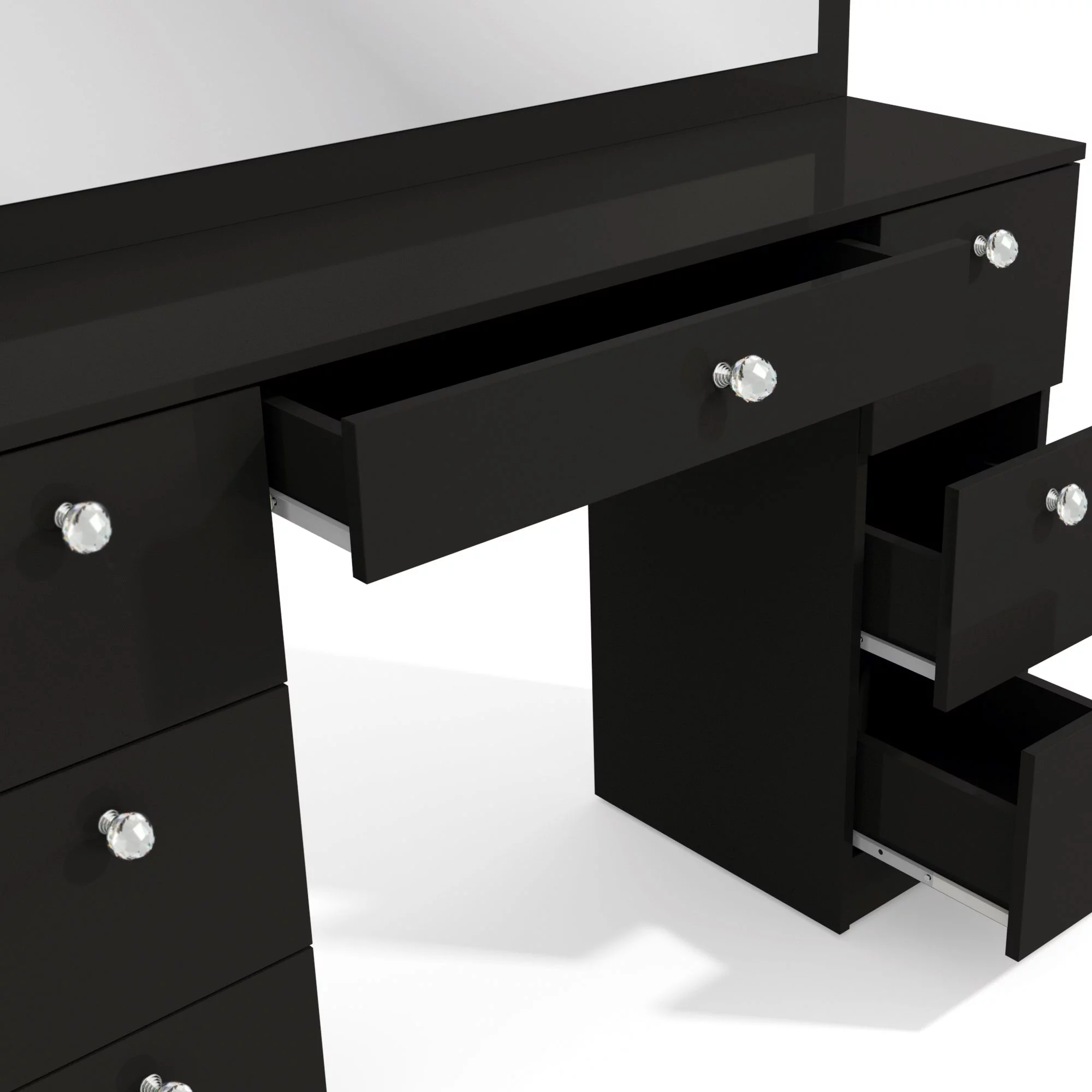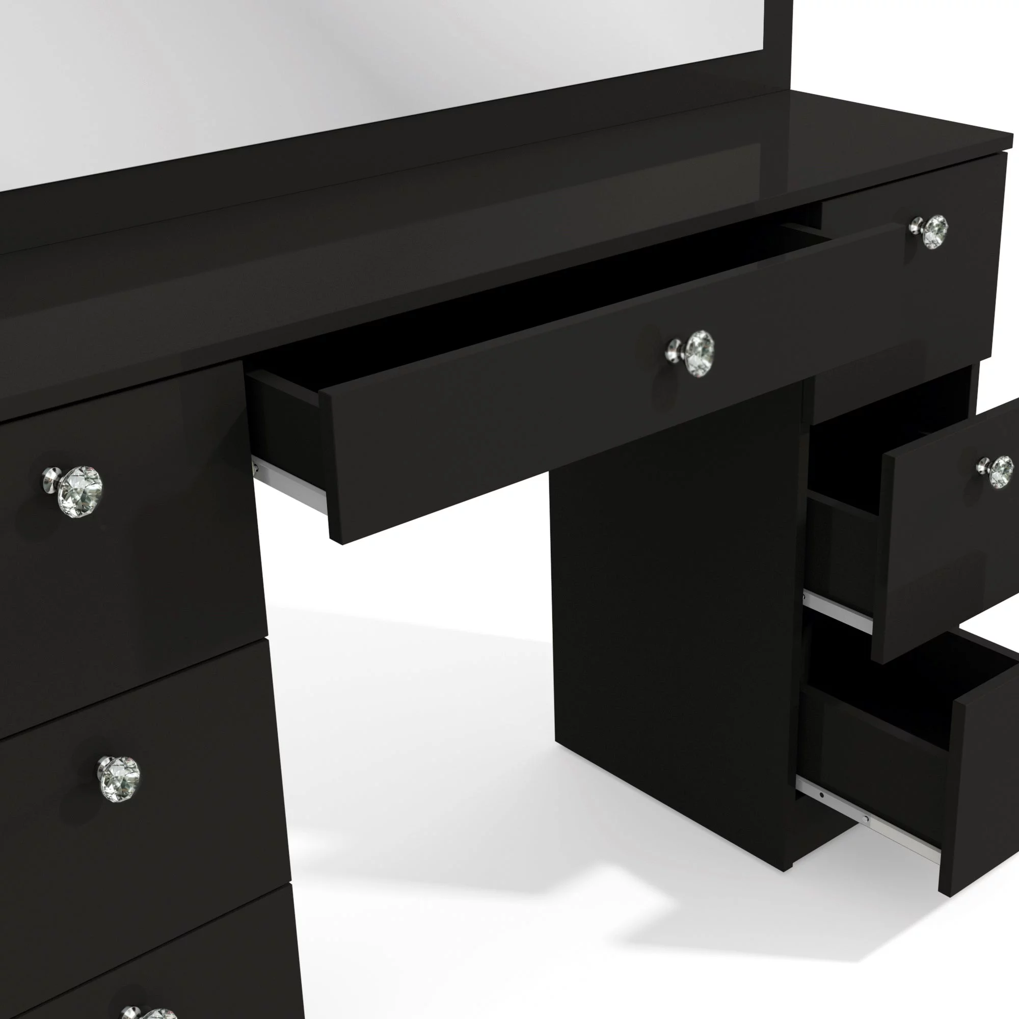 Boahaus Modern Black Painted Vanity Table with Crystal Knobs, for Bedroom