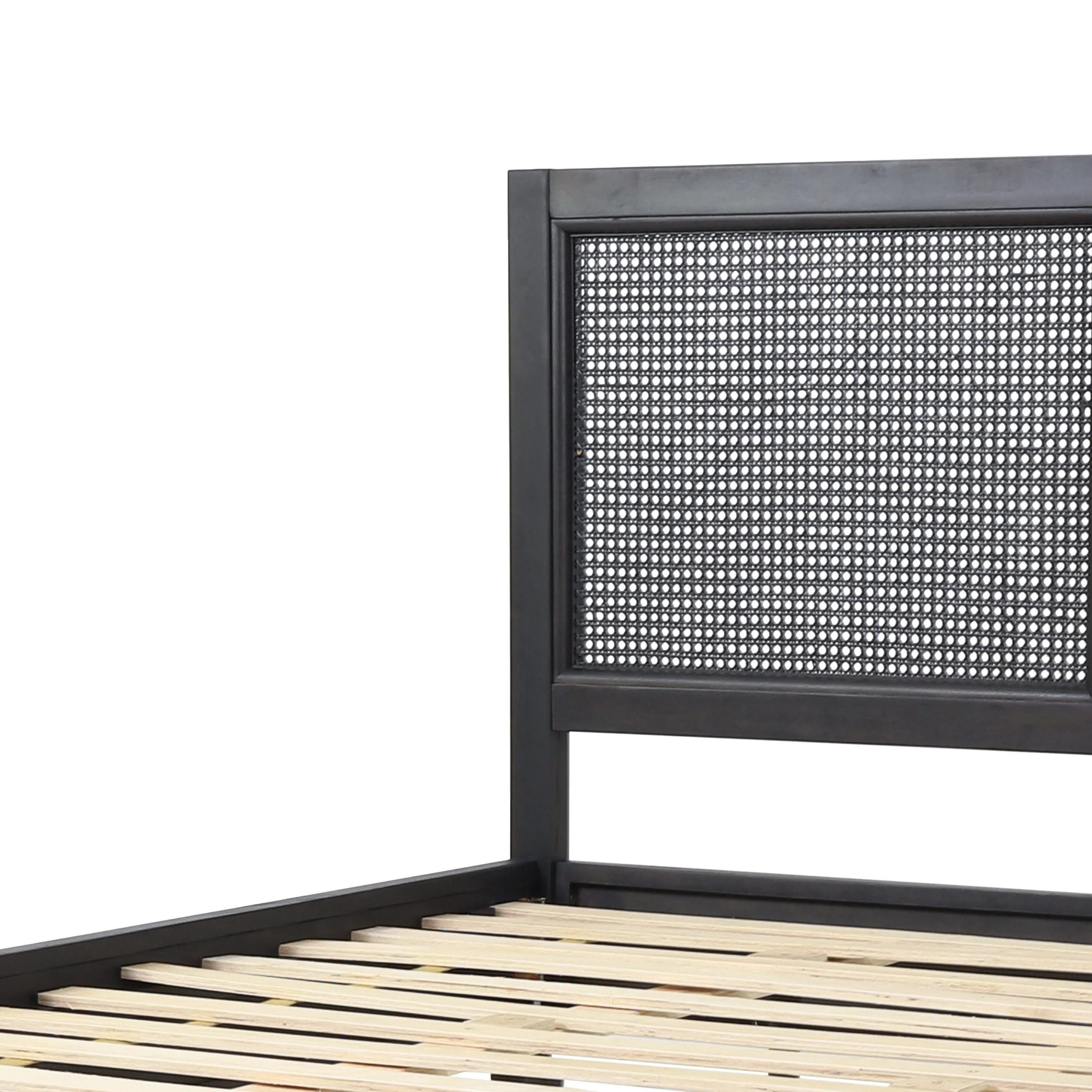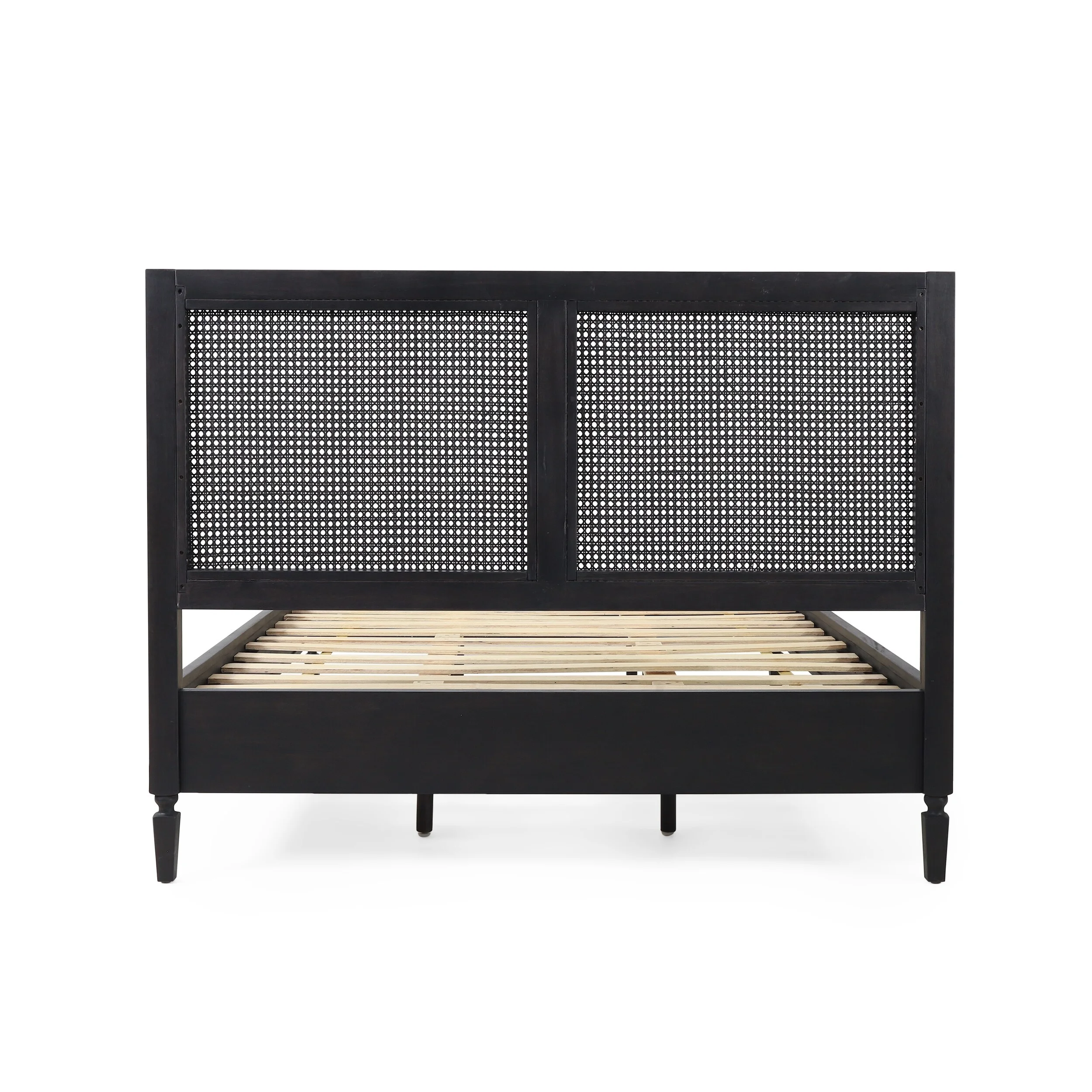 Walker Edison Boho Solid Wood and Rattan Paneled Queen Bedframe, Black
