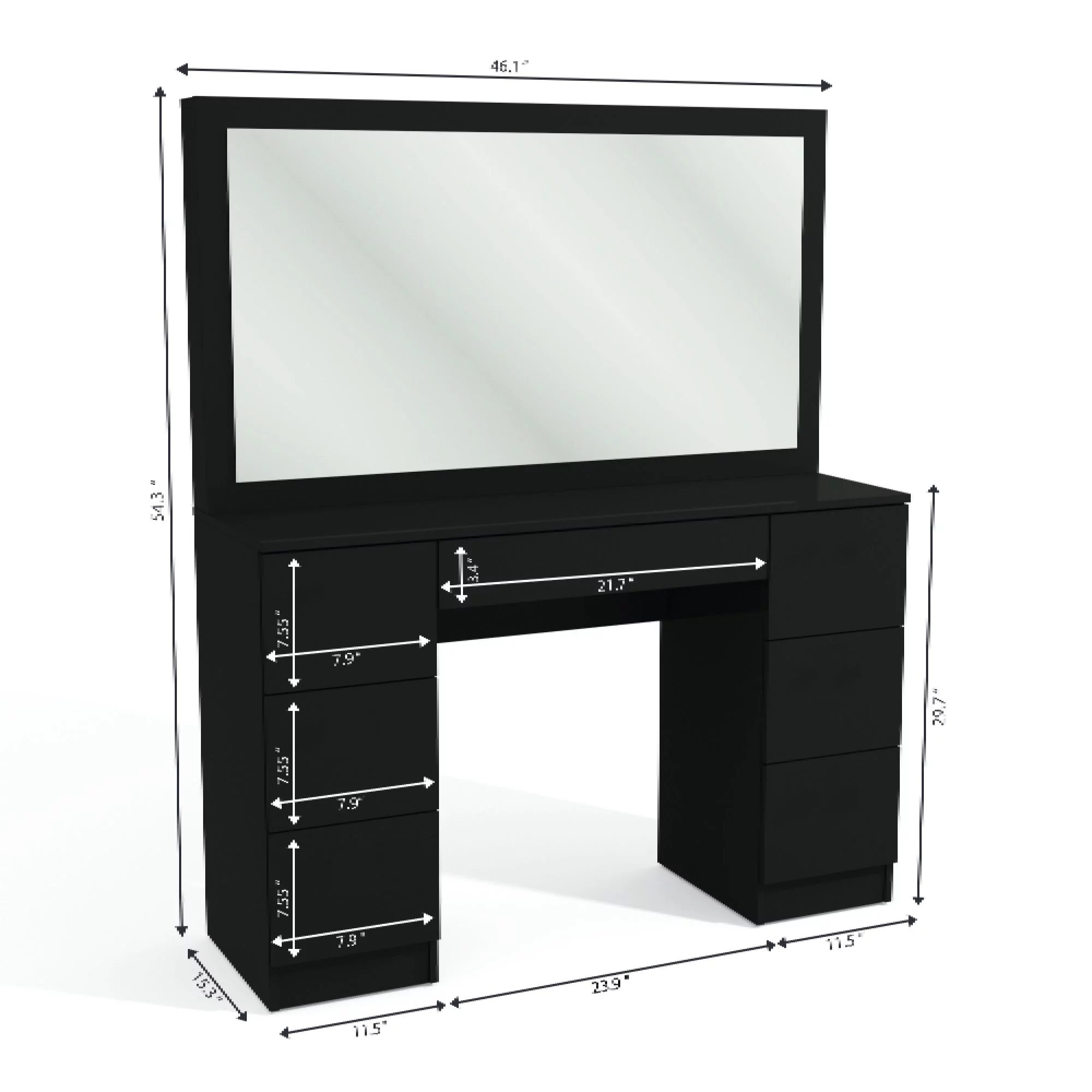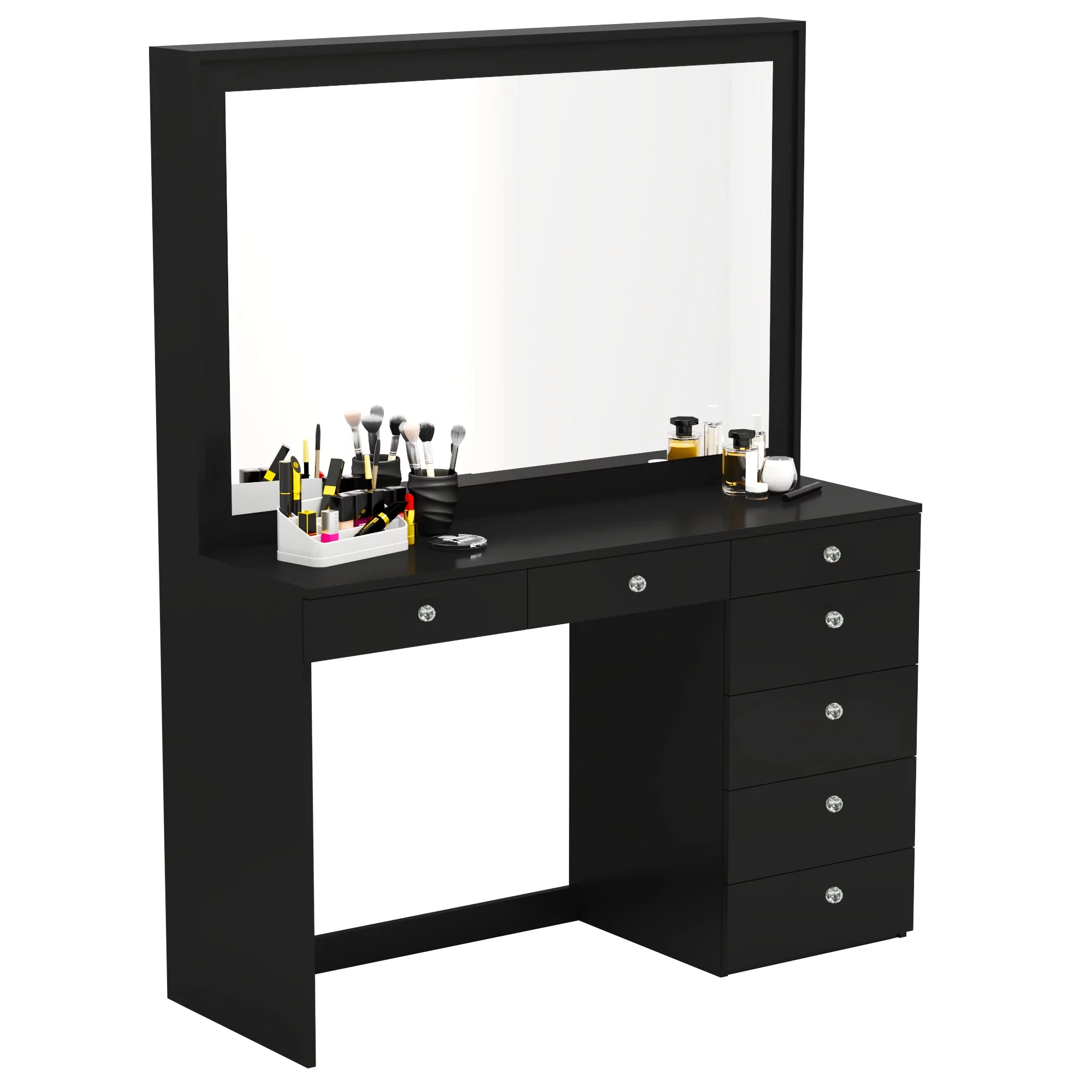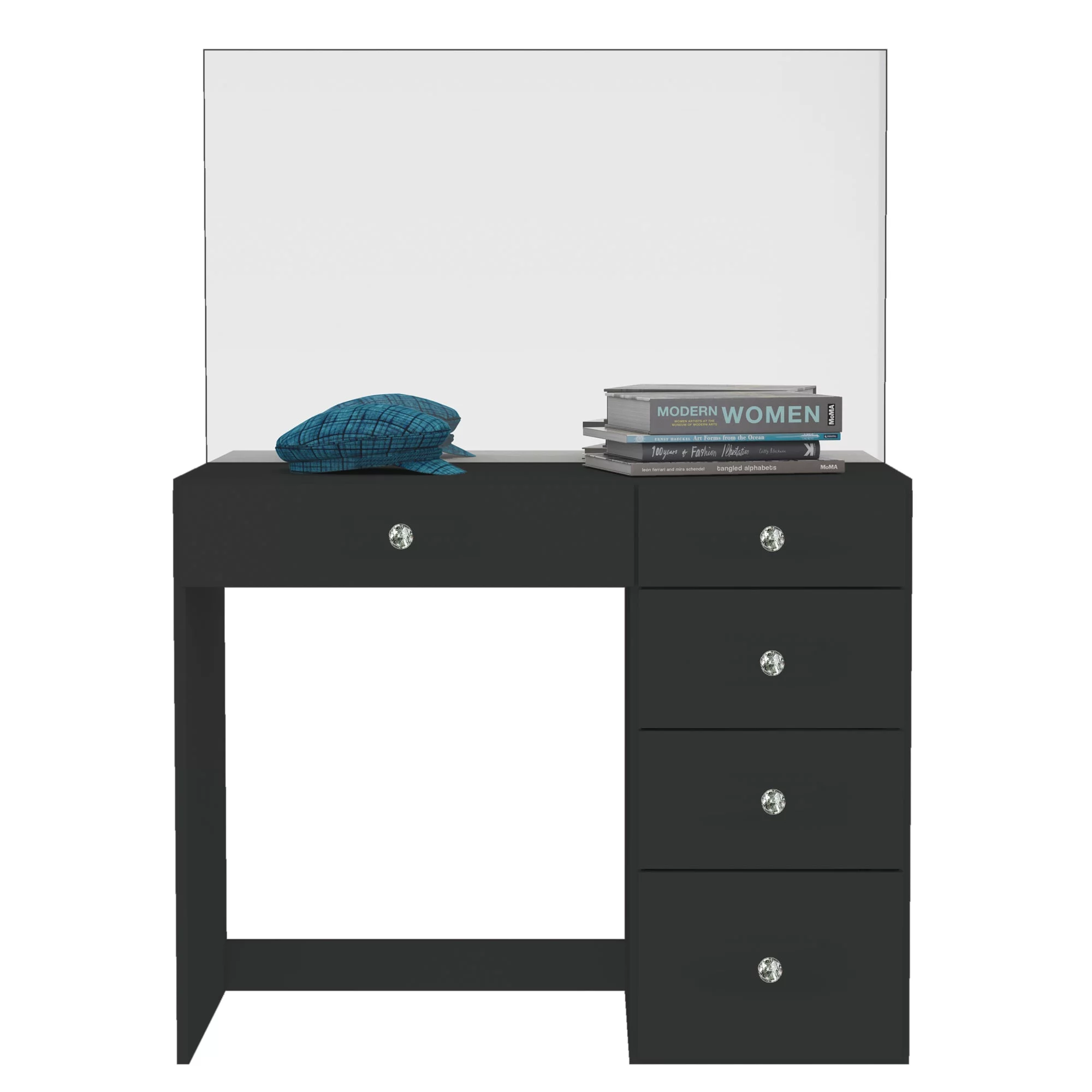 Boahaus Kira PRO Modern Makeup Vanity, 5 Drawers, Mirror, Crystal Knobs, Black, for Bedroom