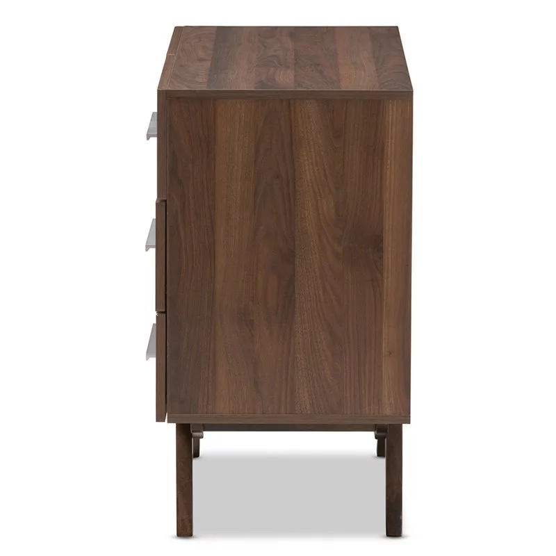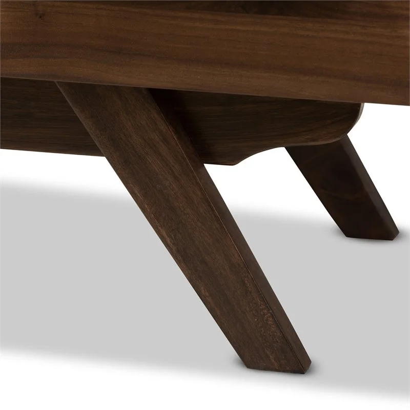 Baxton Studio Nura Mid-Century Walnut Brown Wood and Rattan Platform Bed - Full Queen