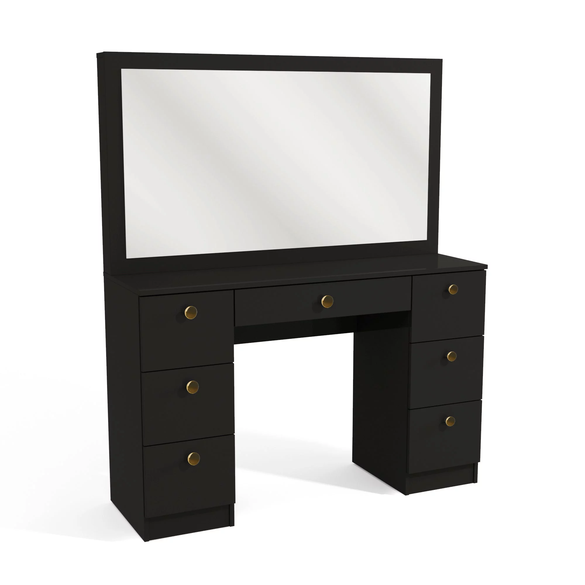 Boahaus Artemisia Modern Black Painted Makeup Vanity Table with Golden Knobs, for Bedroom