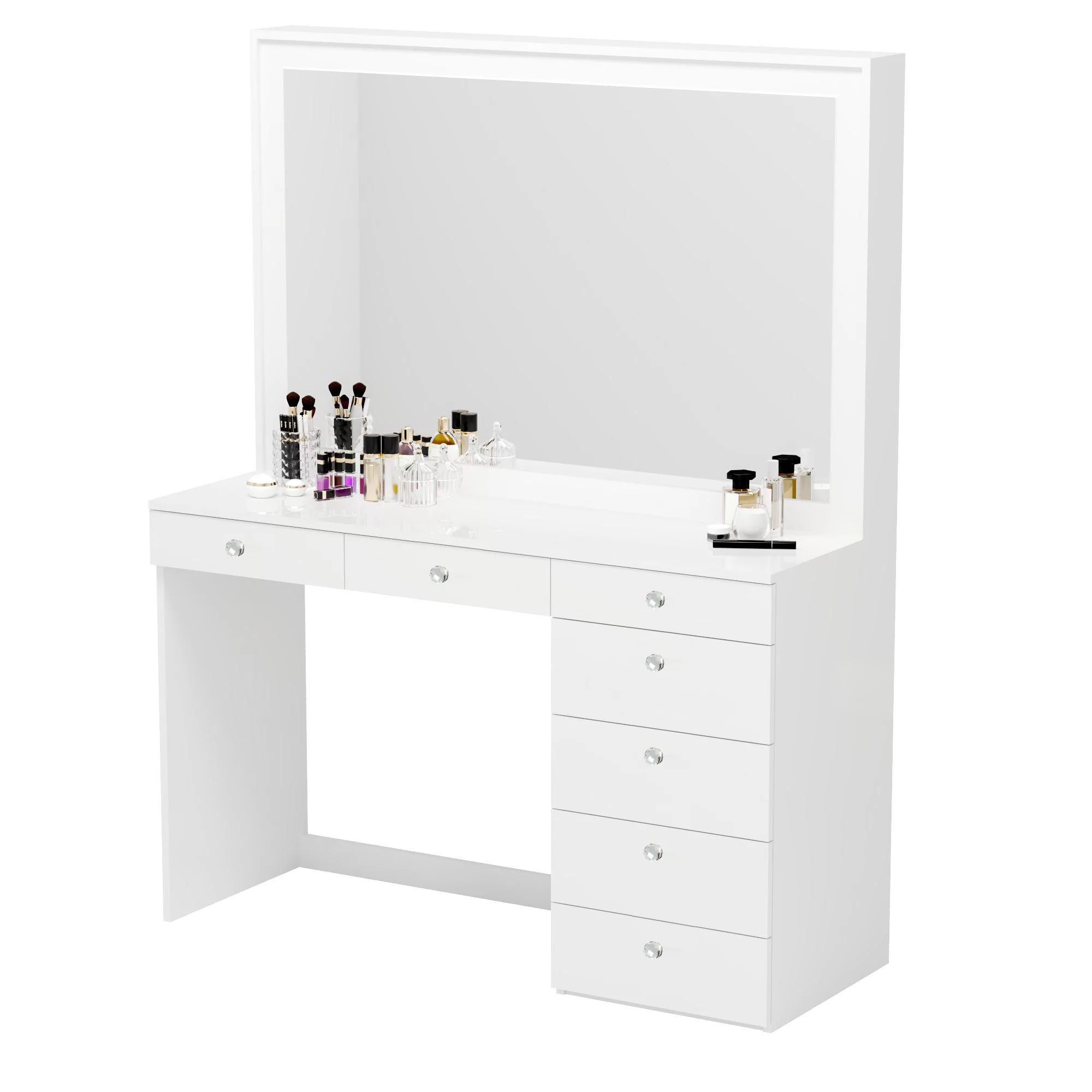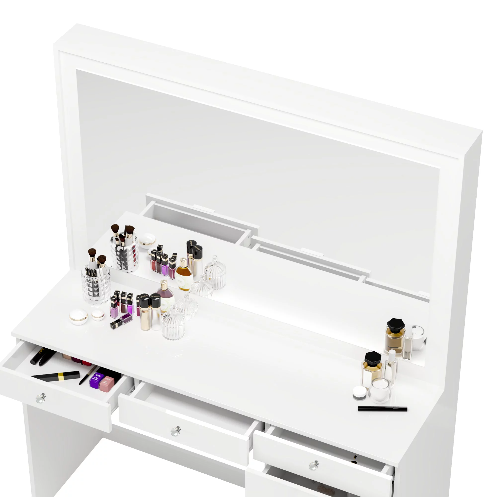 Boahaus Modern White Painted Makeup Vanity Table with Crystal Ball Knobs for Bedroom