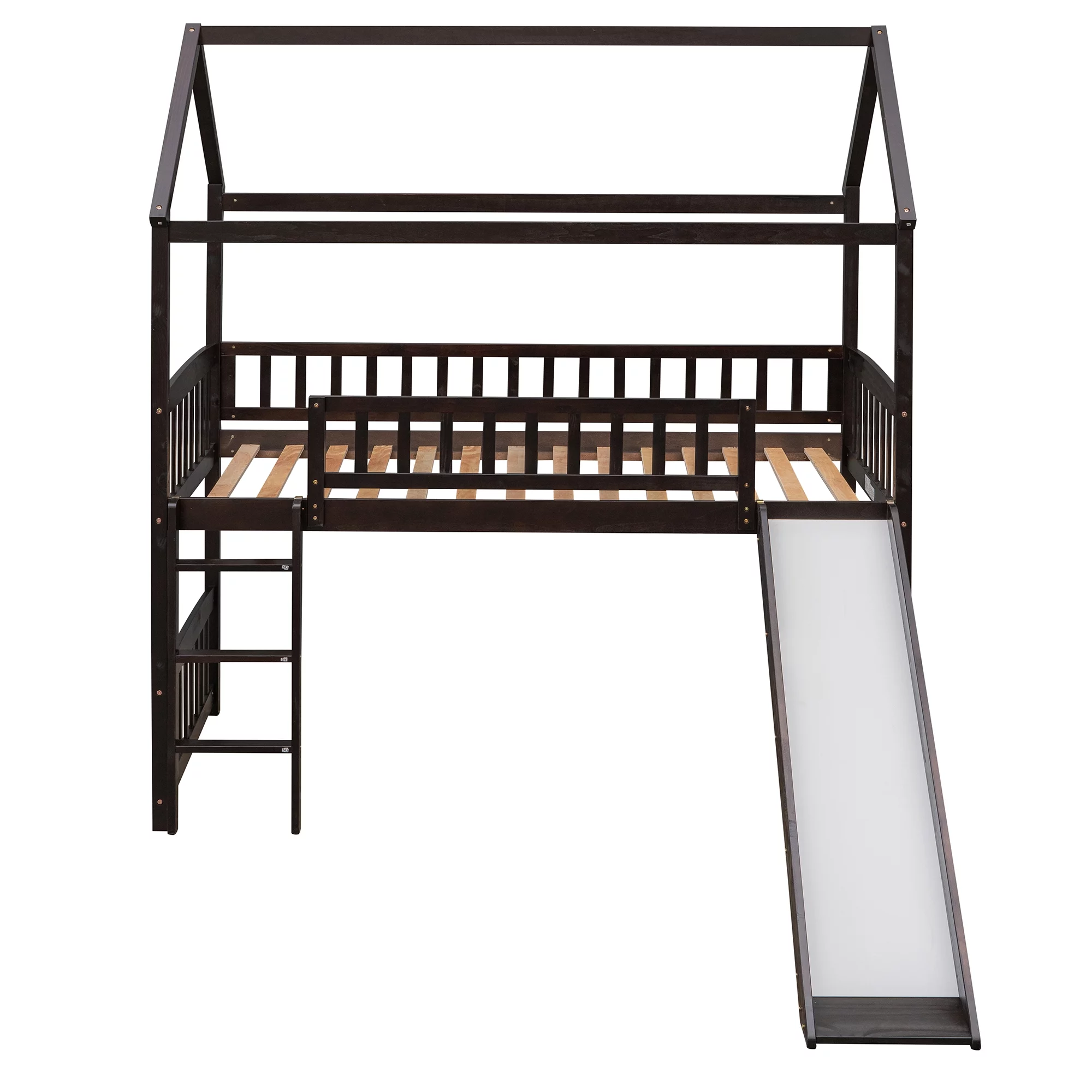 Aukfa Twin Loft Bed with Slide, House Bed with Headboard for Kids Teens Adults - Espresso