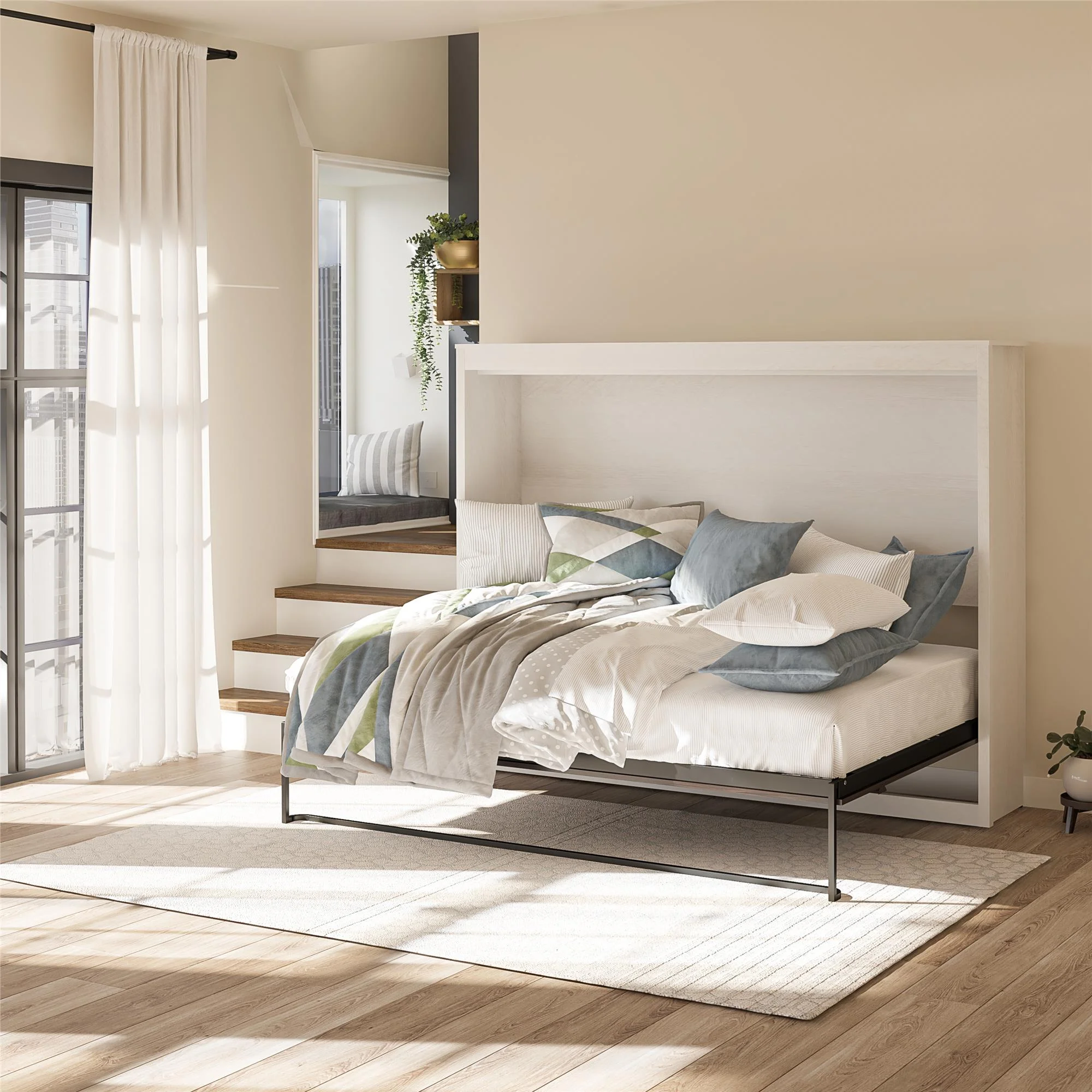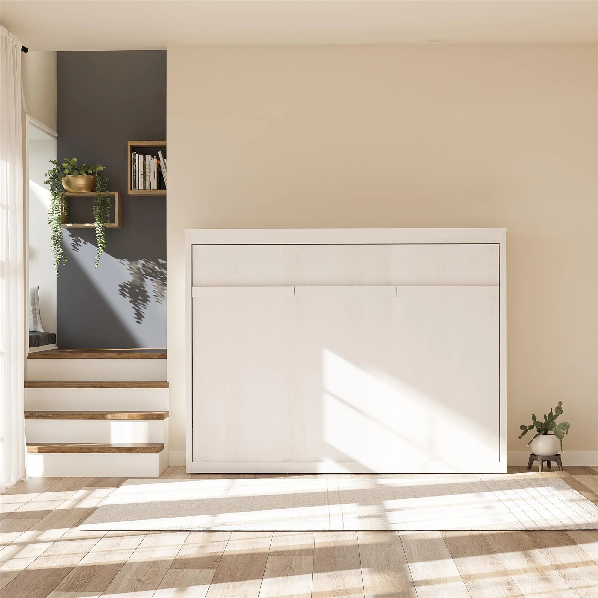 Signature Sleep Paramount Full Size Murphy Daybed with a Shelf, Ivory Oak