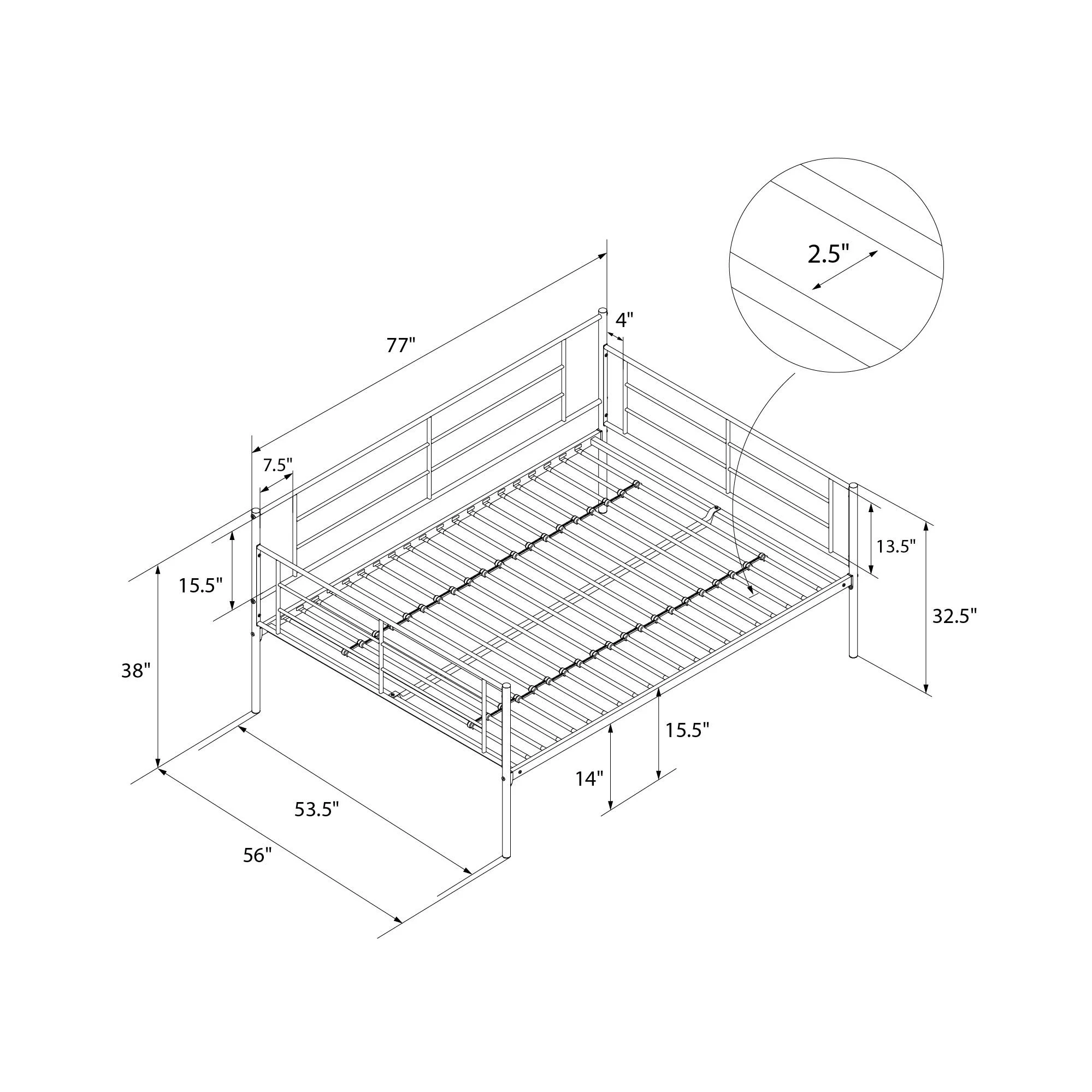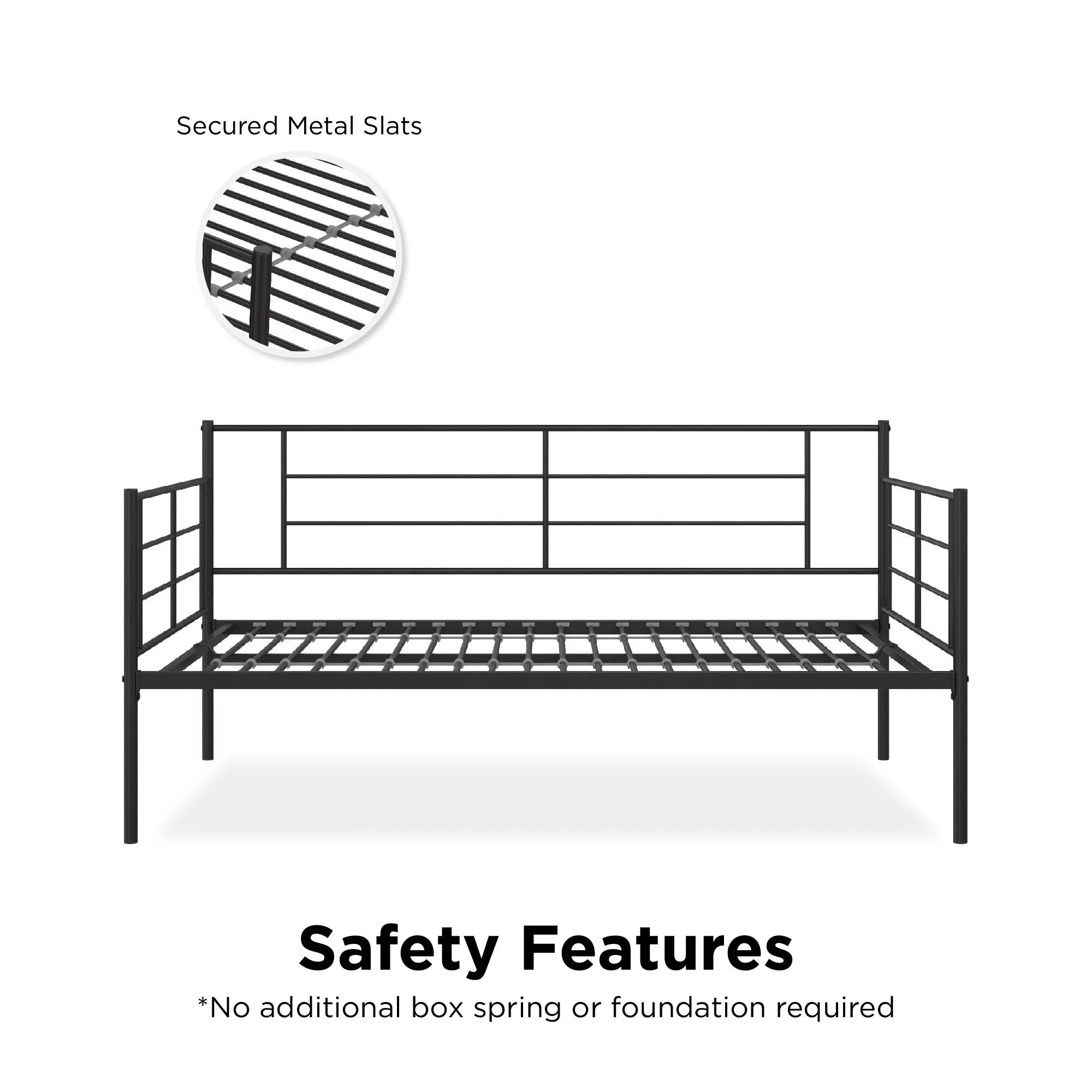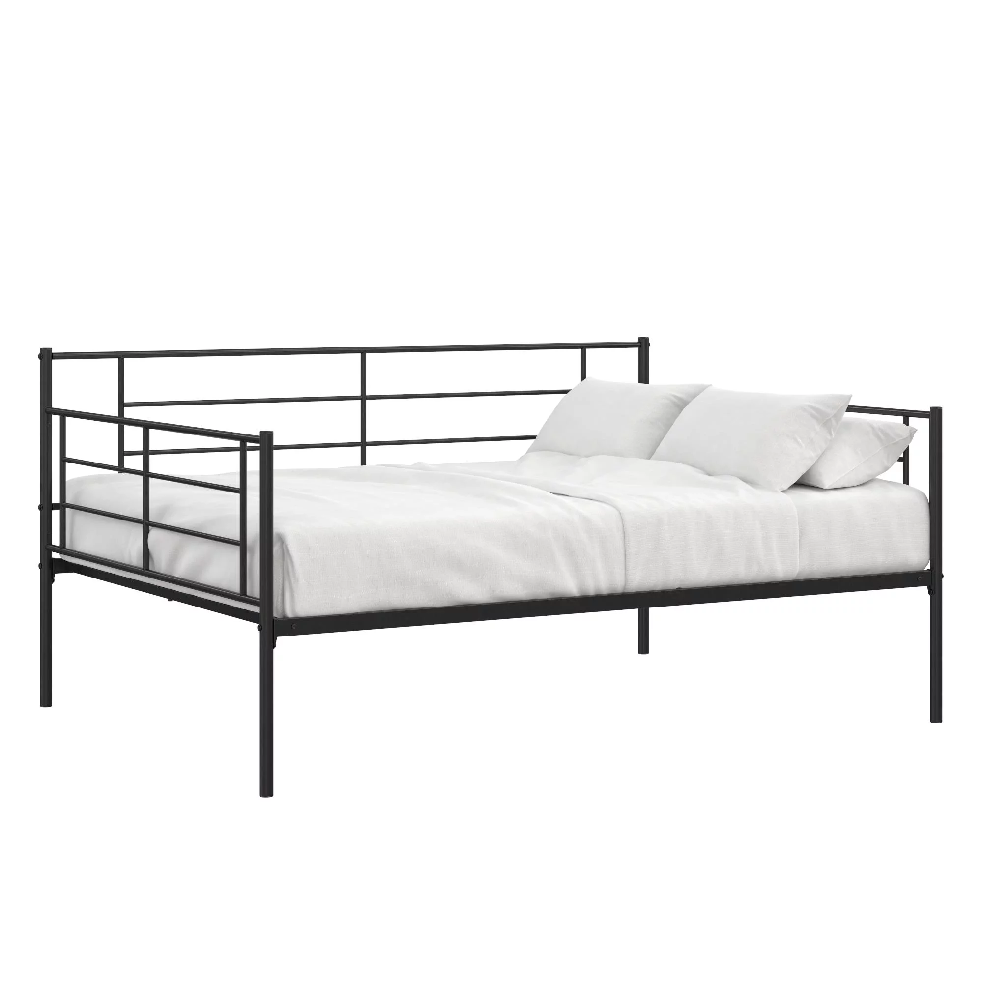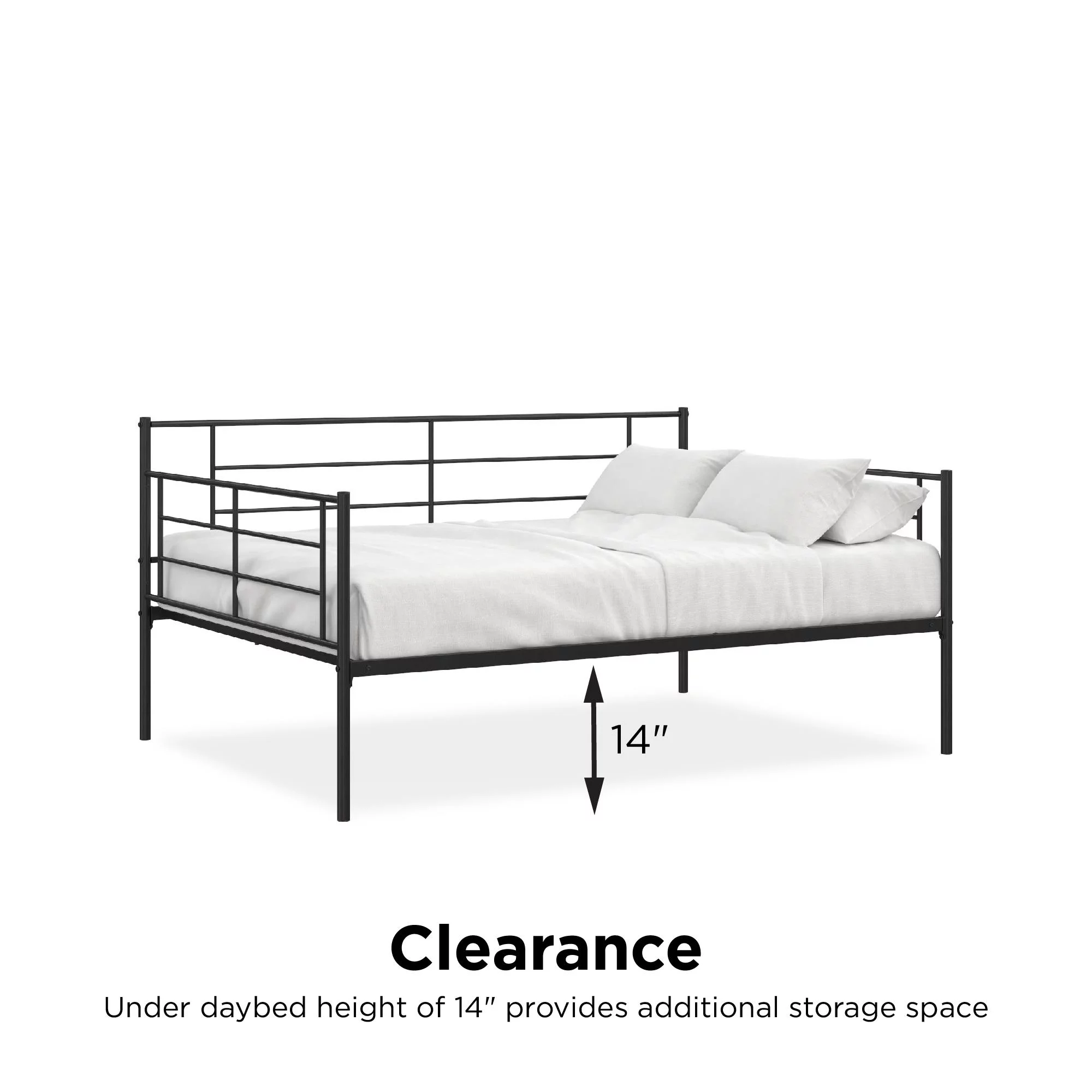 RealRooms Praxis Metal Daybed with Steel Frame and Slats, Under Bed Storage, Full, Black