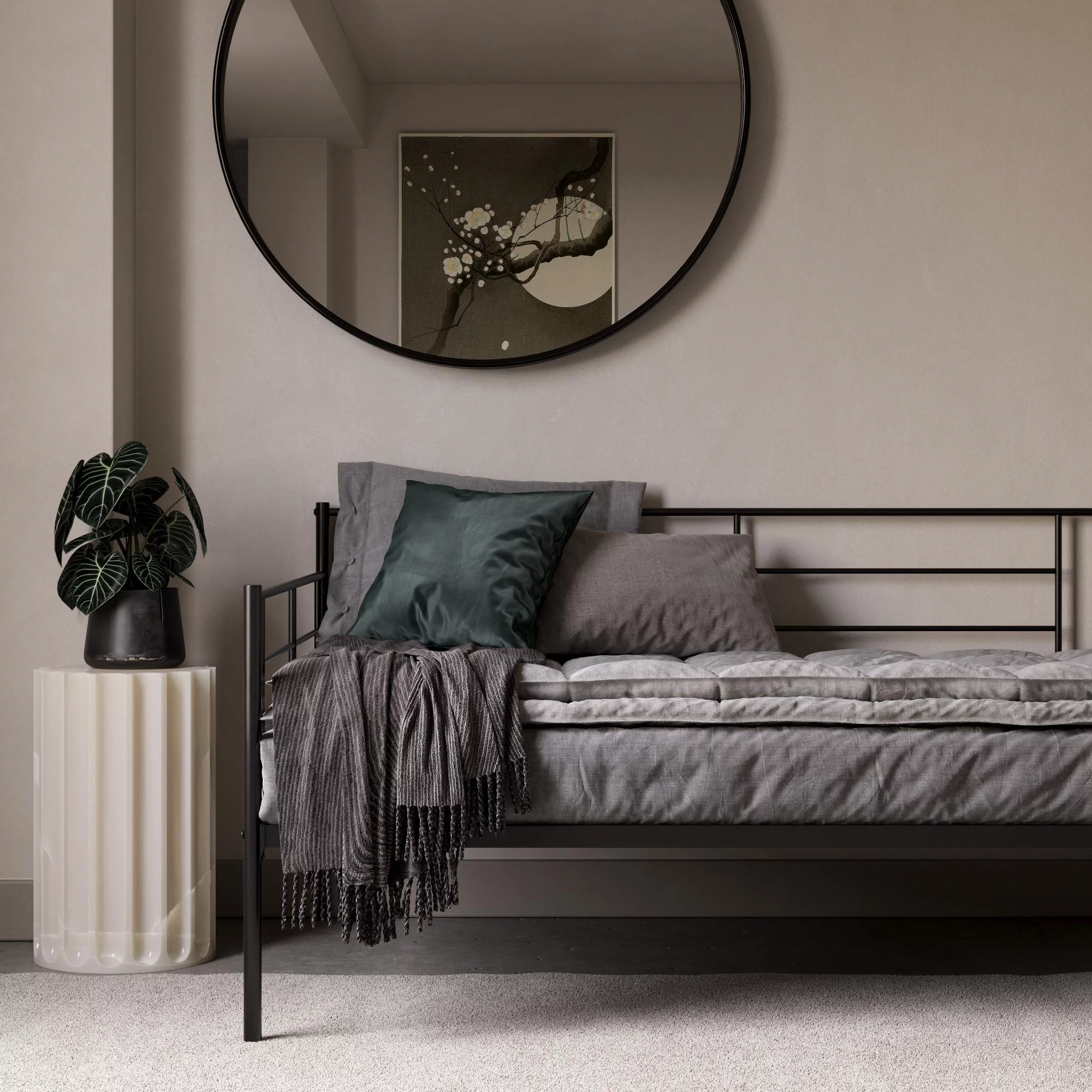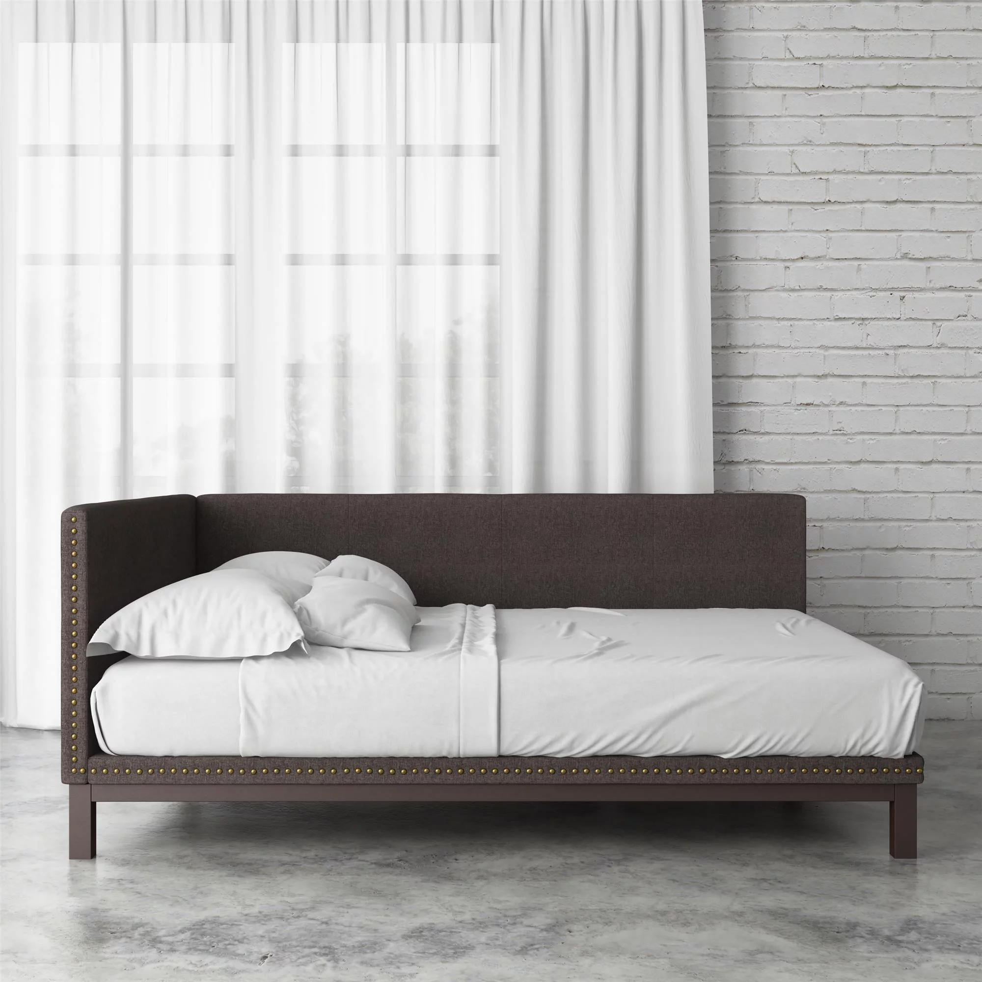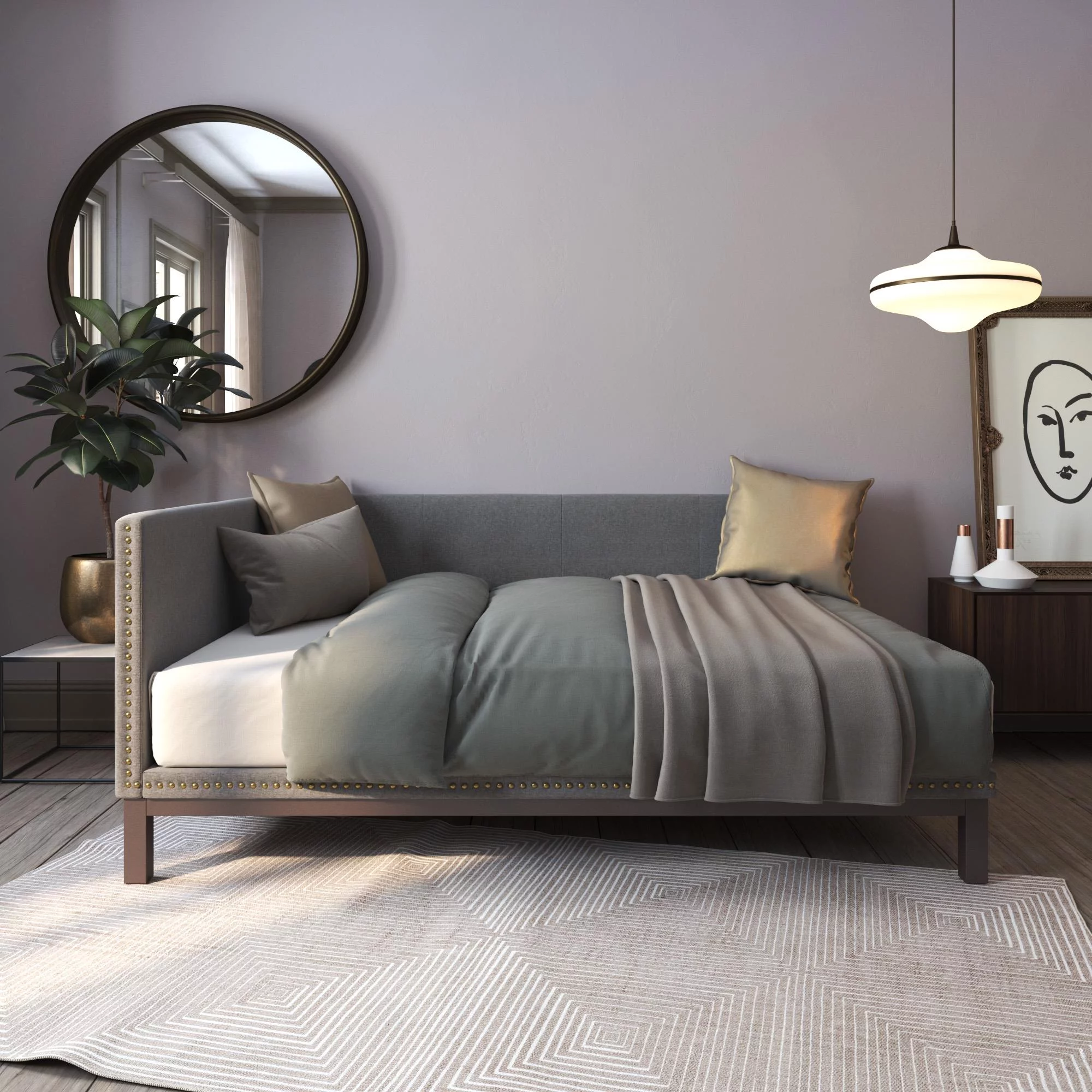 Bellamy Studios Mid Century Upholstered Modern Daybed, Queen Size, Gray Linen