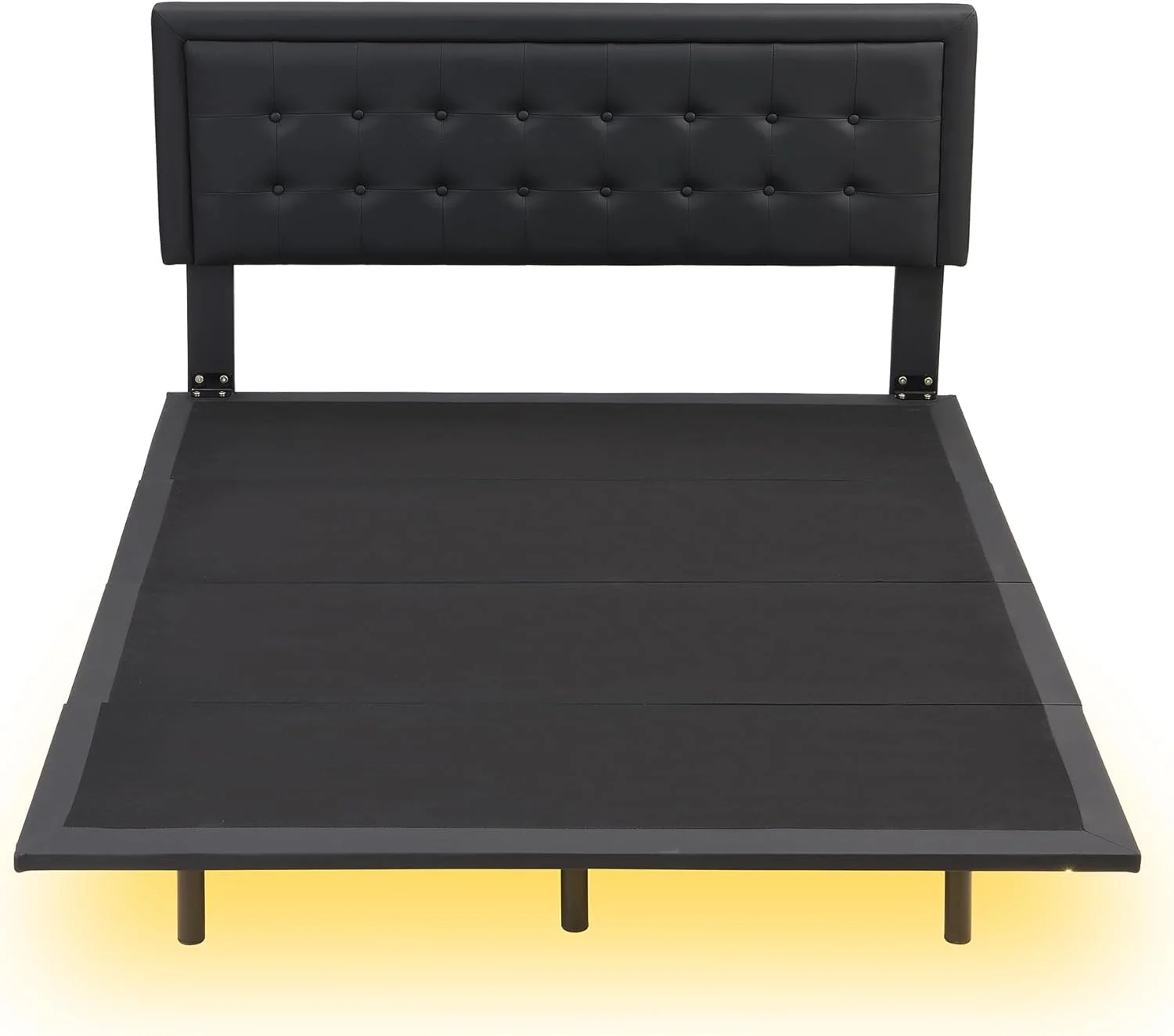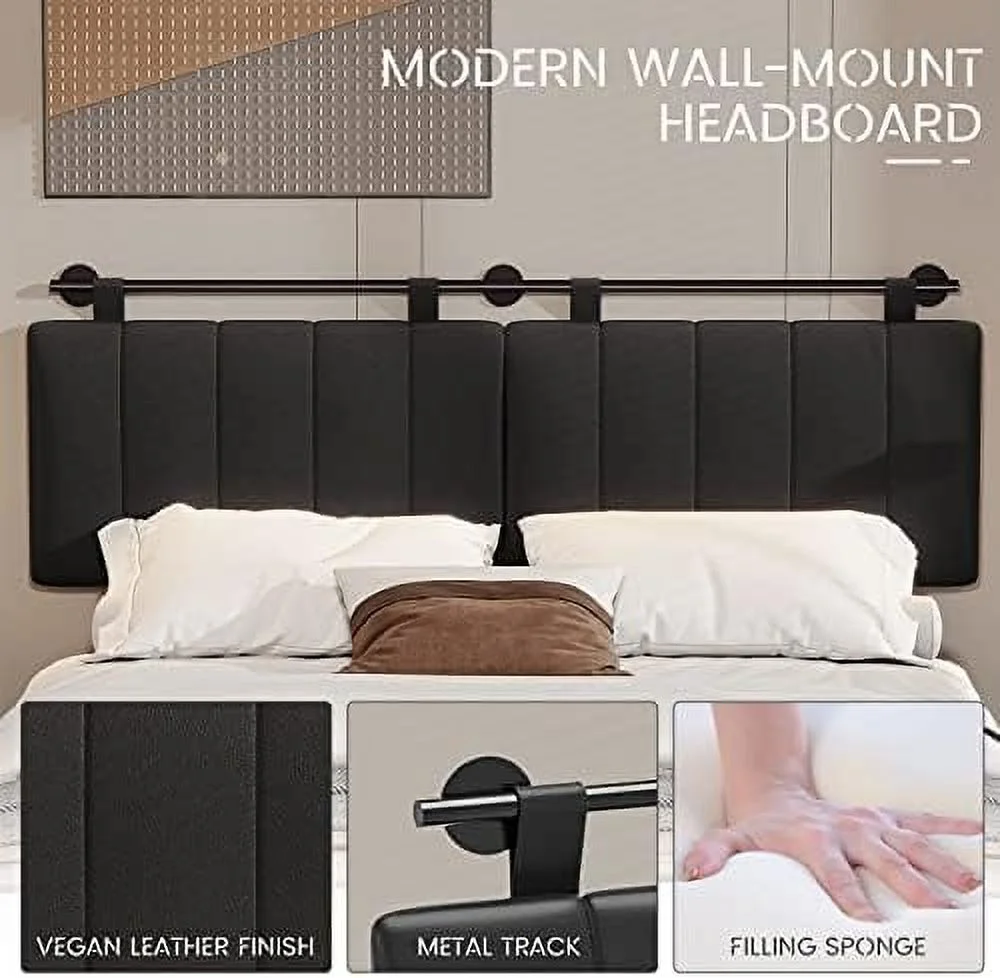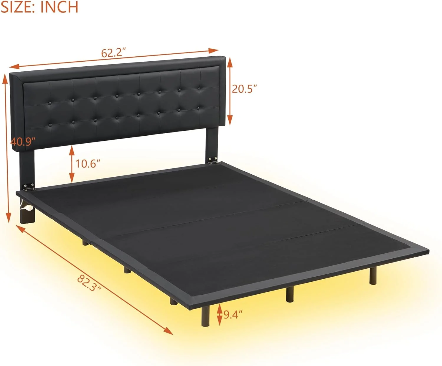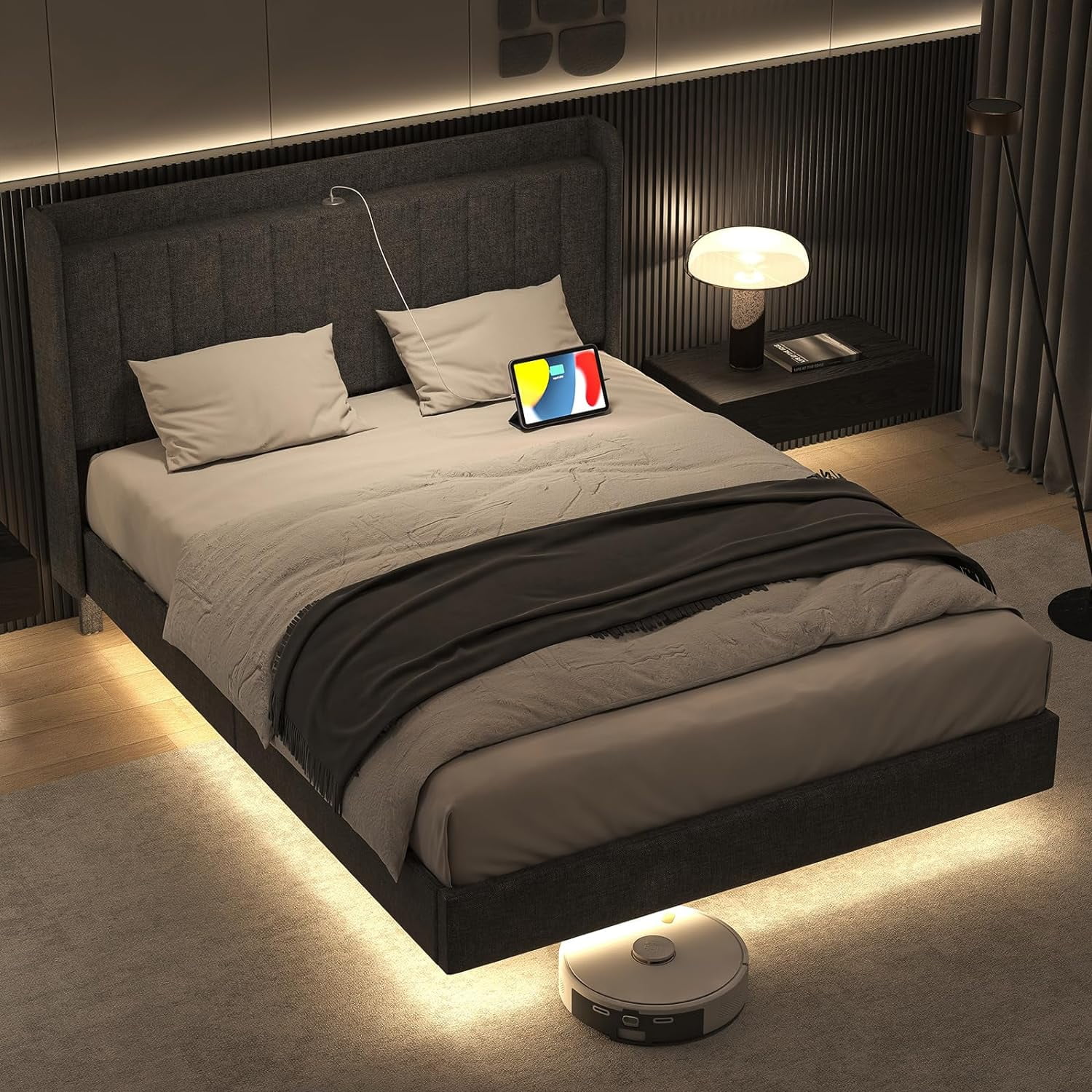 Queen Size Floating Bed Frame with LED Lights and USB Charging,Cosymart Modern Upholstered Platform LED Bed Frame,Black