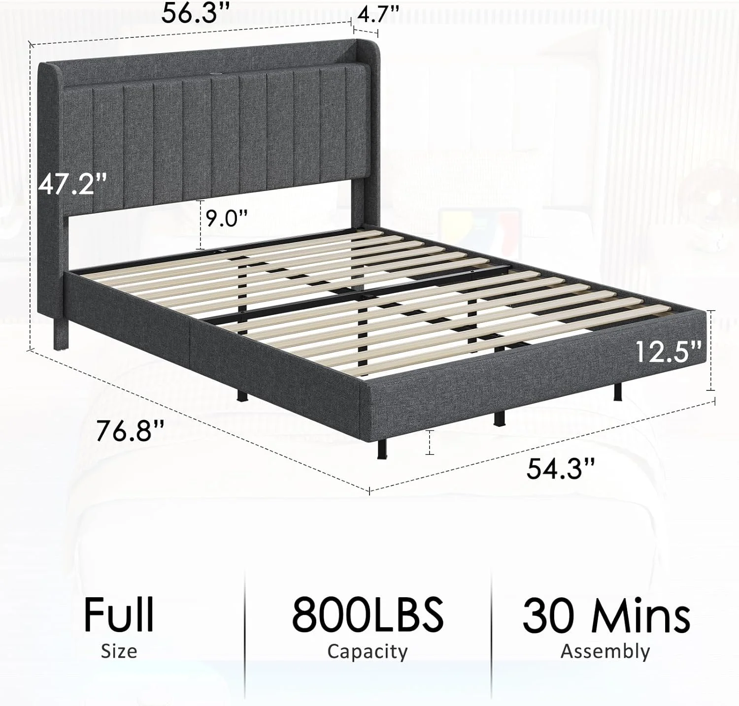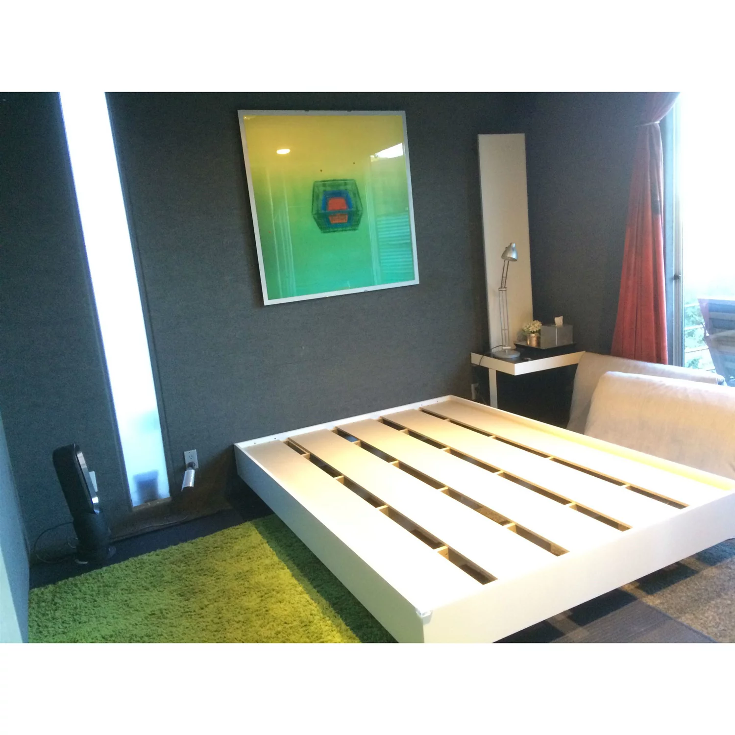 Modern Design Queen Floating Platform Bed Frame for White Washed Color