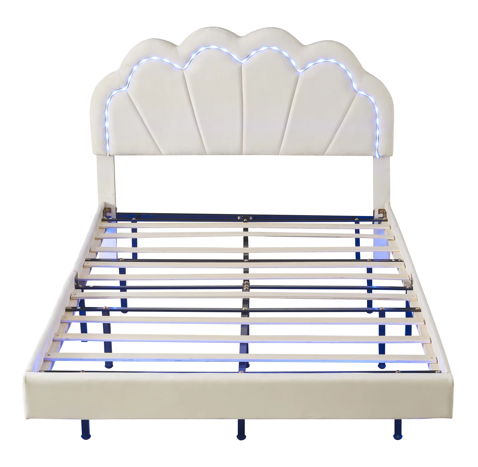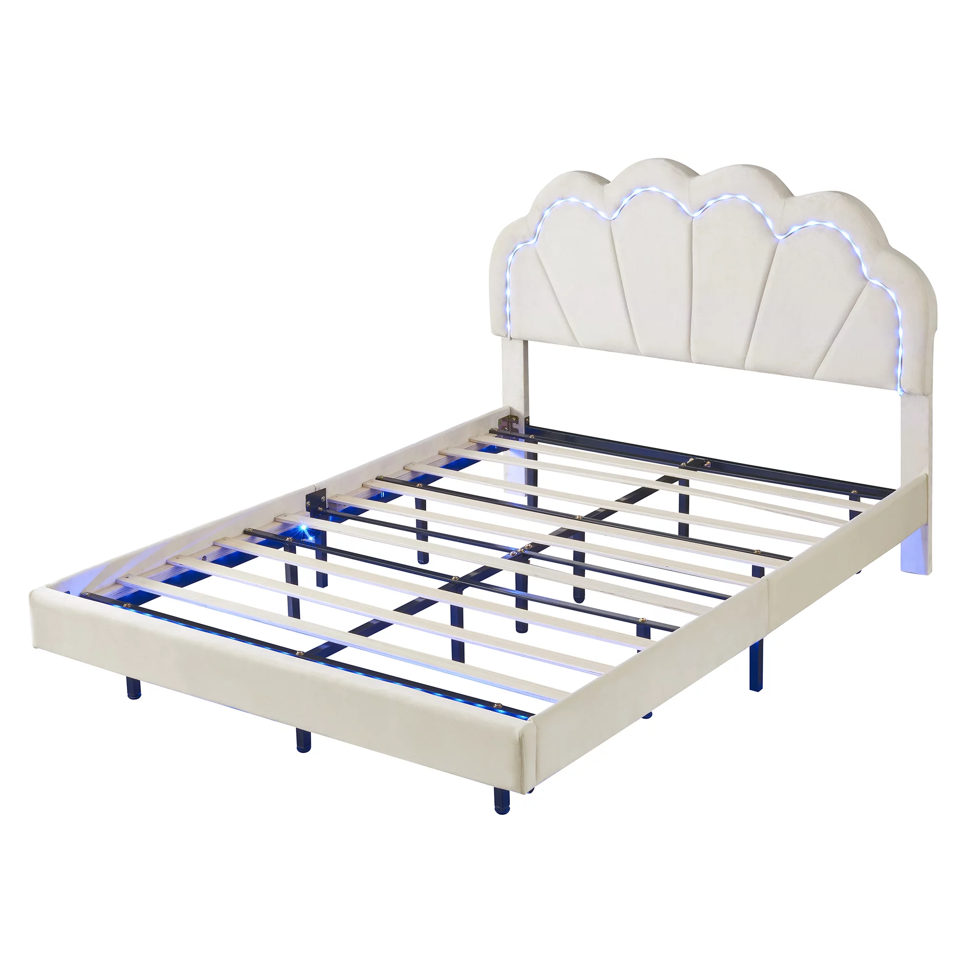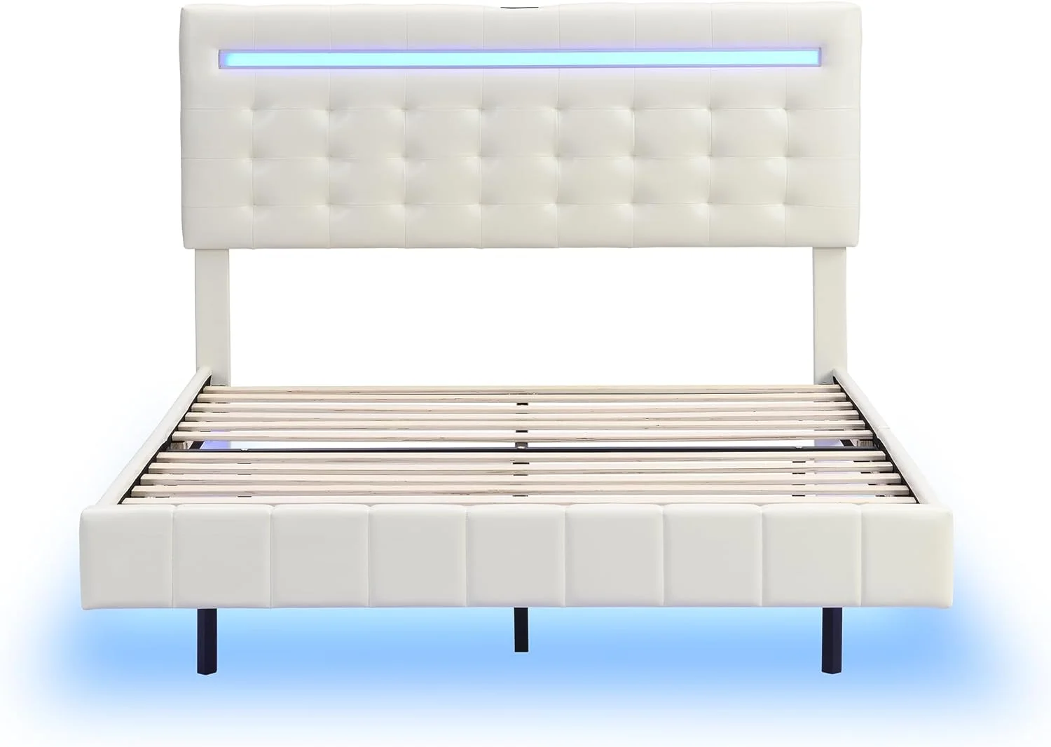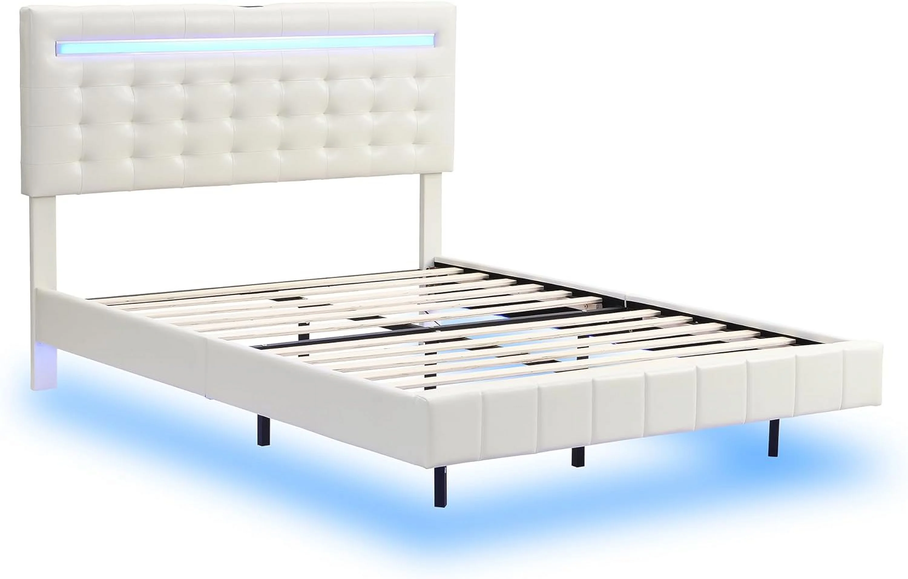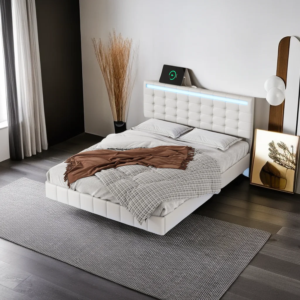 CoSoTower Queen Size Floating Bed Frame with LED Lights and USB Charging, Modern Upholstered Platform LED Bed Frame, White