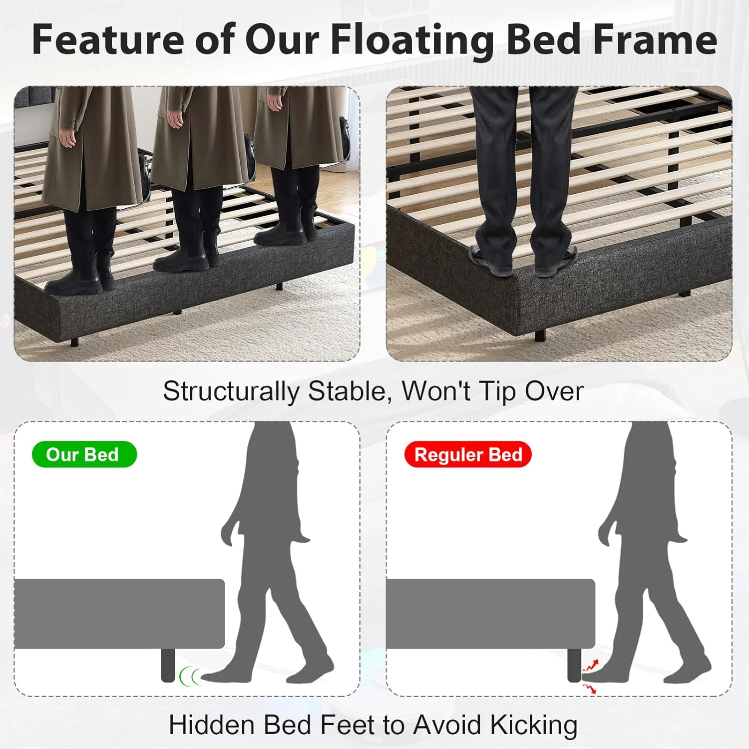 CoSoTower Modern Design Queen Floating Platform Bed Frame for White Washed Color