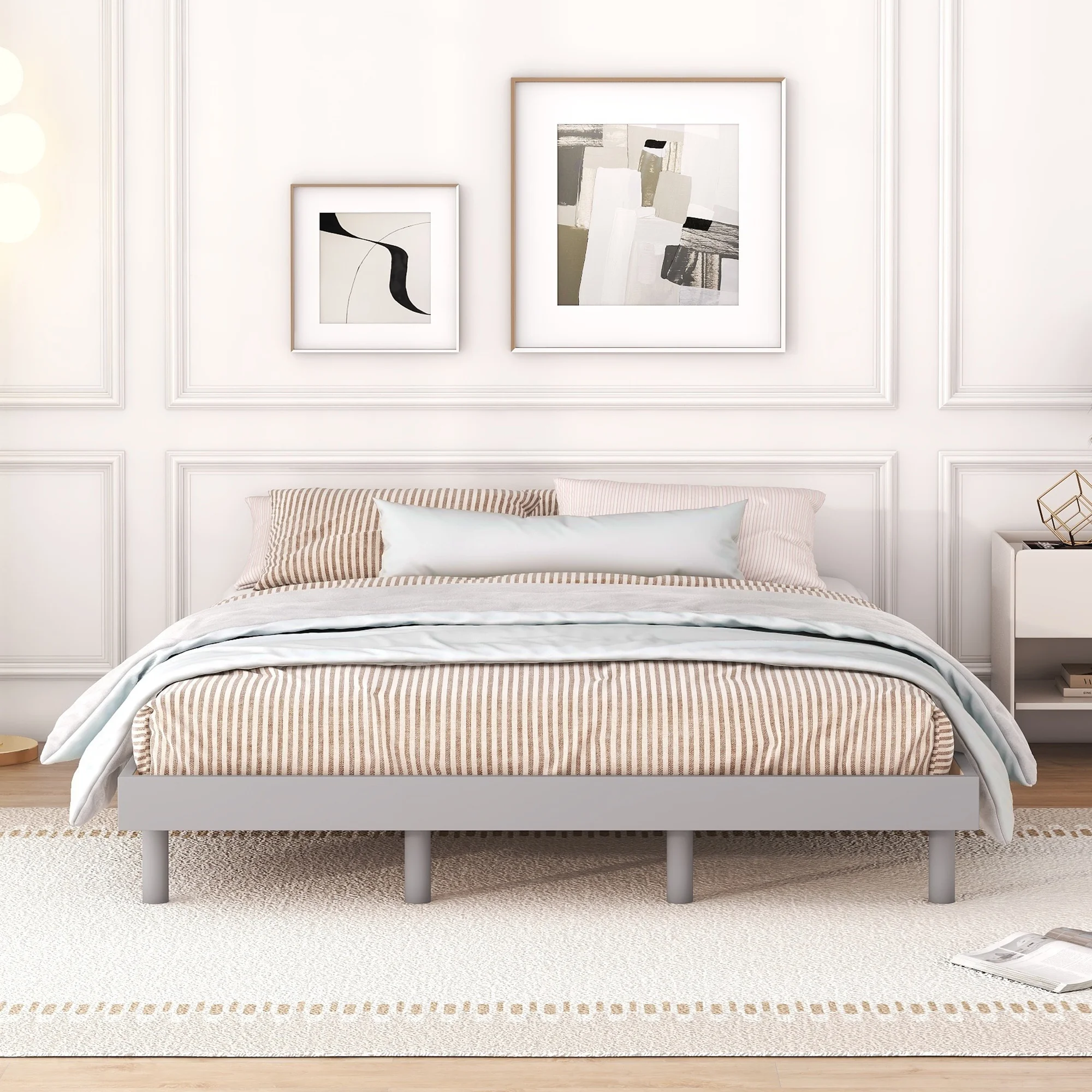 CoSoTower Modern Design Queen Floating Platform Bed Frame for Grey Color