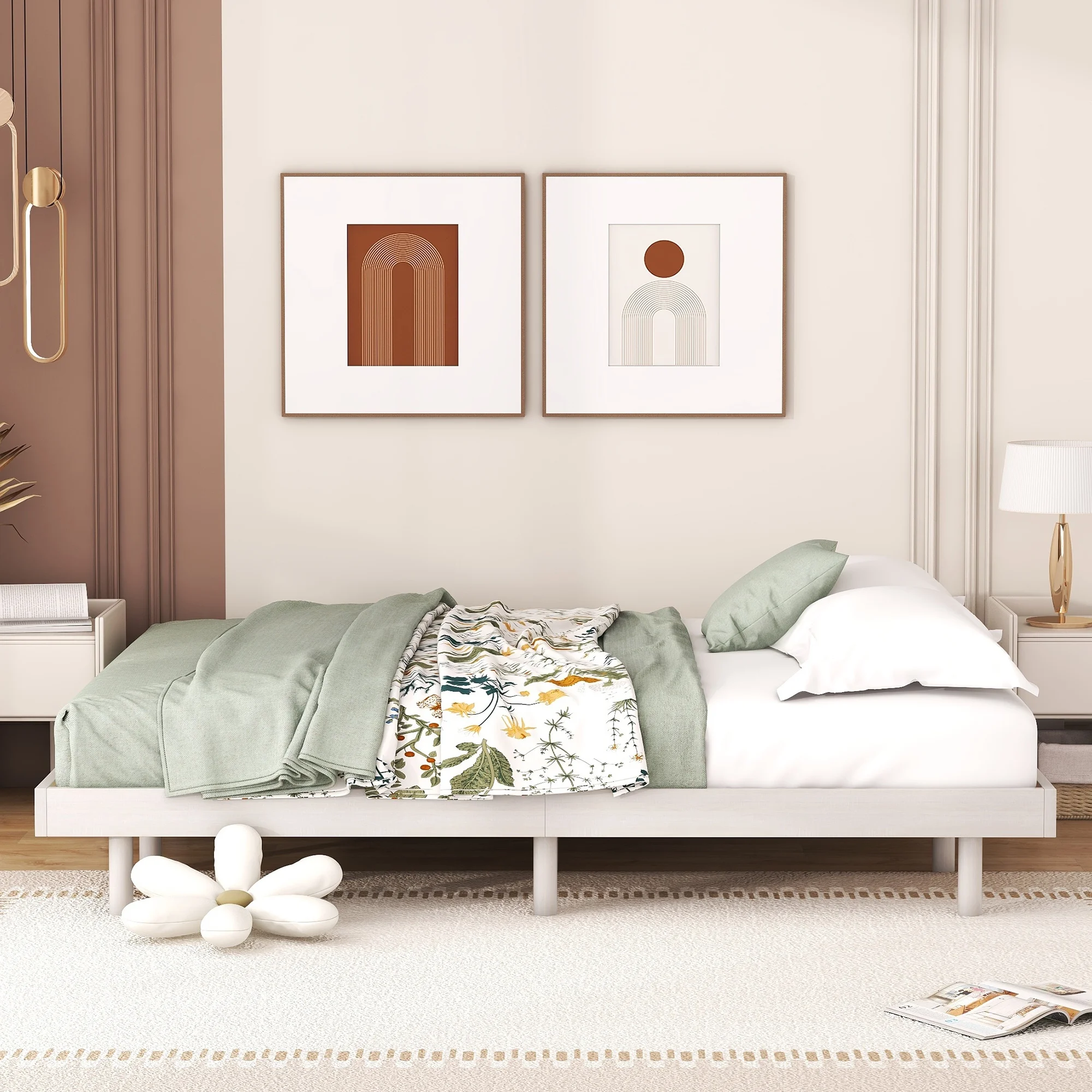 Modern Design Twin Size Floating Platform Bed Frame for White Washed Color