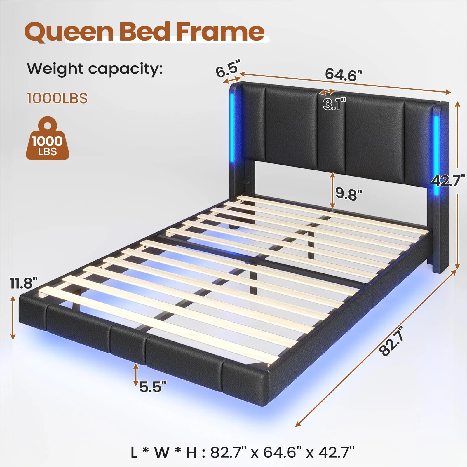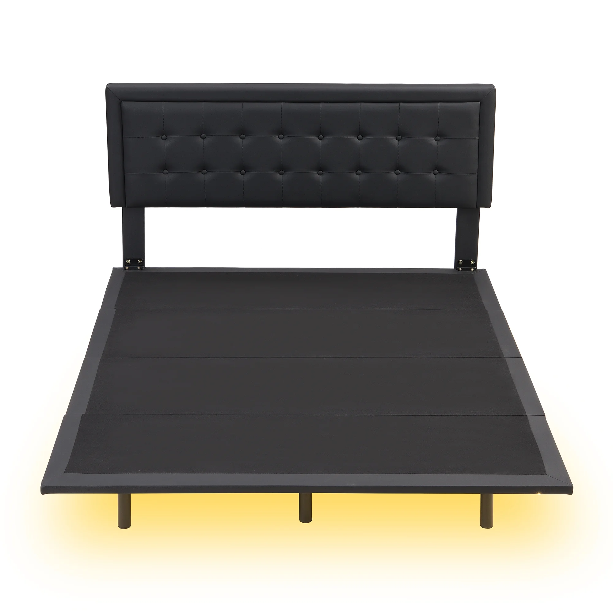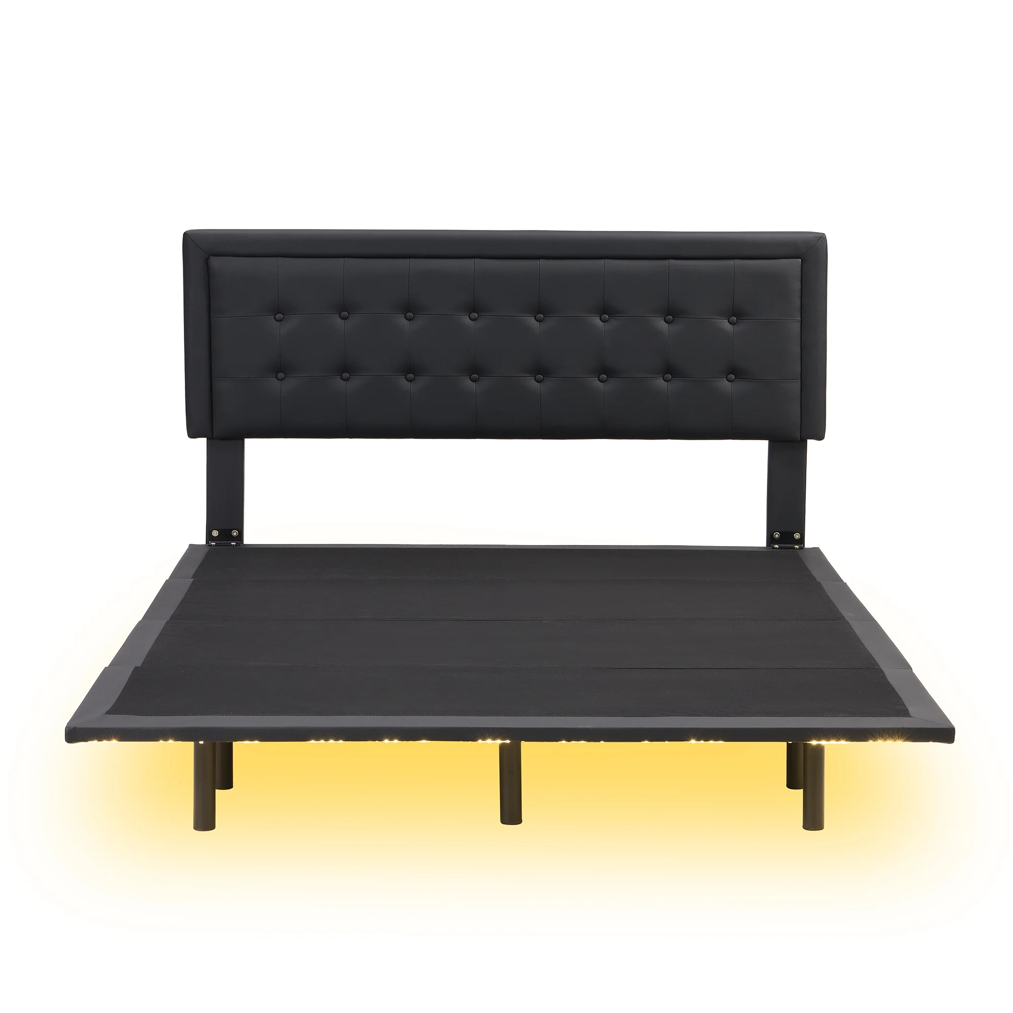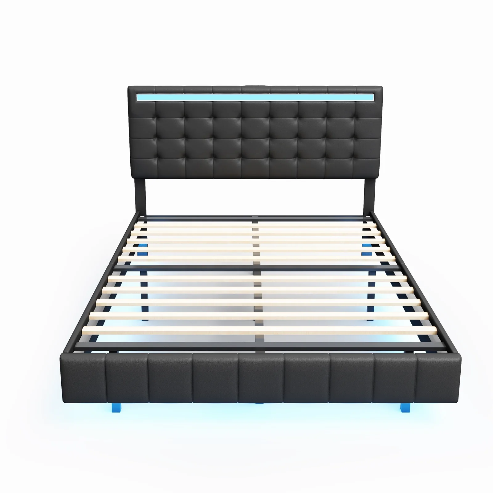 Queen Size Floating Bed Frame with LED Lights and USB Charging,Modern Upholstered Platform LED Bed Frame,Black Black + PU