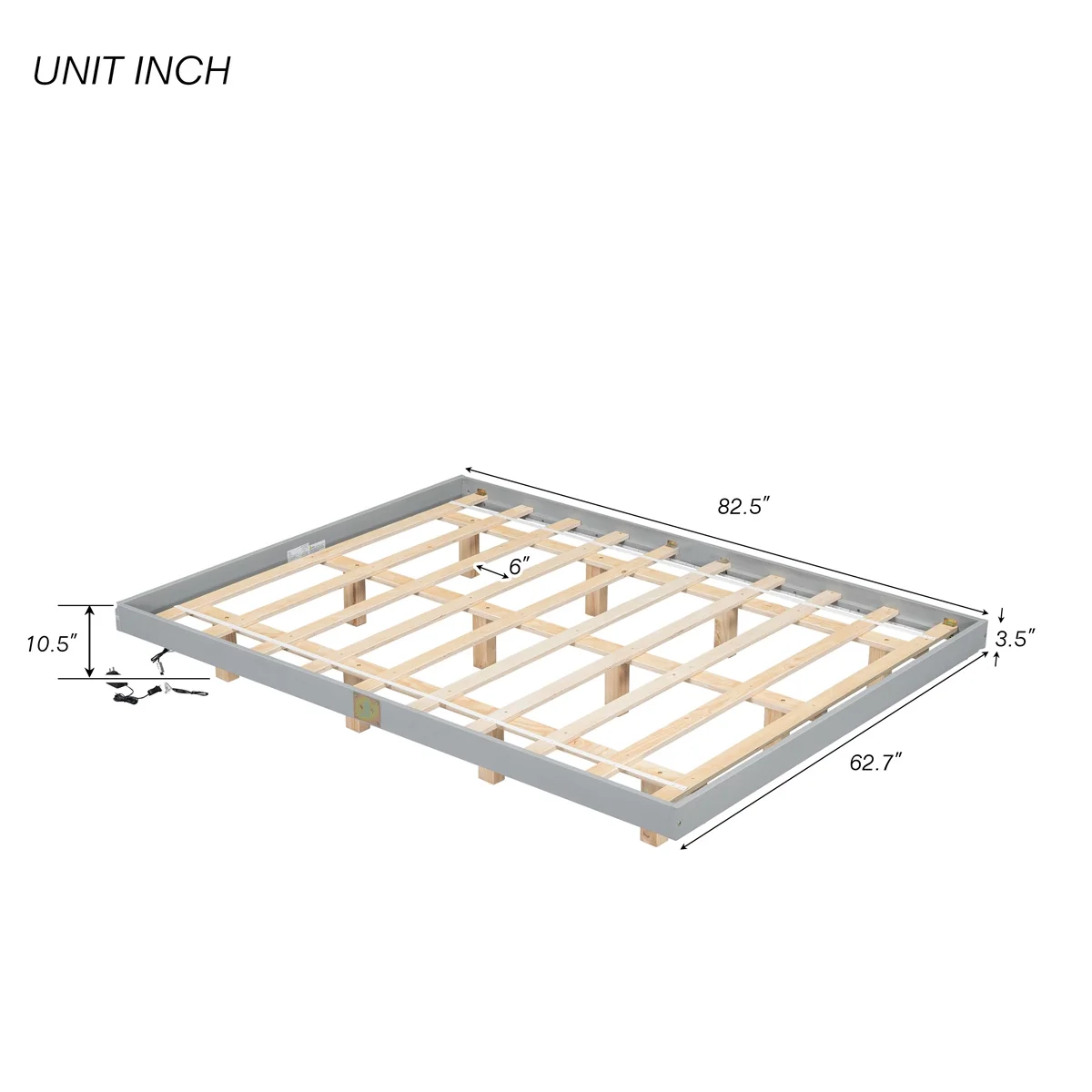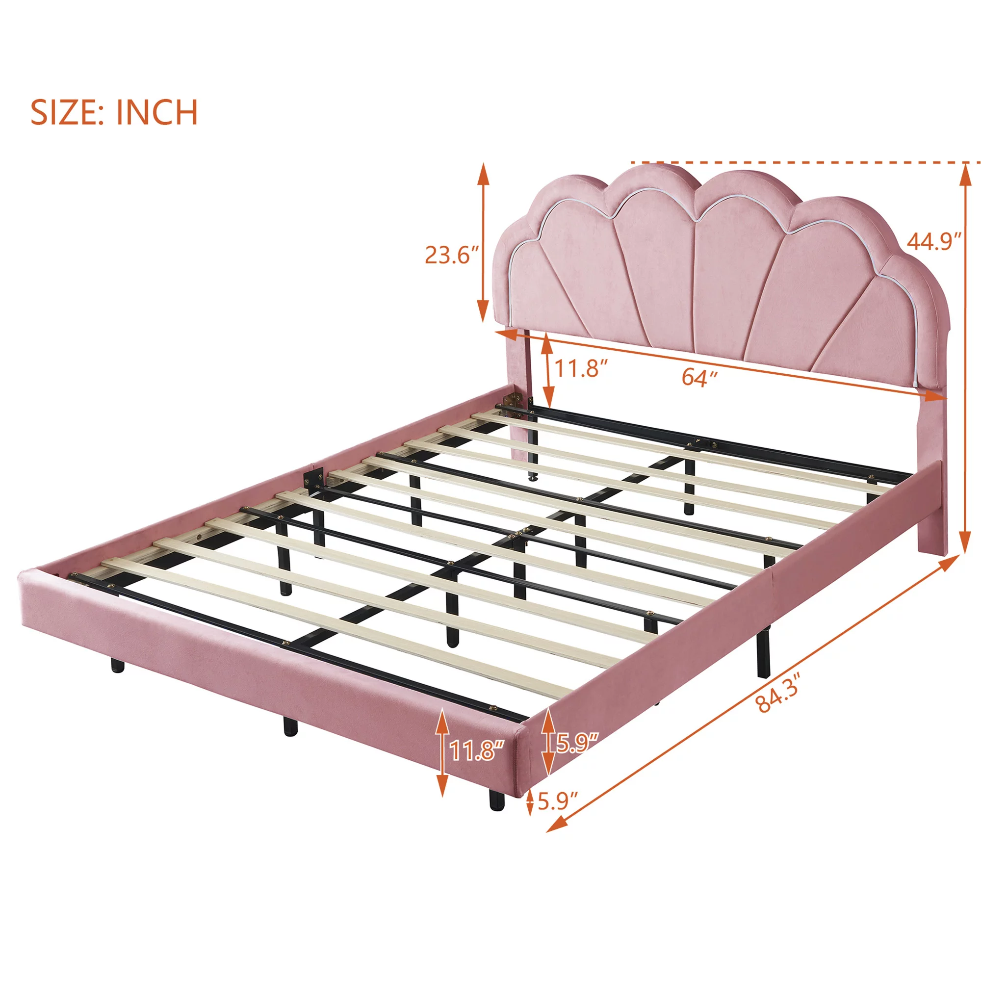 Queen Size Floating Bed Frame, PU Upholstered Platform with LED Lights & USB Port