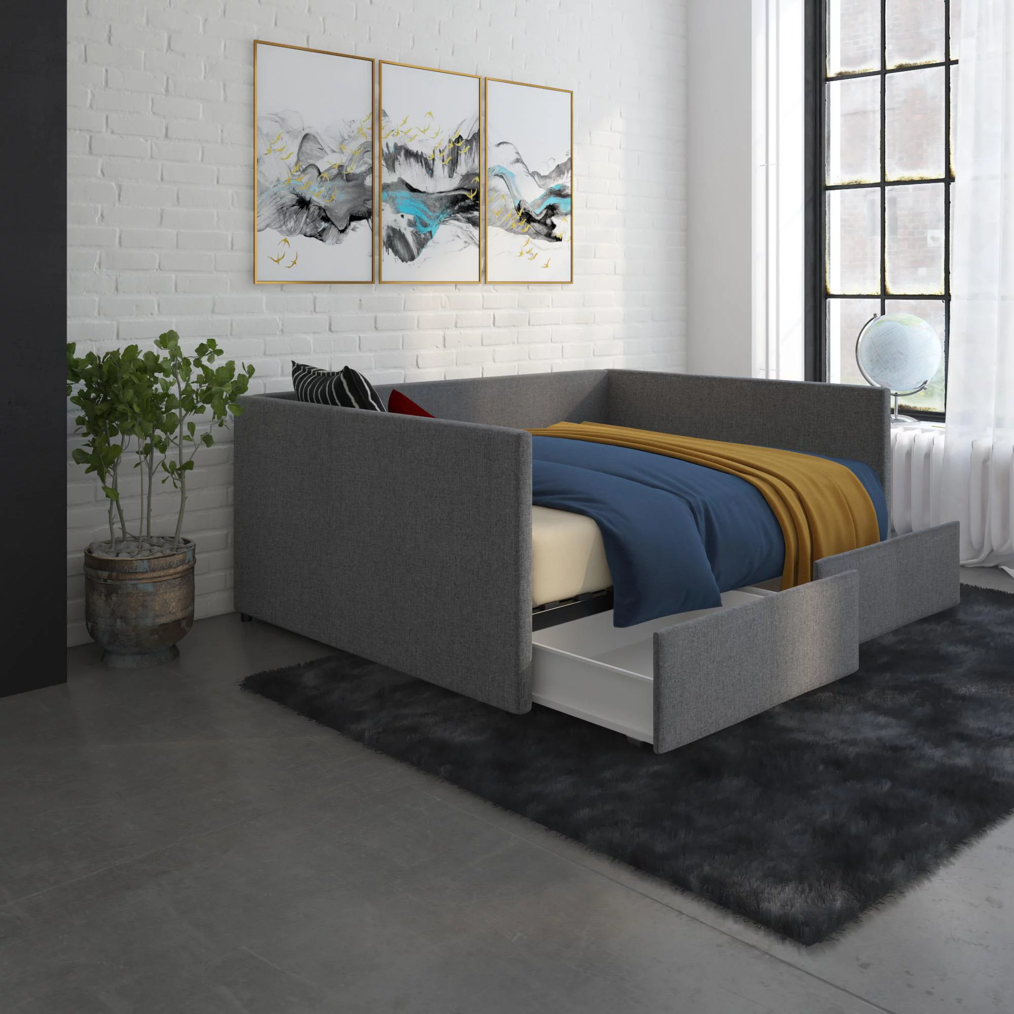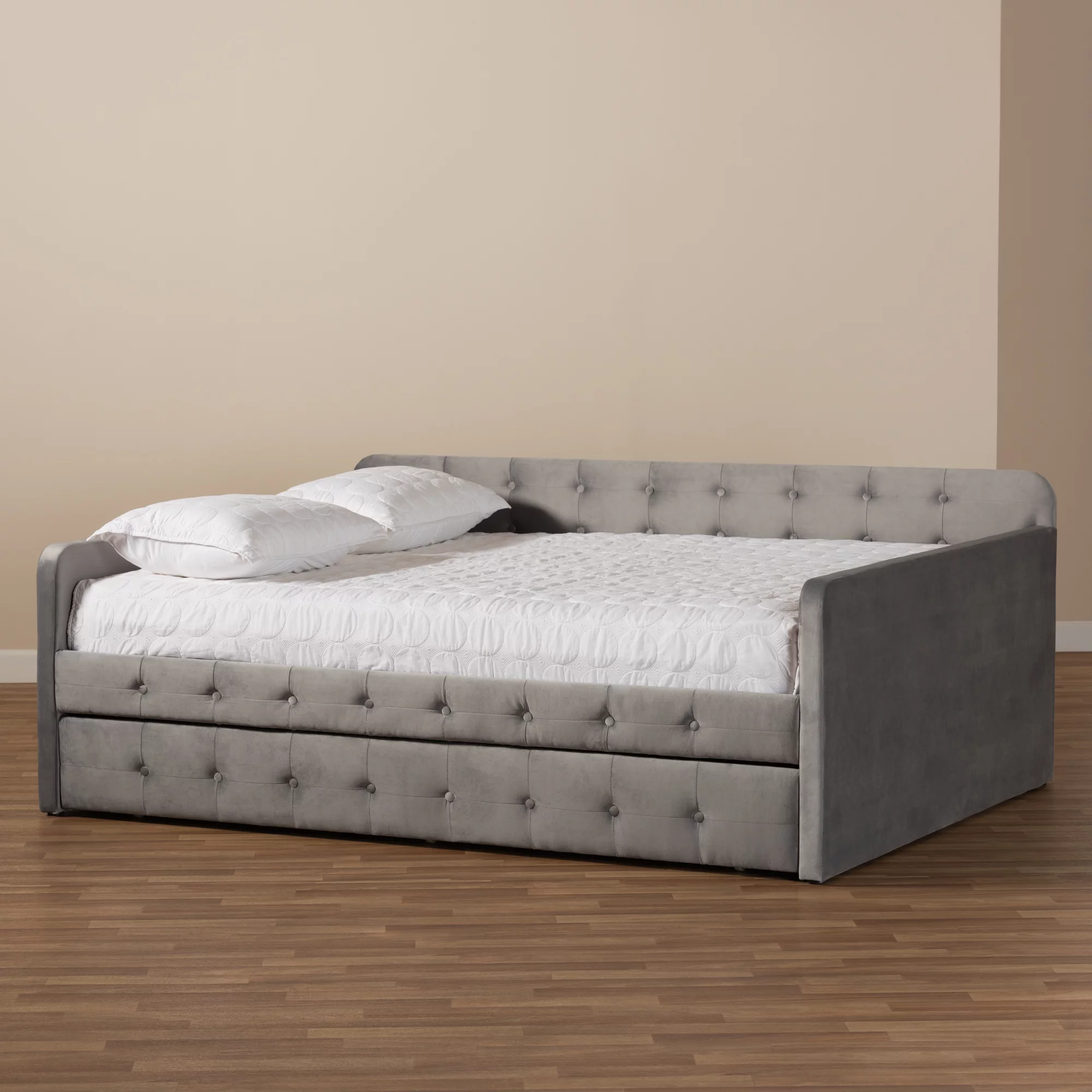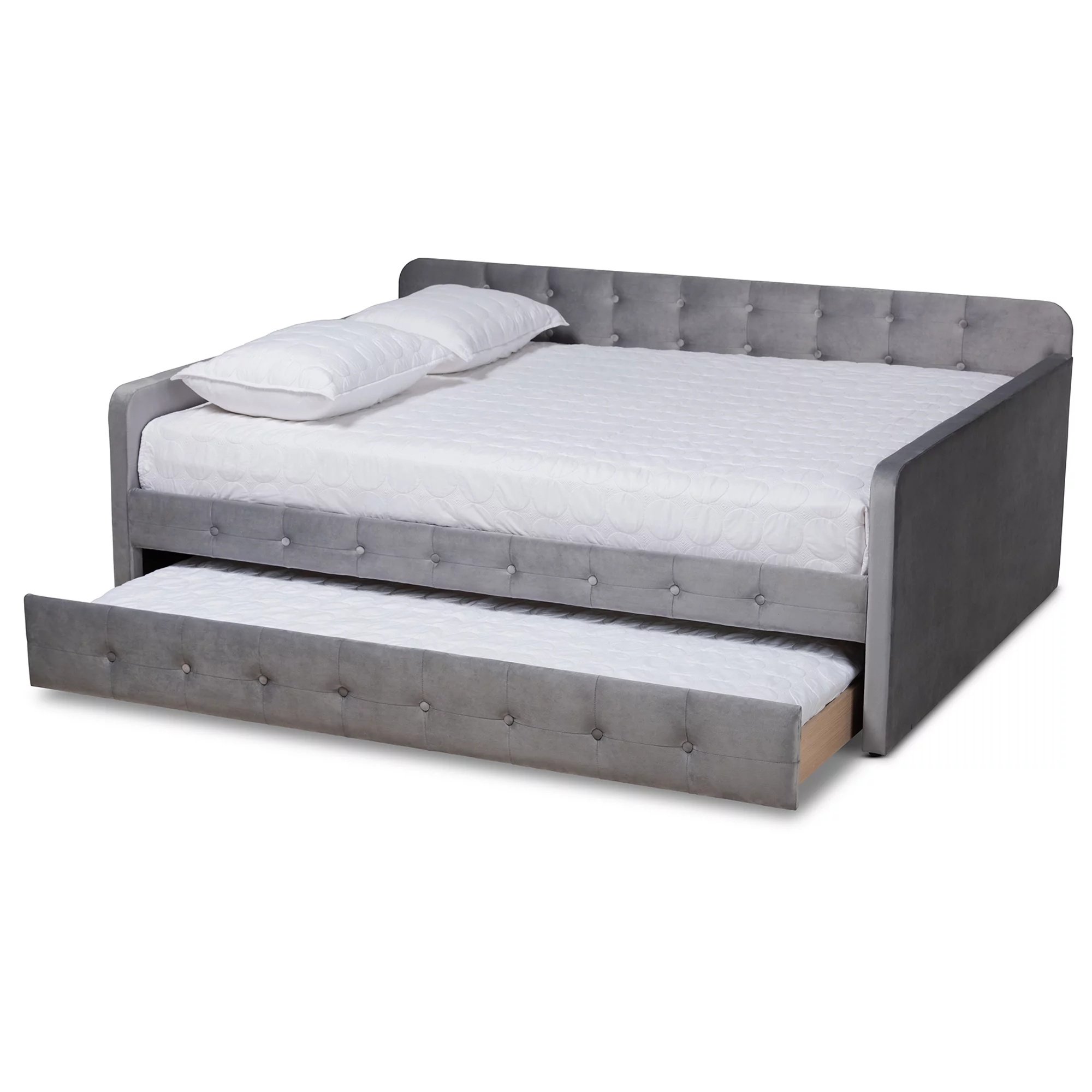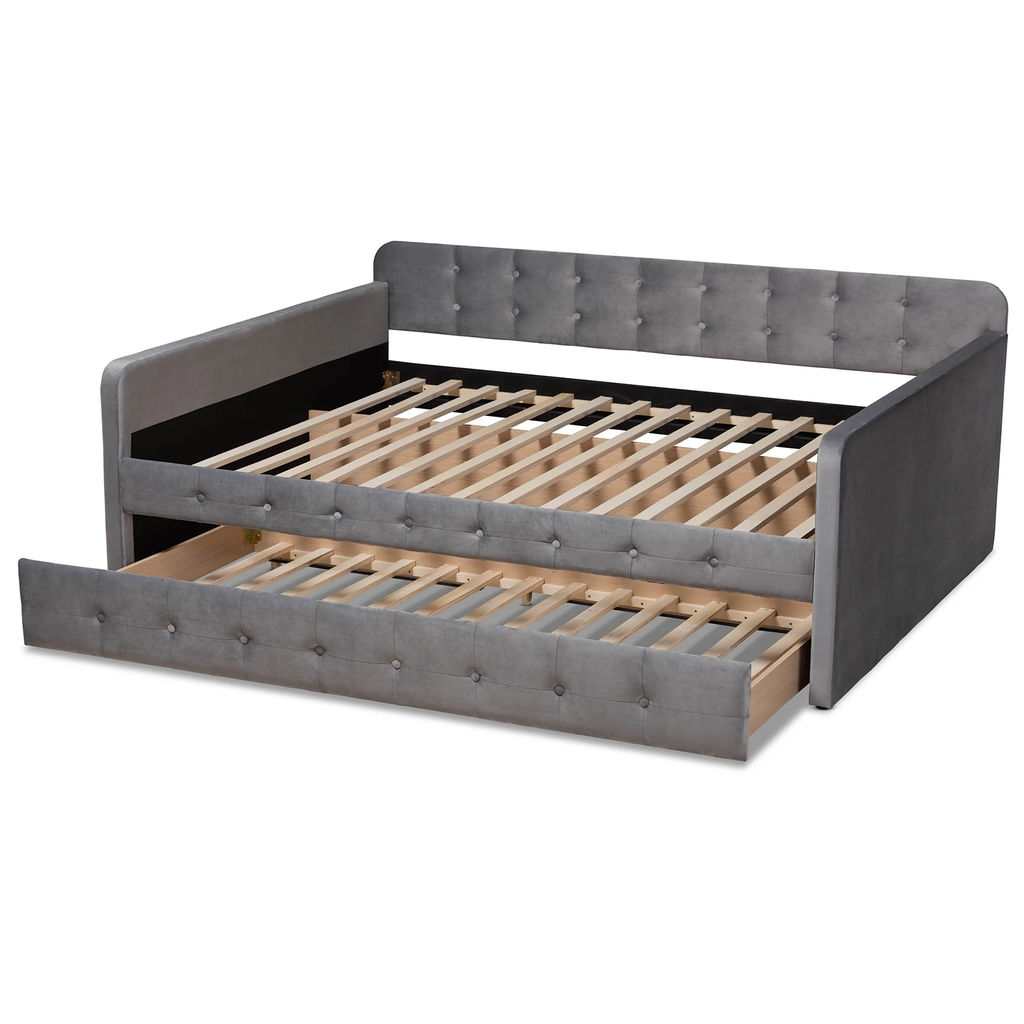 Baxton Studio Raphael Contemporary Upholstered with Trundle Daybed, Full, Navy Blue