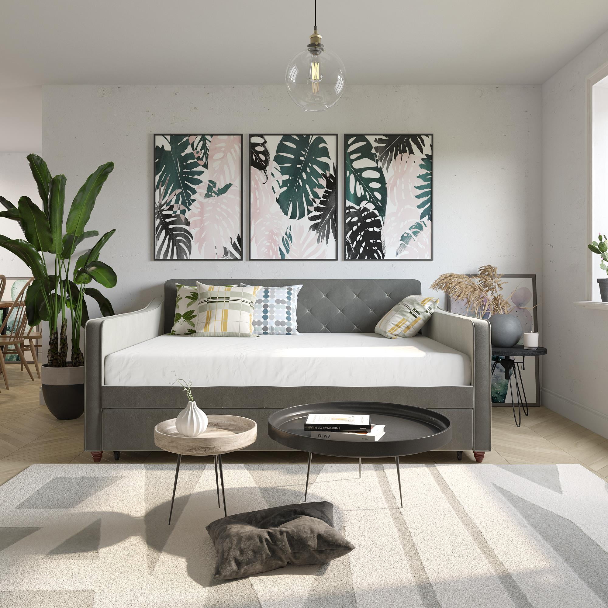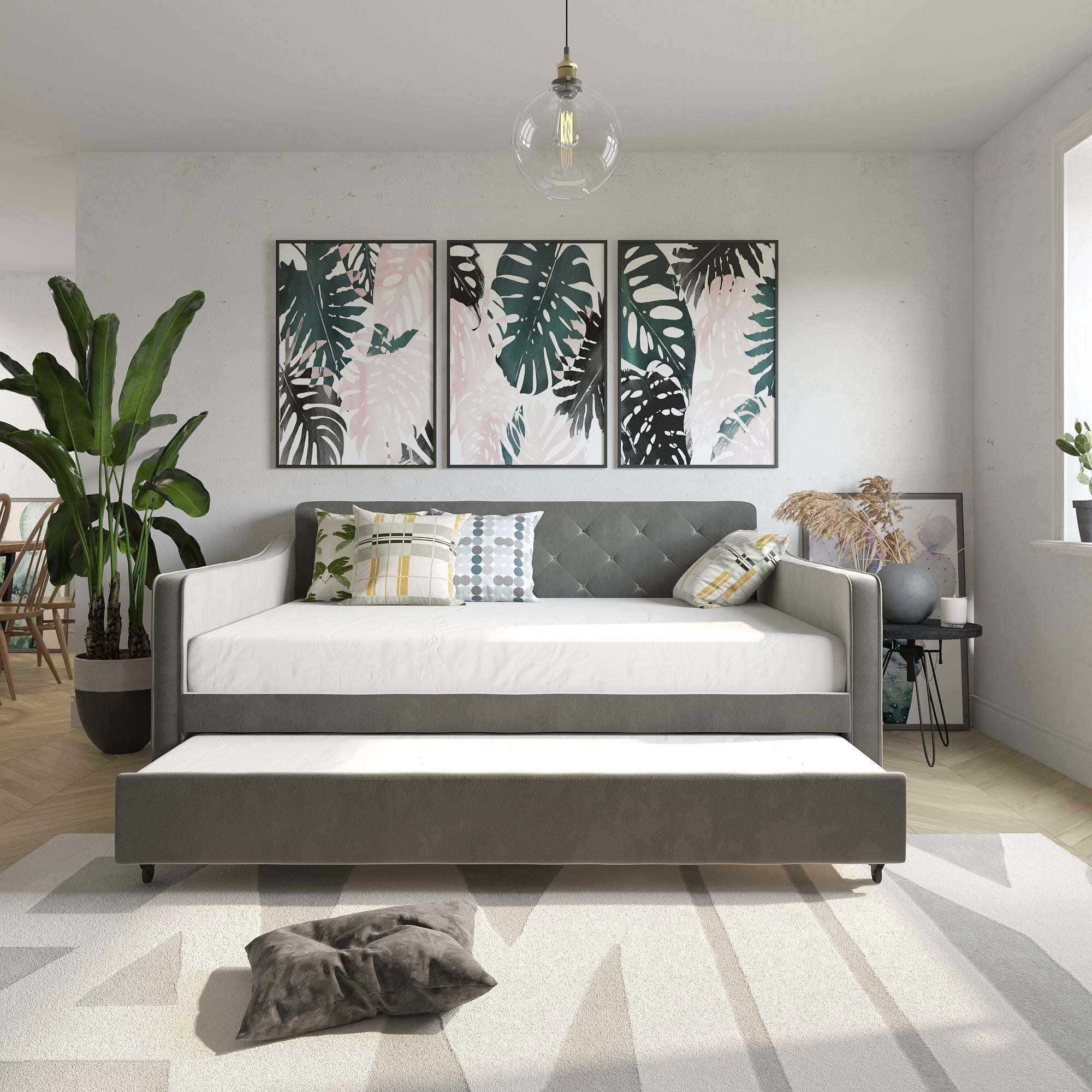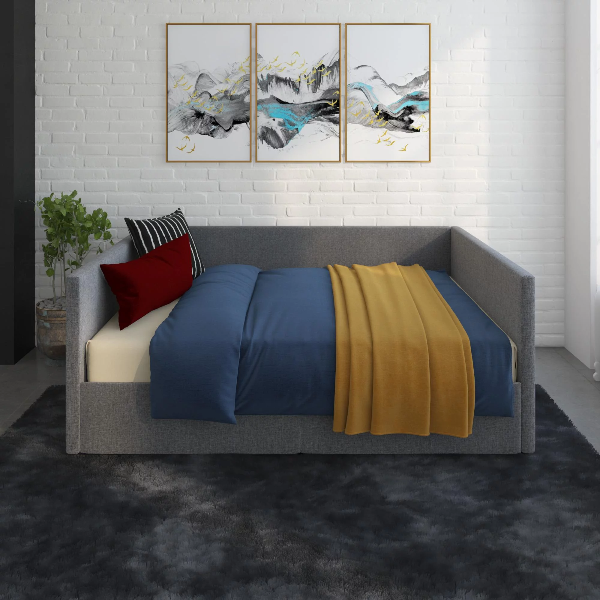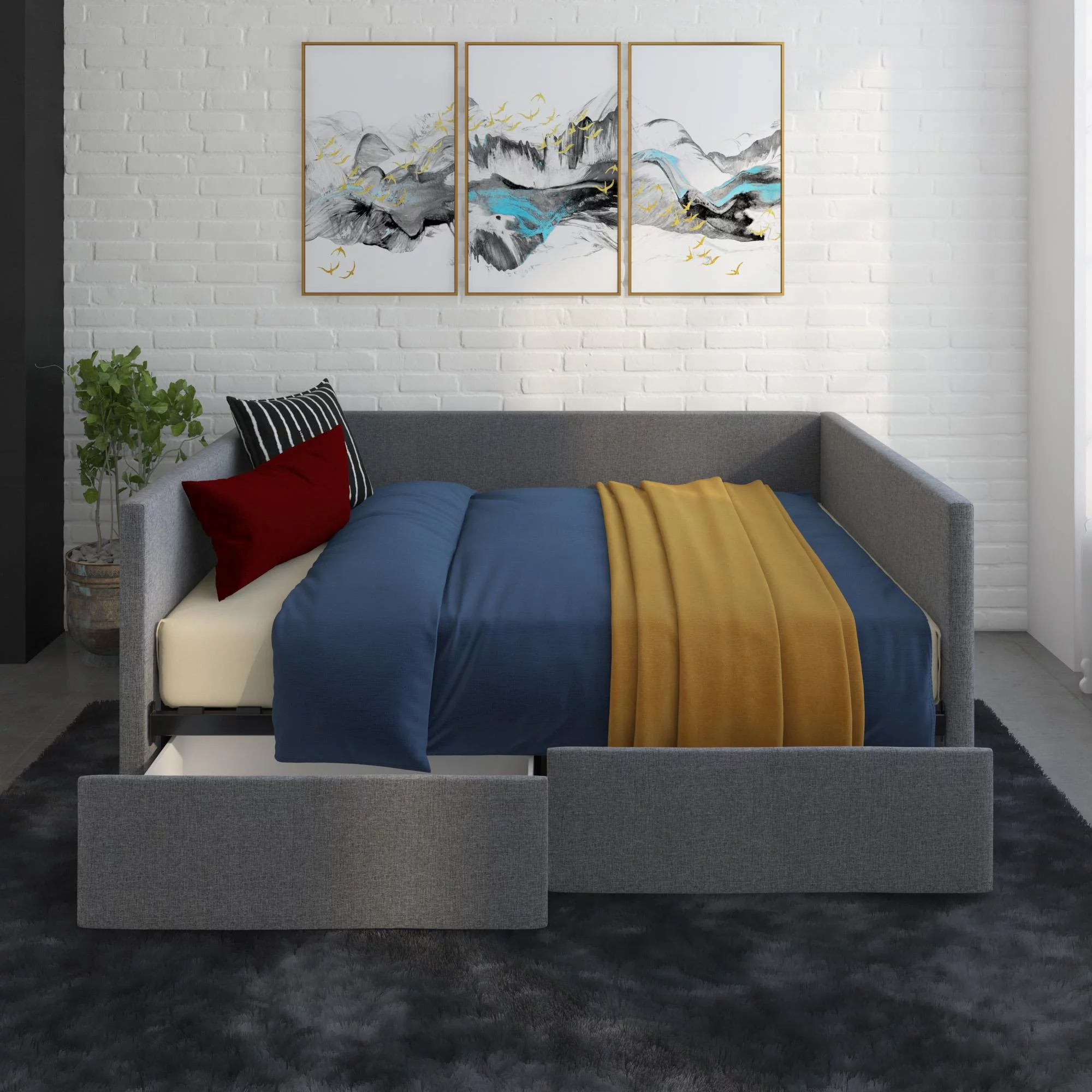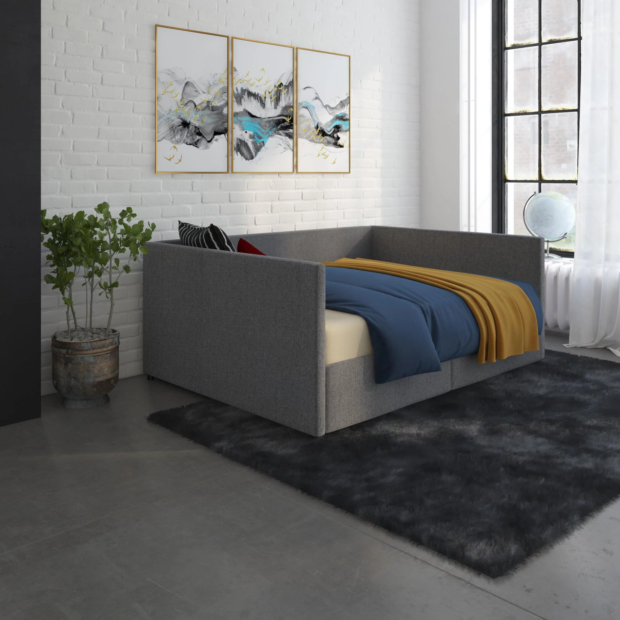 Baxton Studio Raphael Contemporary Upholstered with Trundle Daybed, Full, Navy Blue