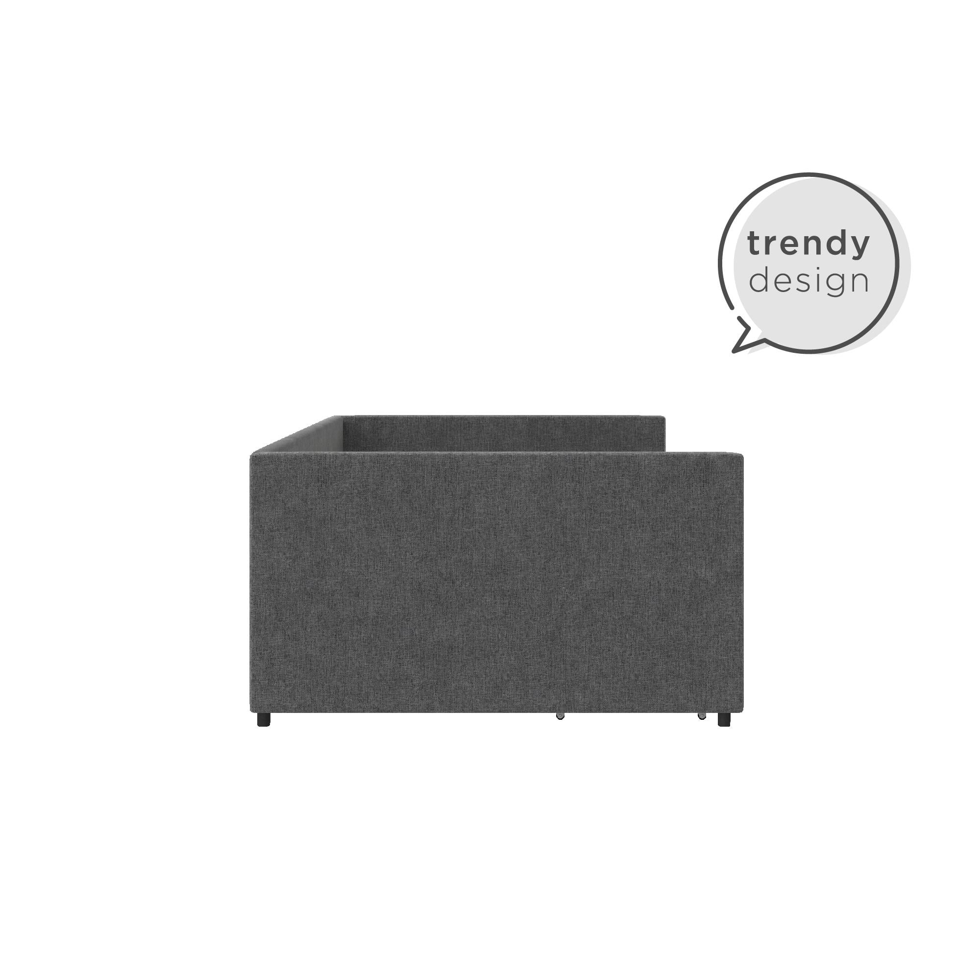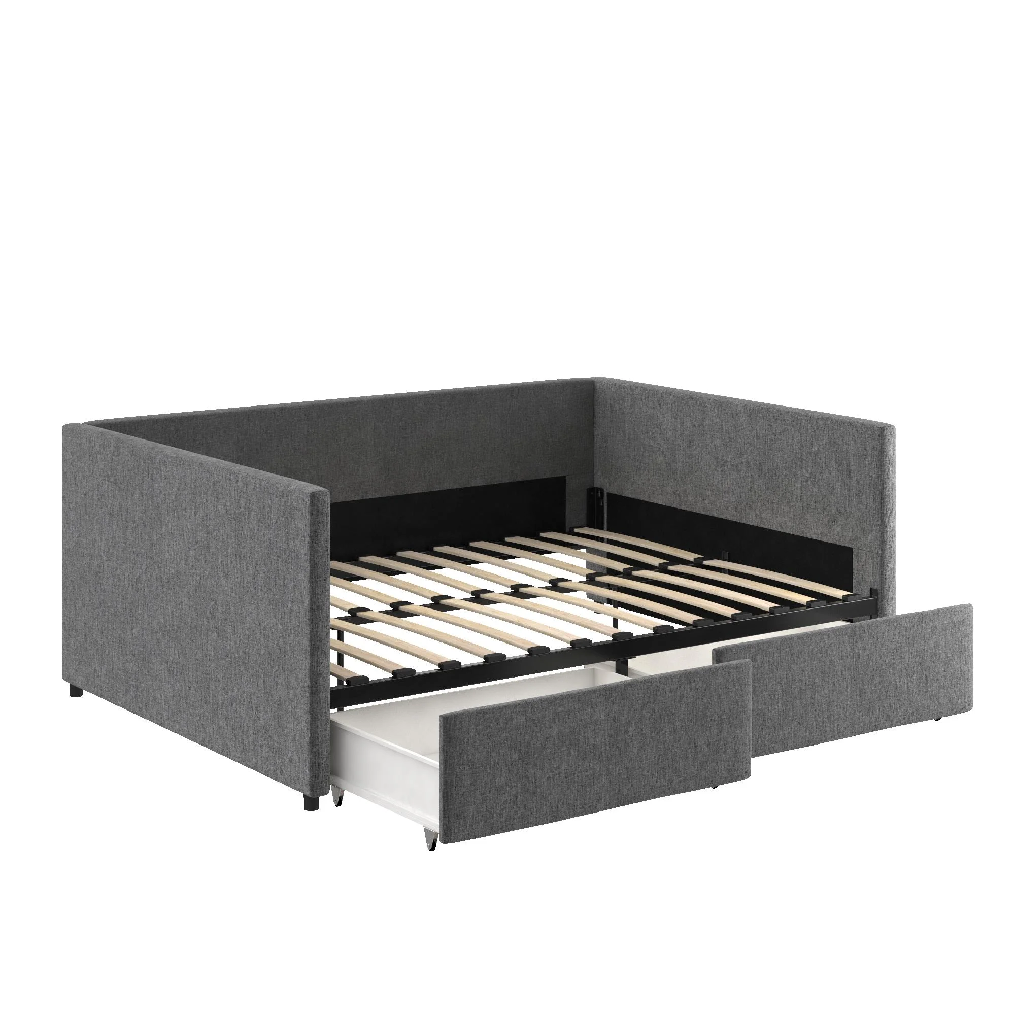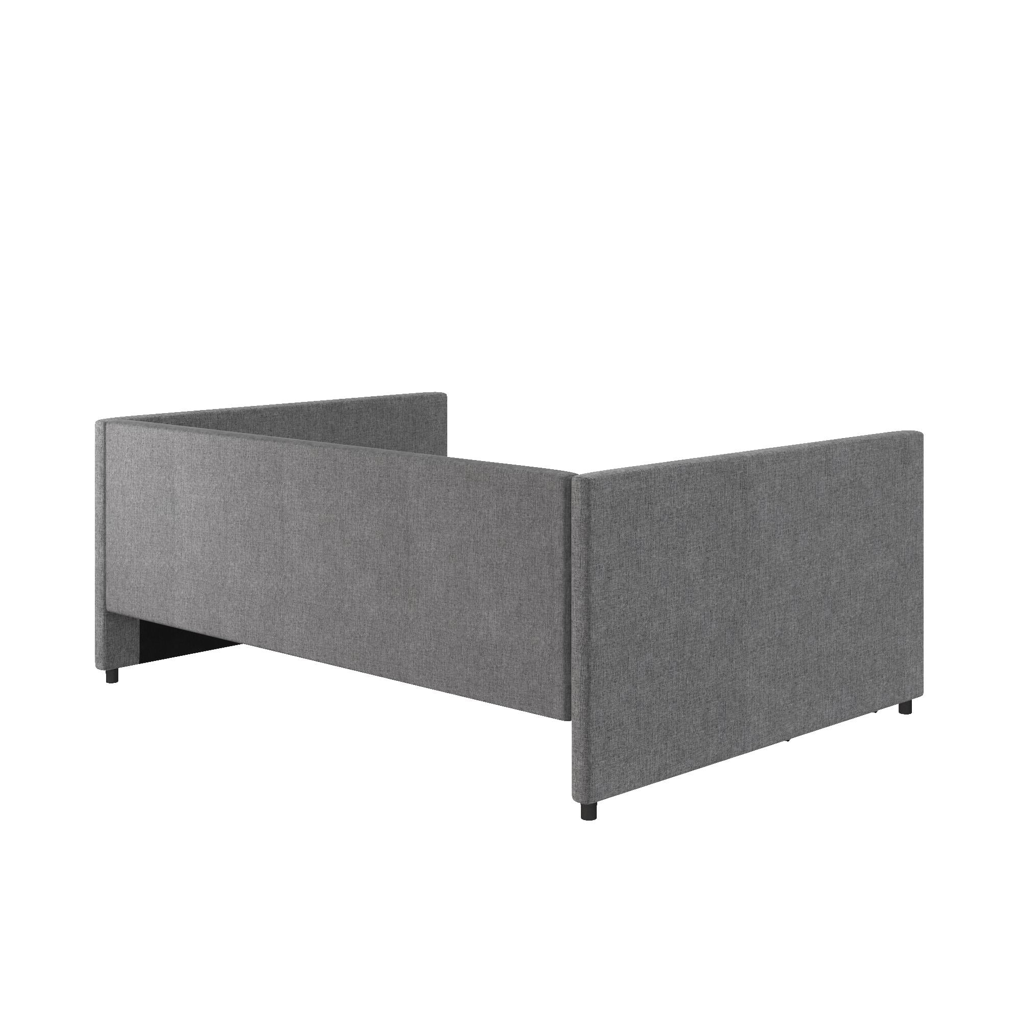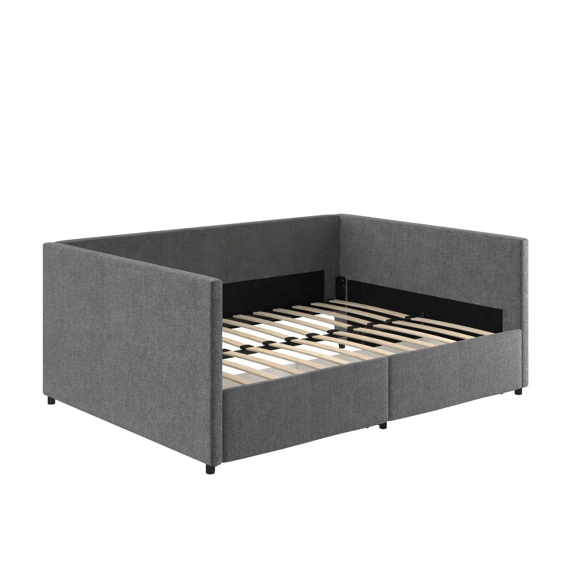 EUROCO Full Size Upholstery DayBed with 2 Drawers, Solid Wood Plaform Bed for Kids Teens Adults, Gray