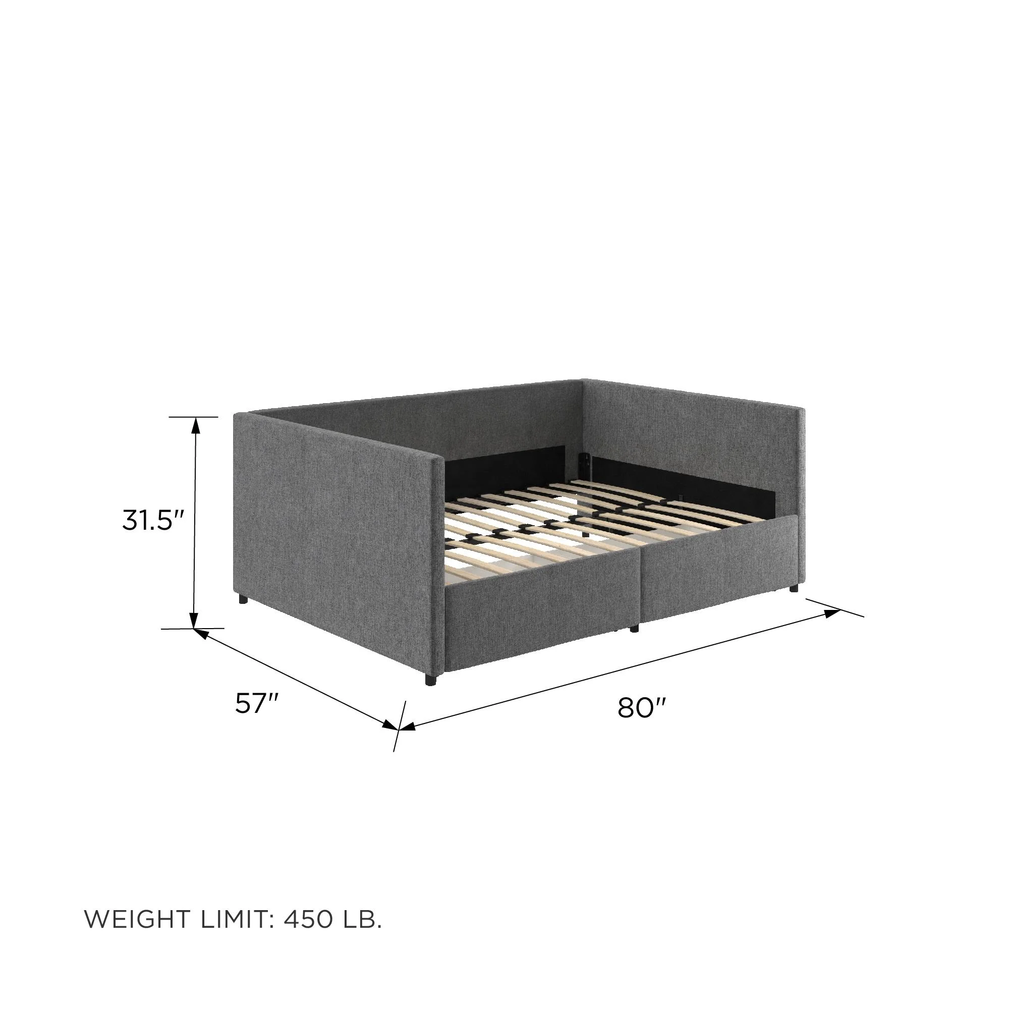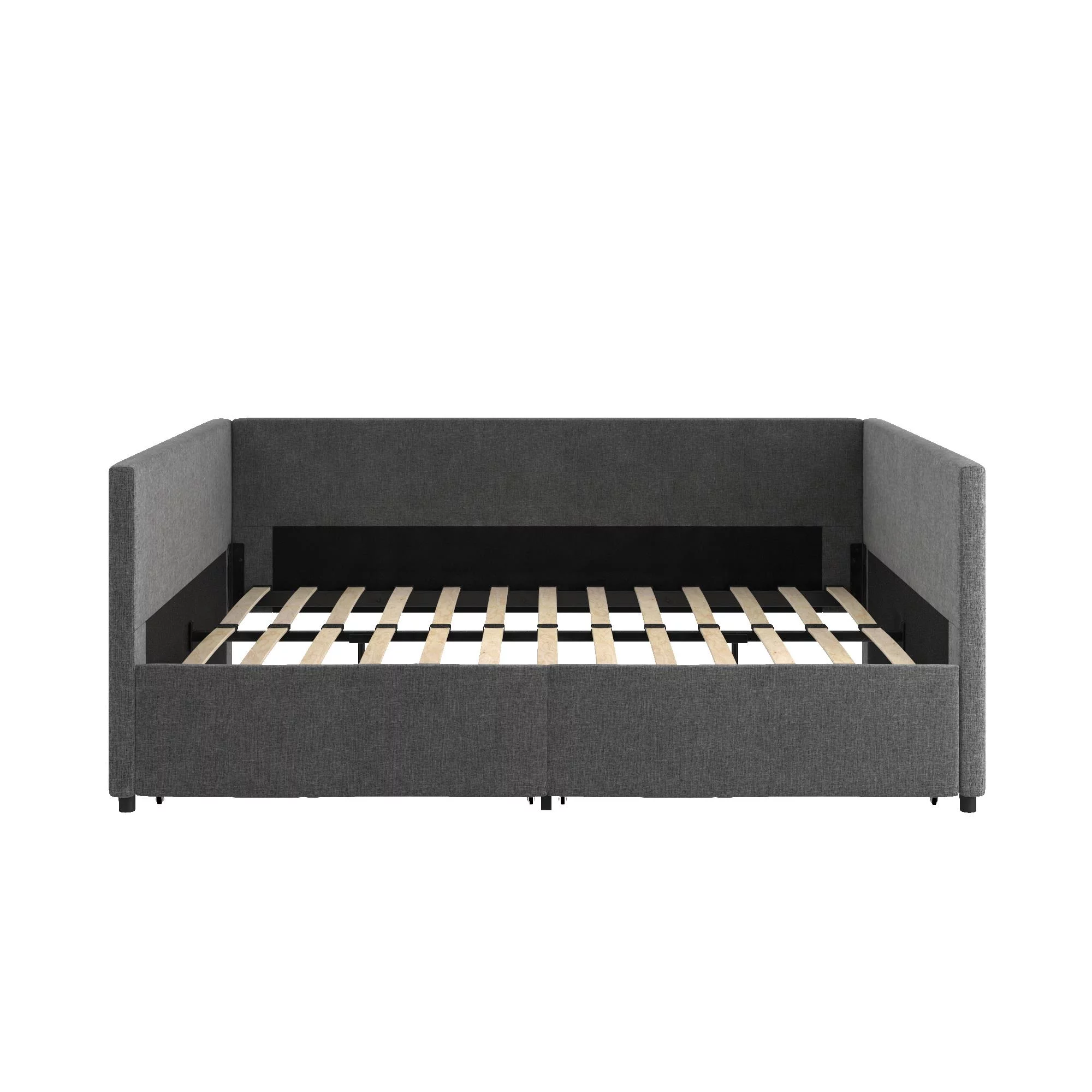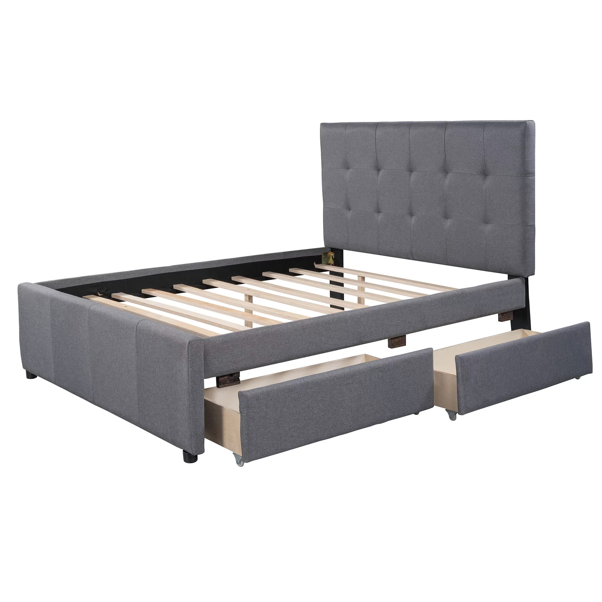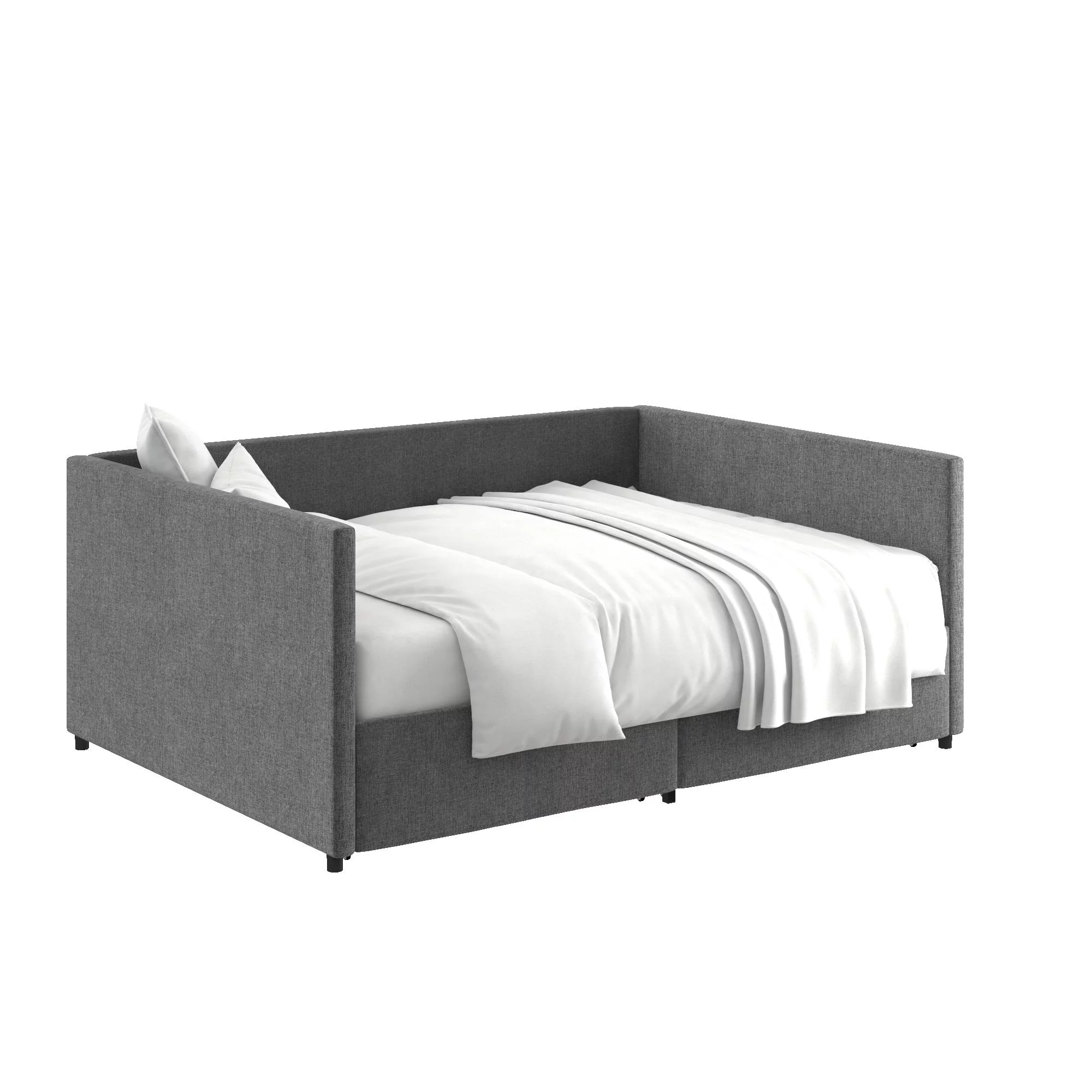 EUROCO Full Size Upholstery DayBed with 2 Drawers, Solid Wood Plaform Bed for Kids Teens Adults, Gray