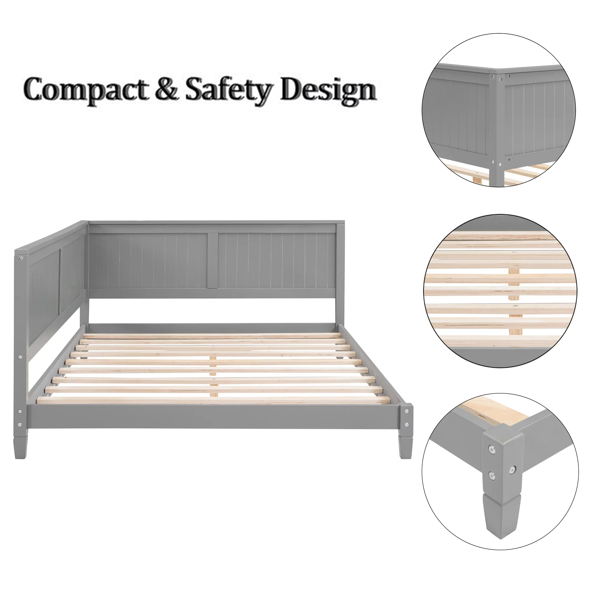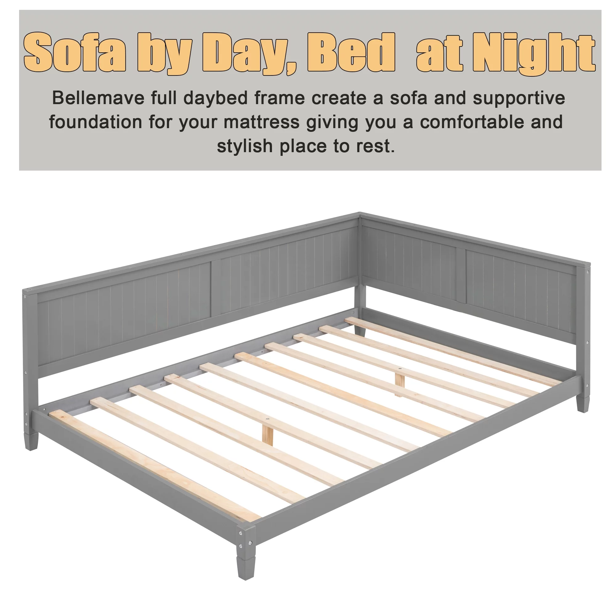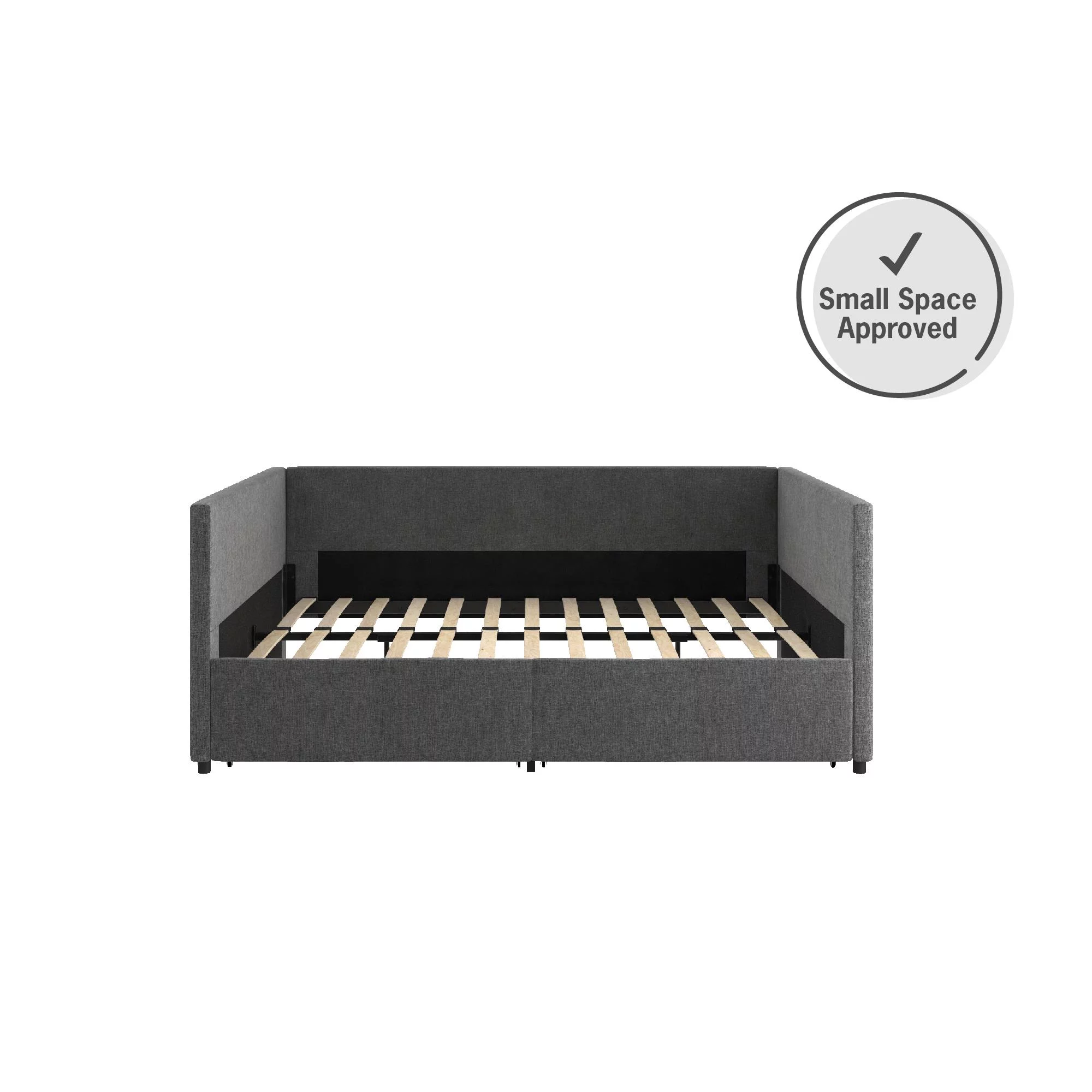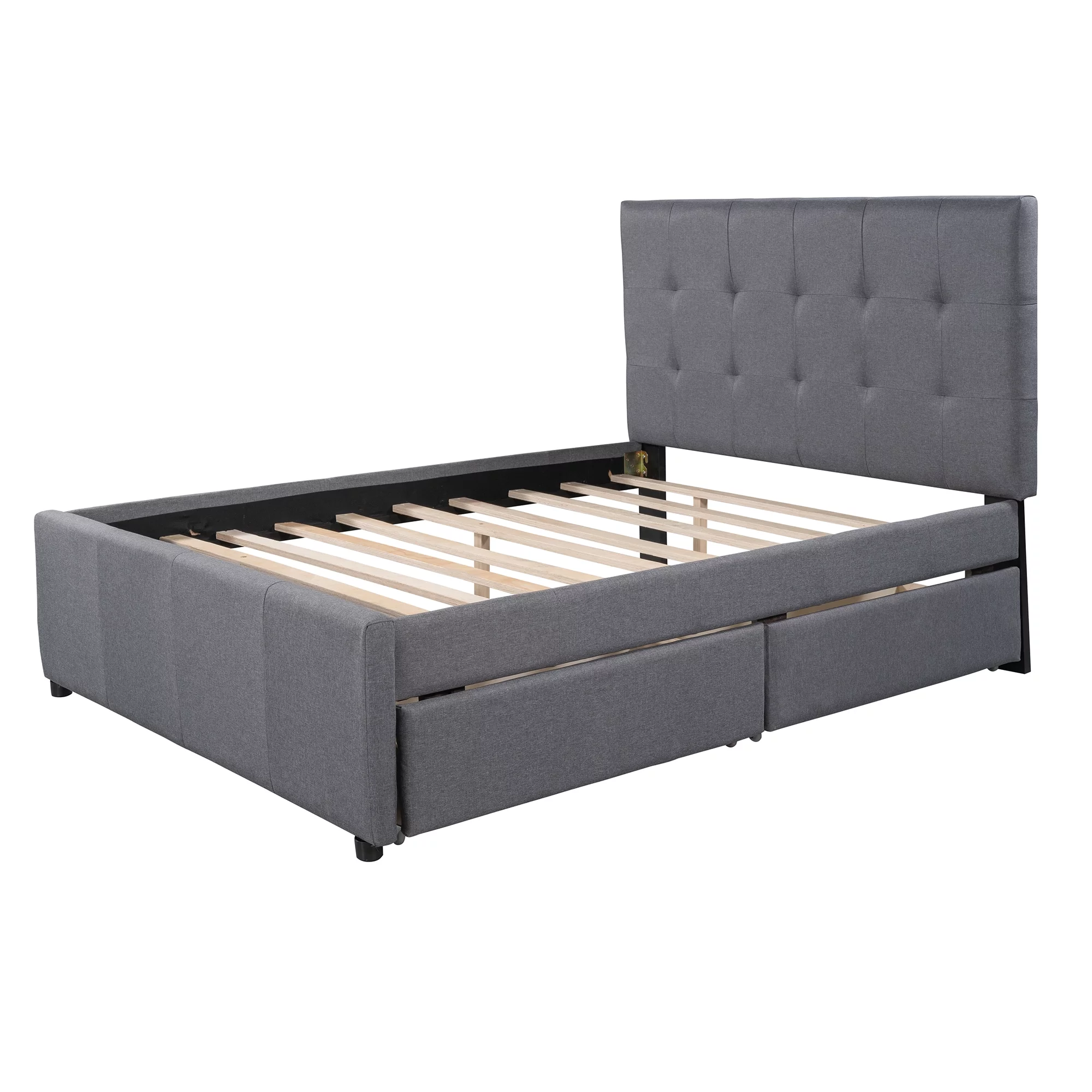EUROCO Full Size Upholstery DayBed with 2 Drawers, Solid Wood Plaform Bed for Kids Teens Adults, Gray