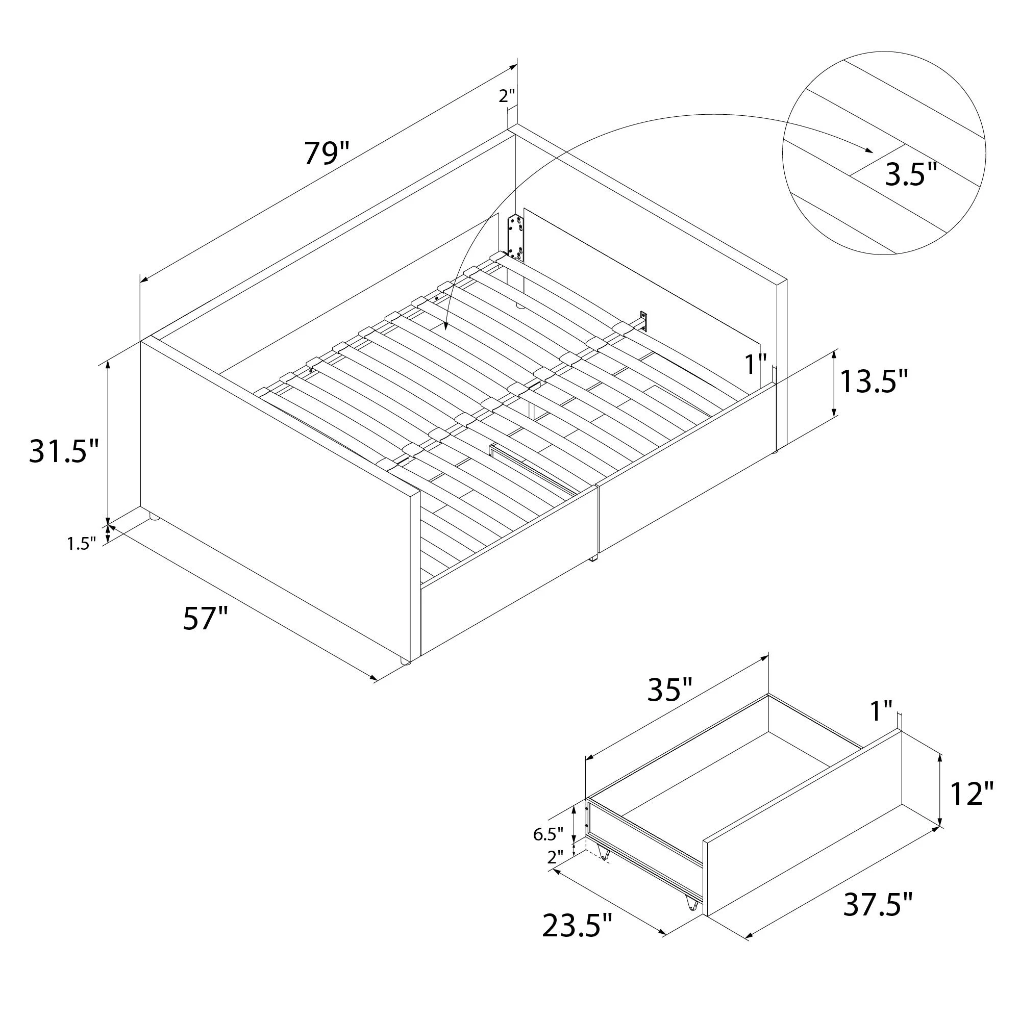 Euroco Full Size PU Upholstery Daybed, Tufted Sofa Bed with 2 Drawers for Kids Room, White