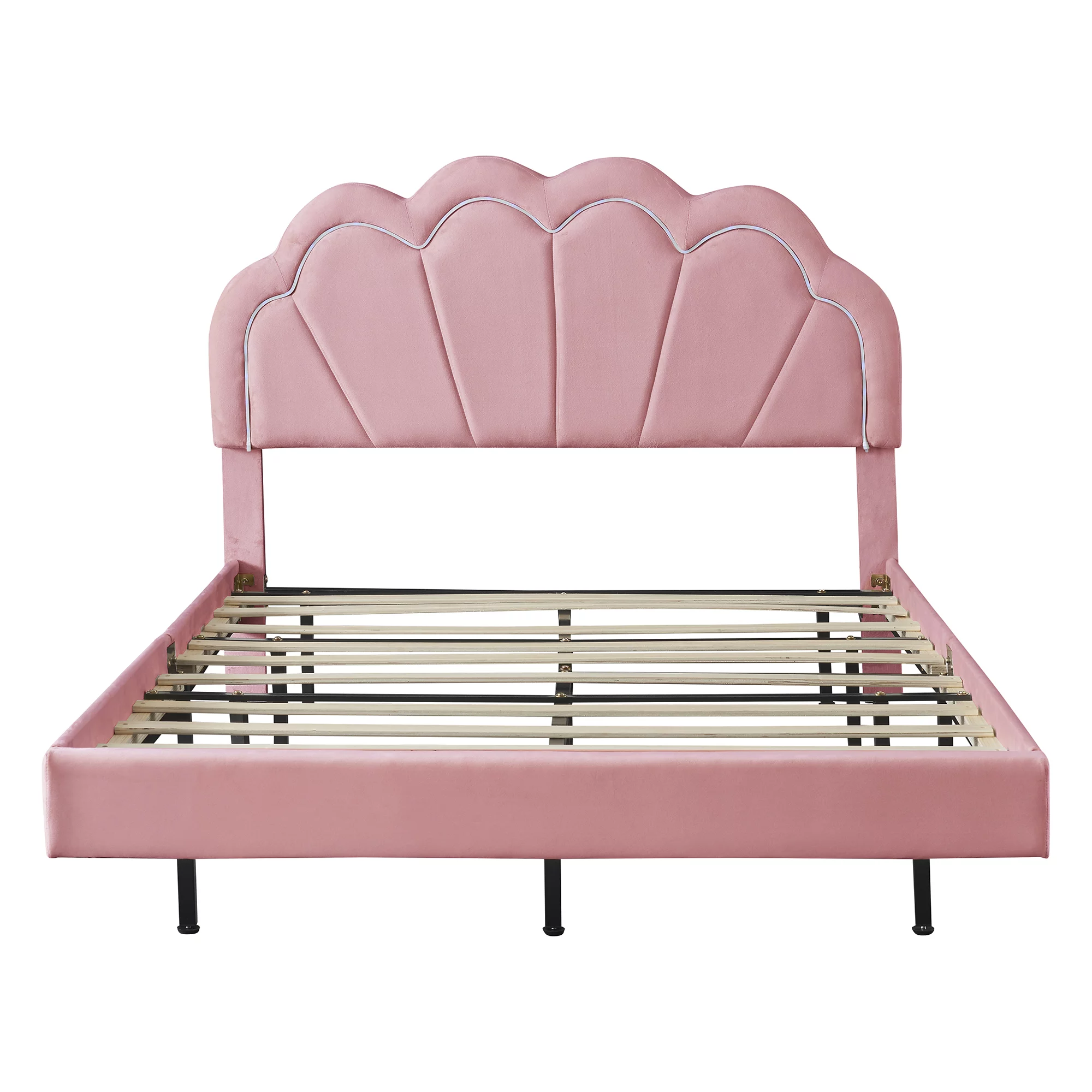 Queen Size Floating Bed Frame with LED Lights and USB Charging,Modern Upholstered Platform LED Bed Frame, White