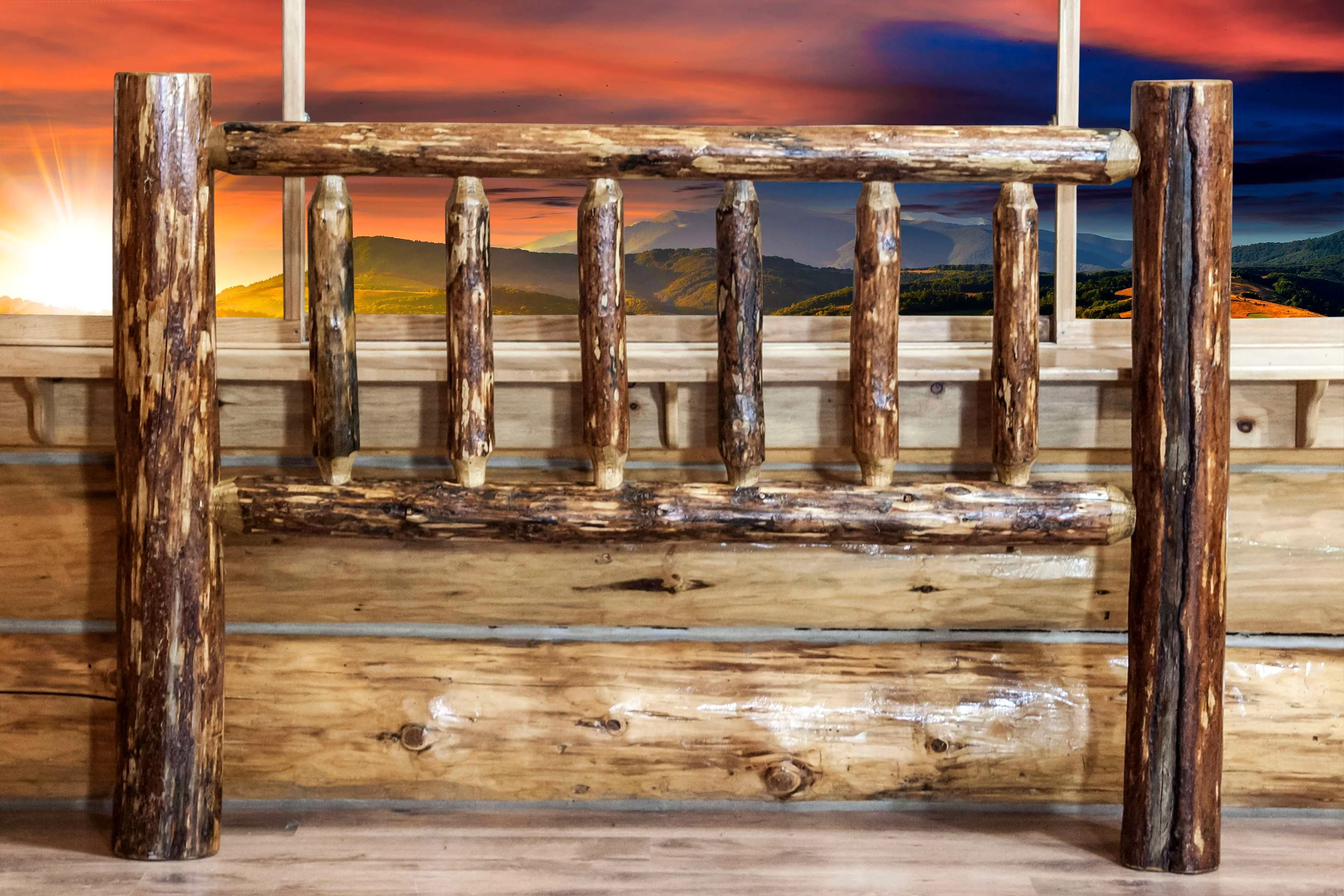 MWGCCKHB Glacier Country Full Log Headboard - Stained and Lacquered