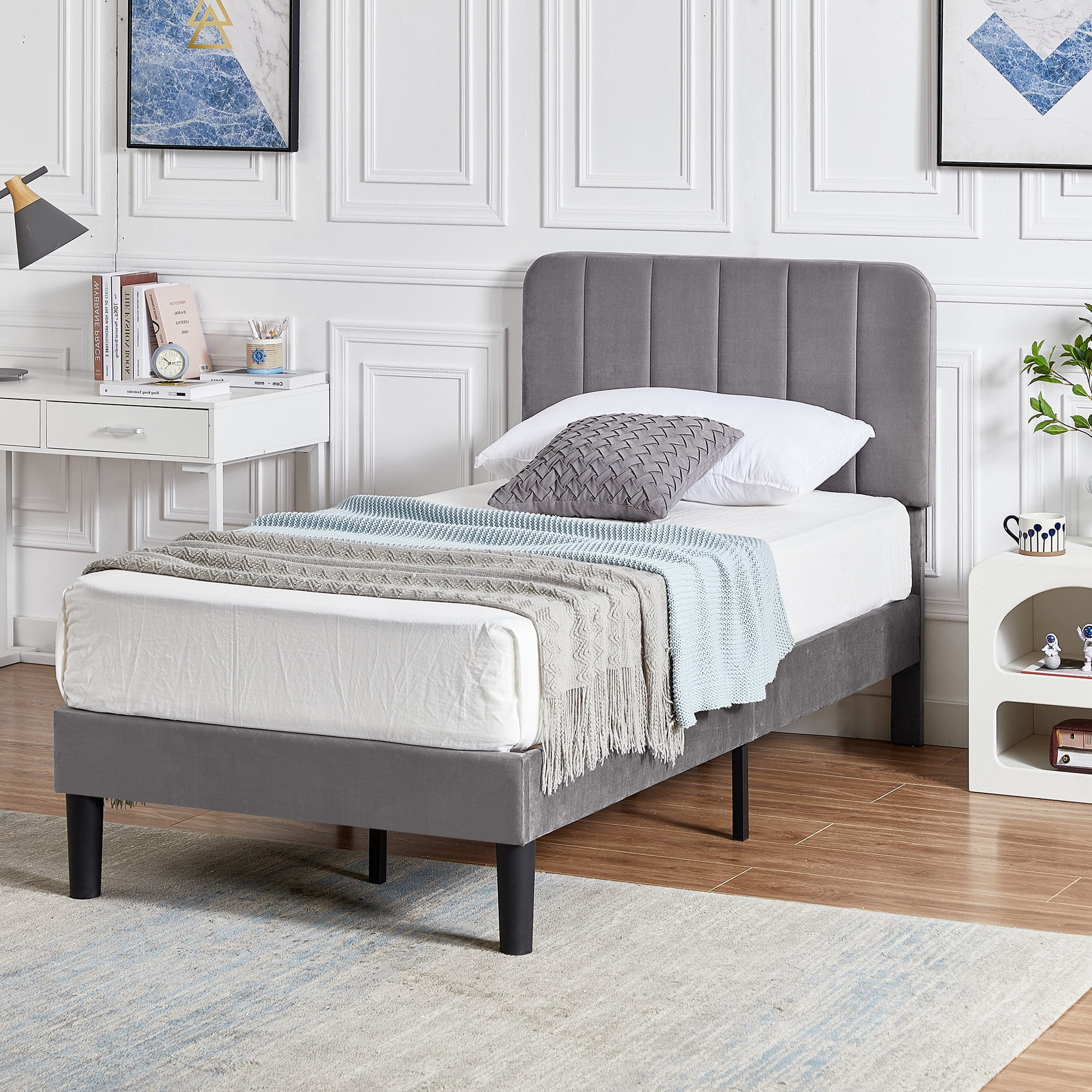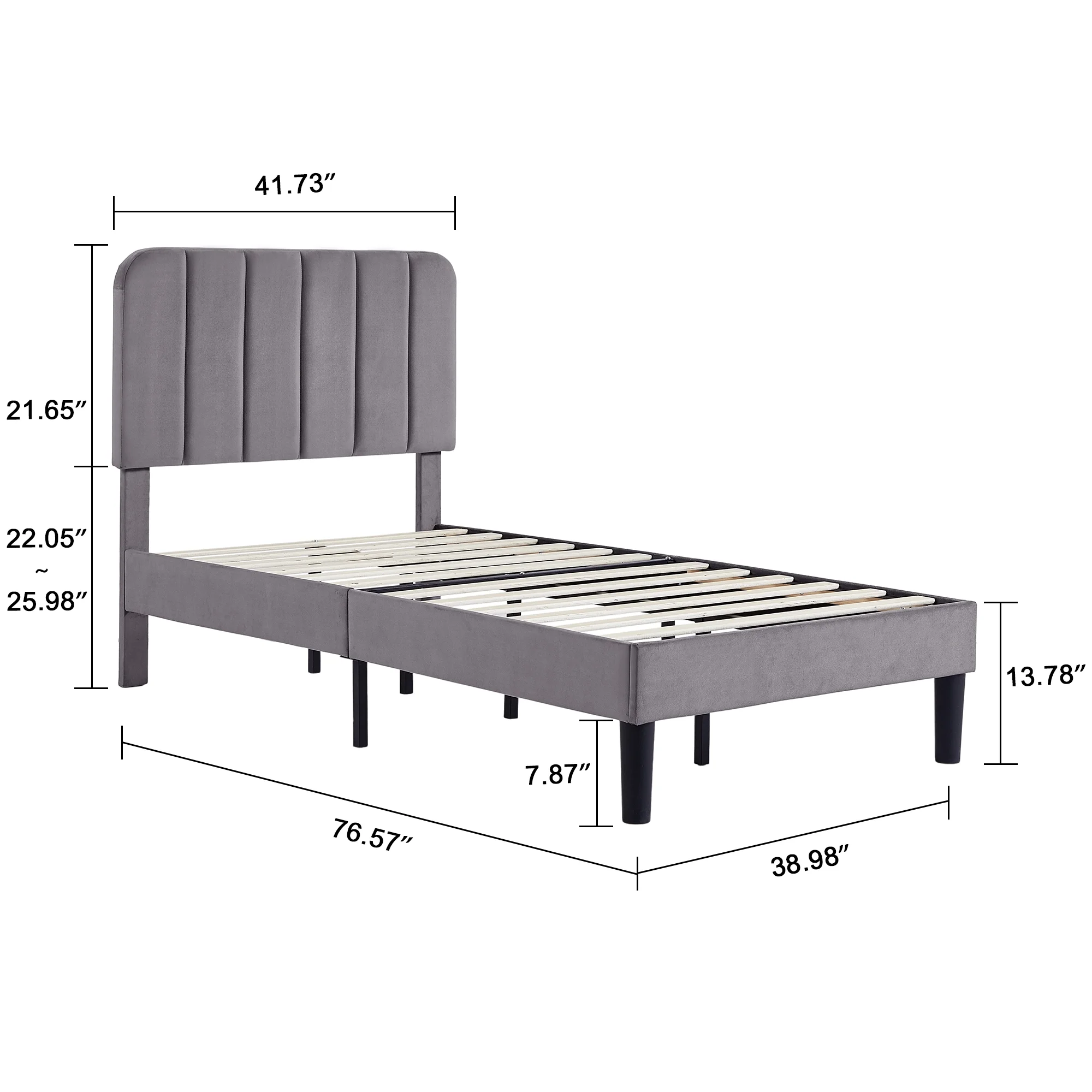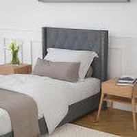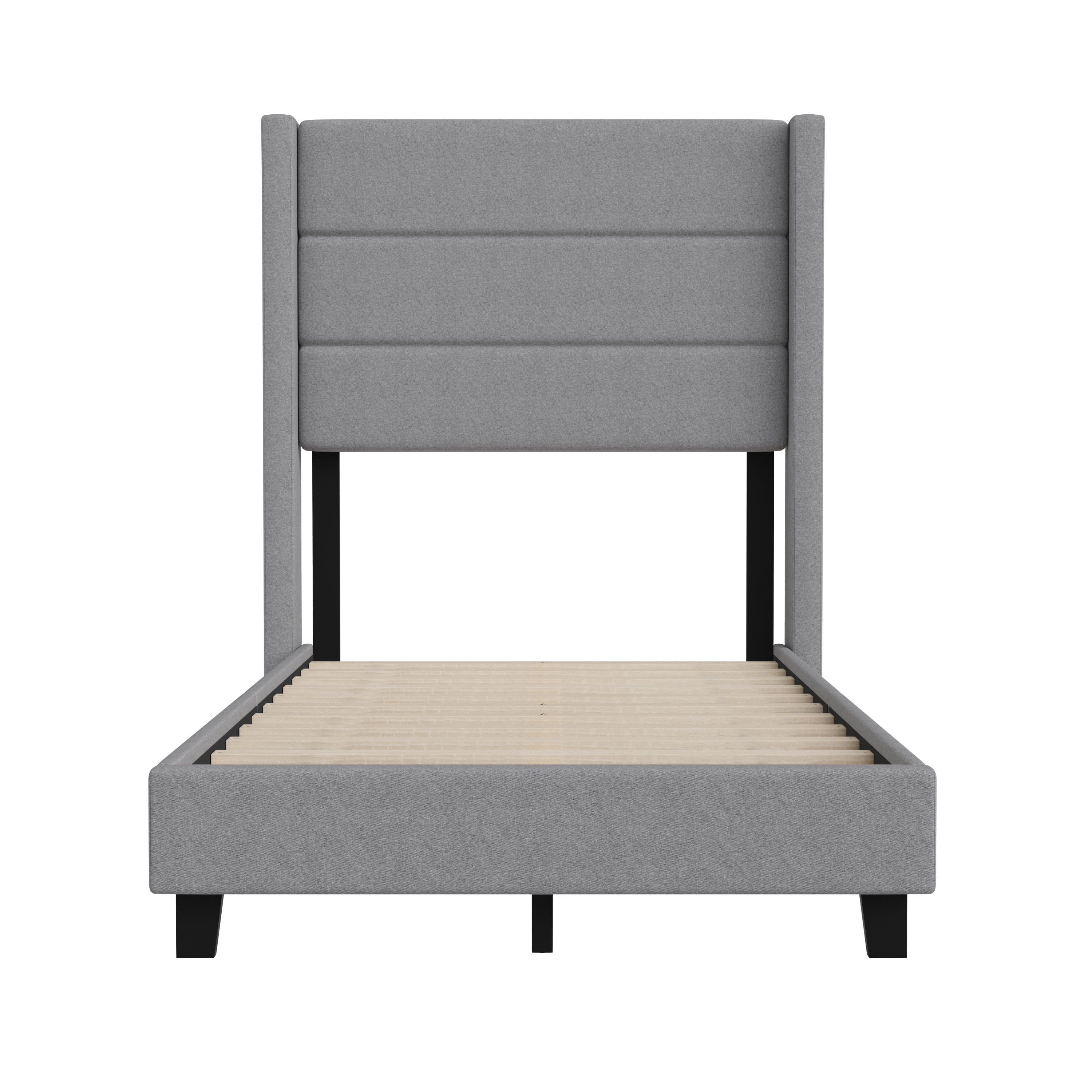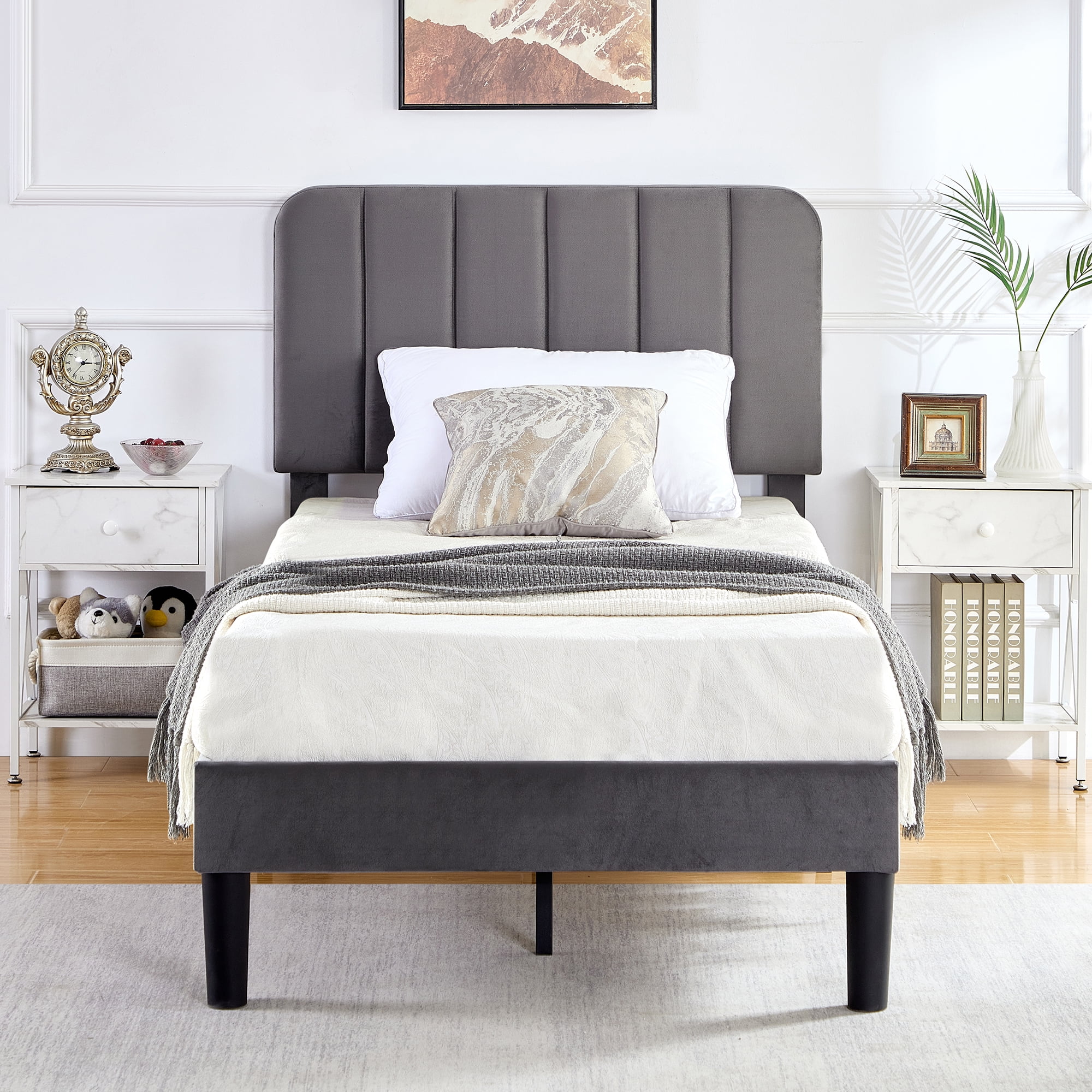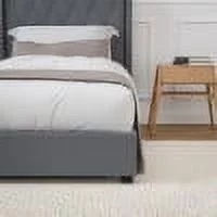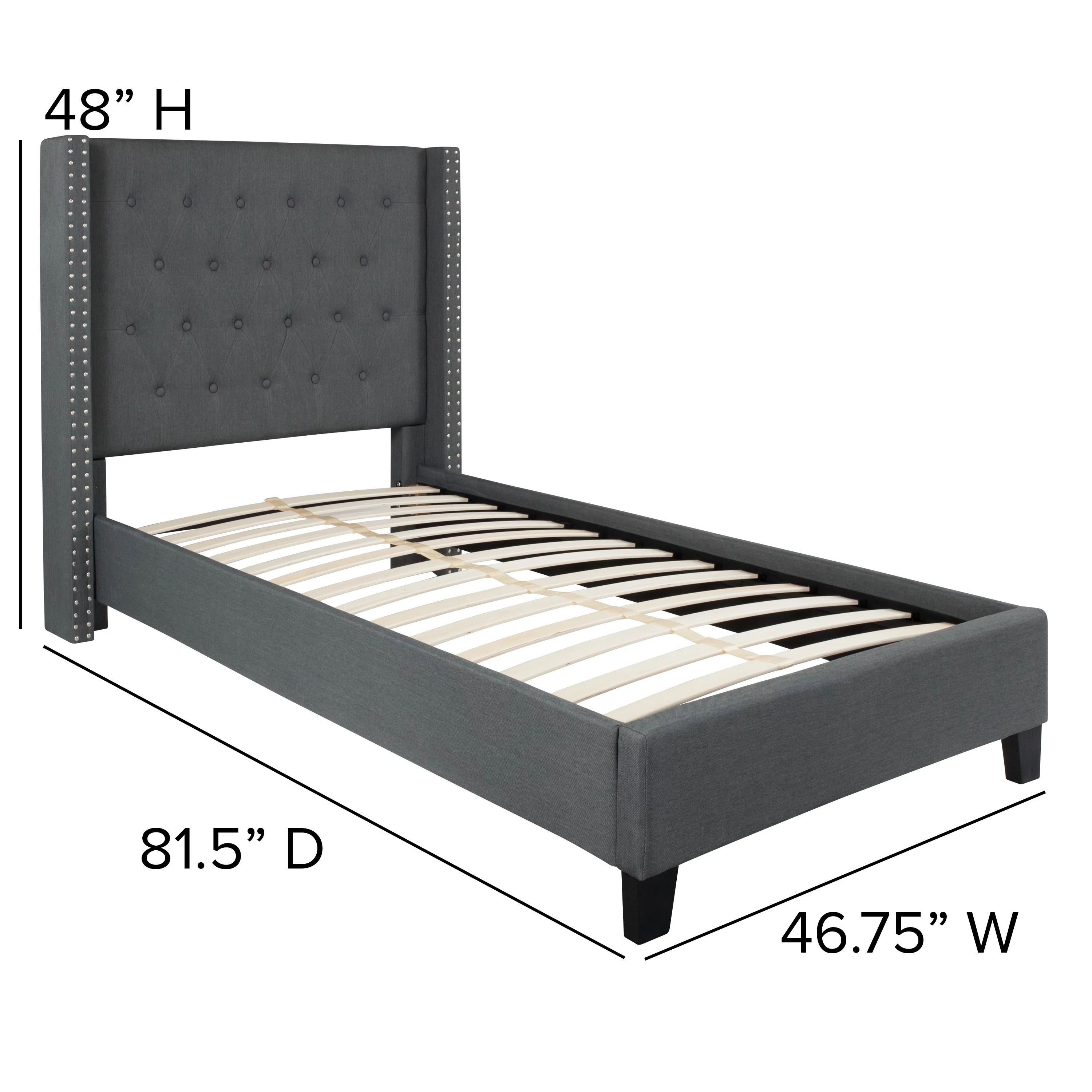 Merrick Lane Upholstered Twin Size Platform Bed in Dark Gray Fabric with Button Tufted Headboard
