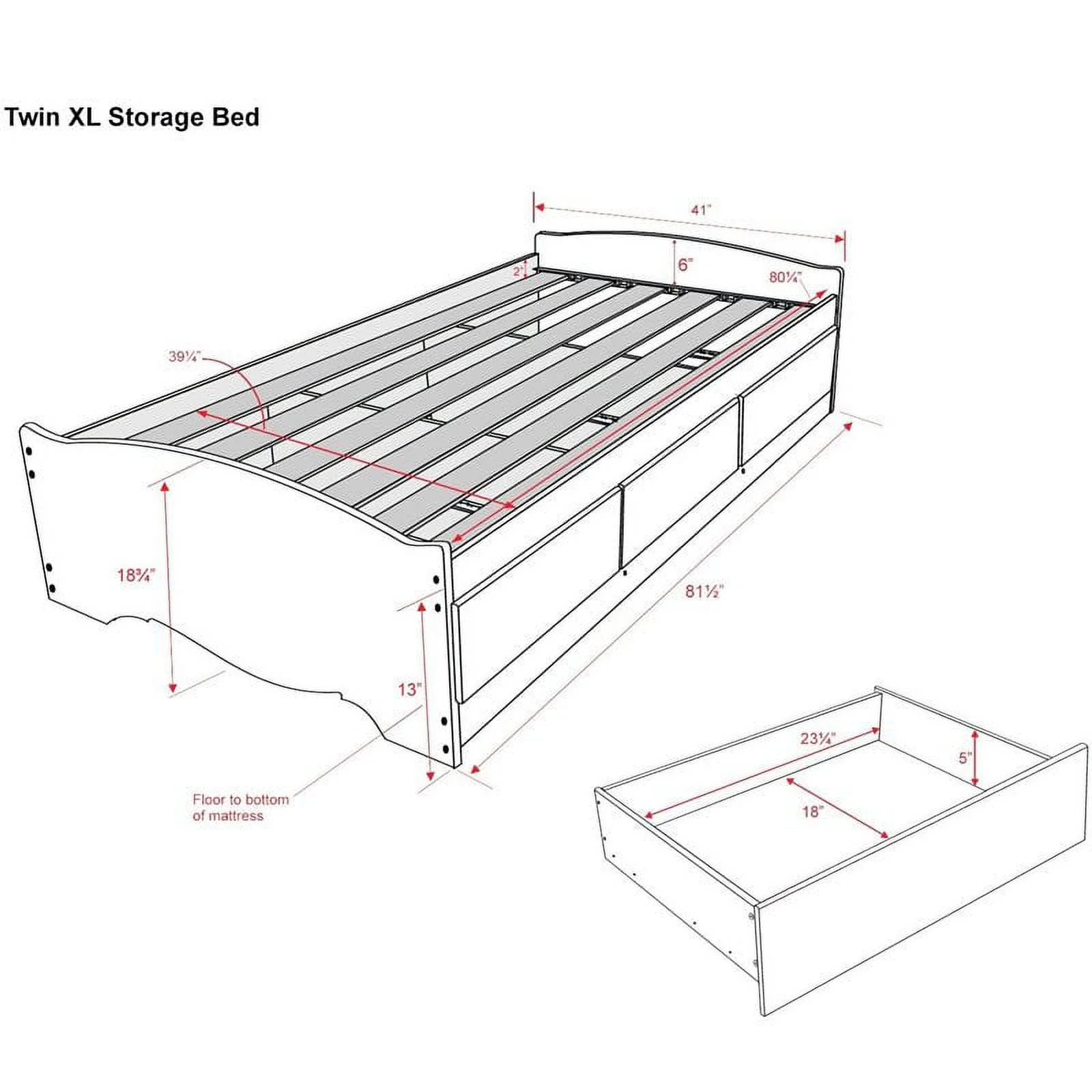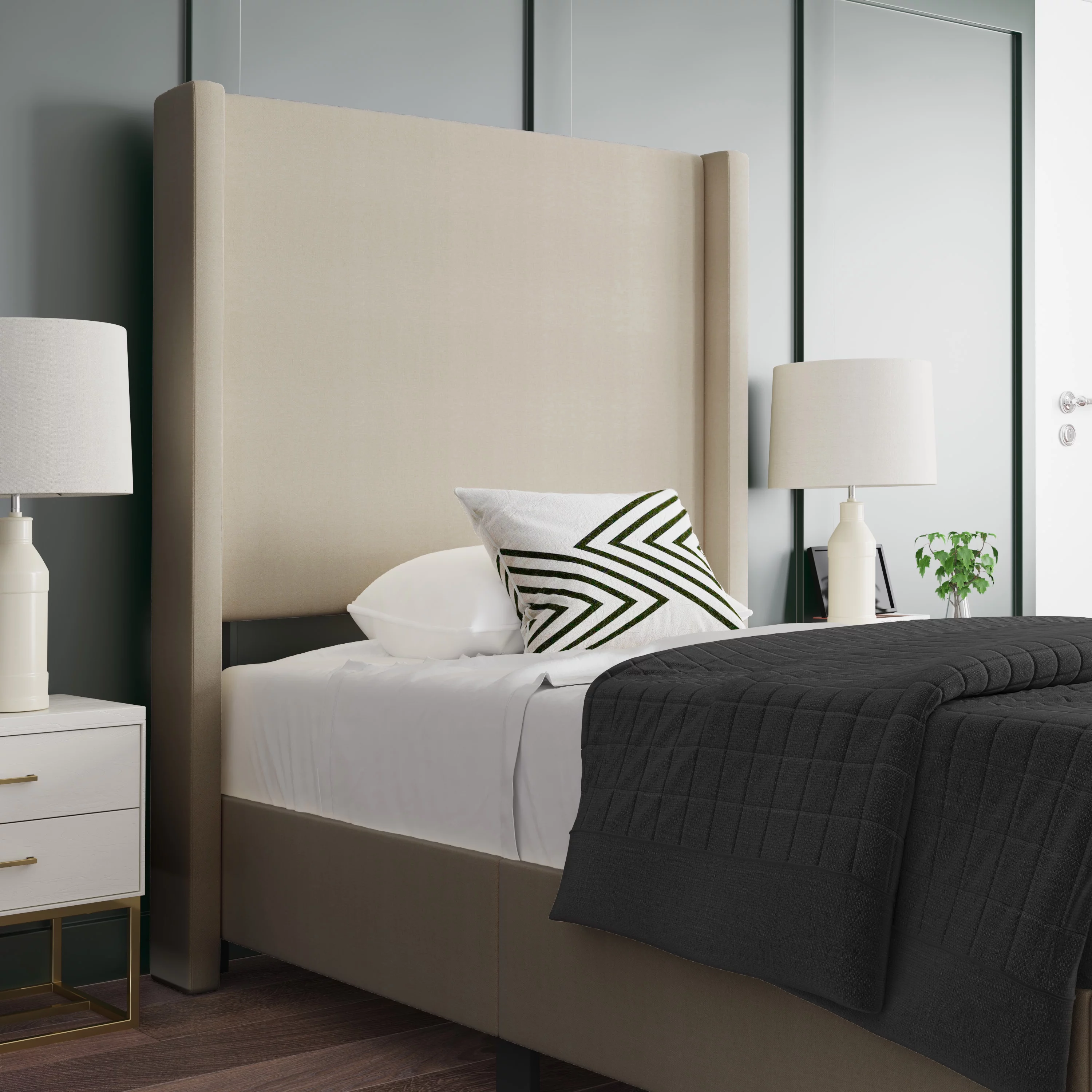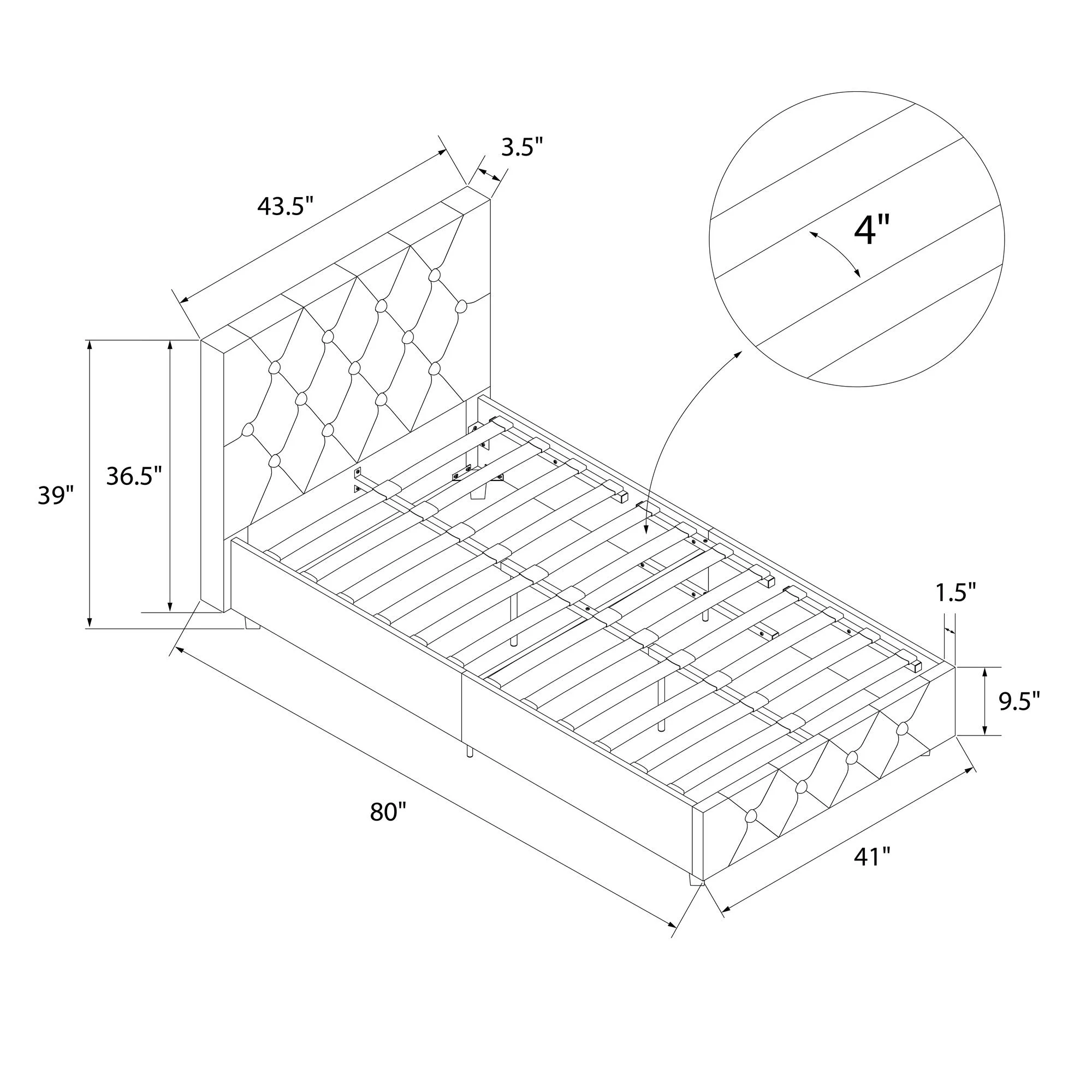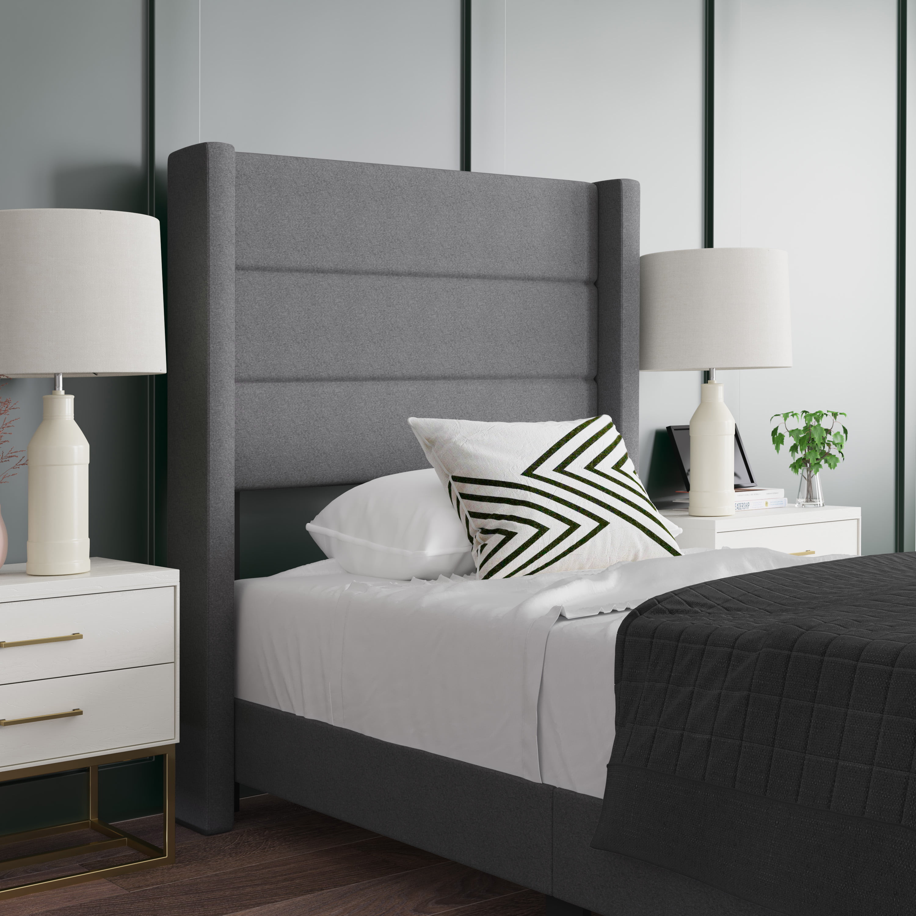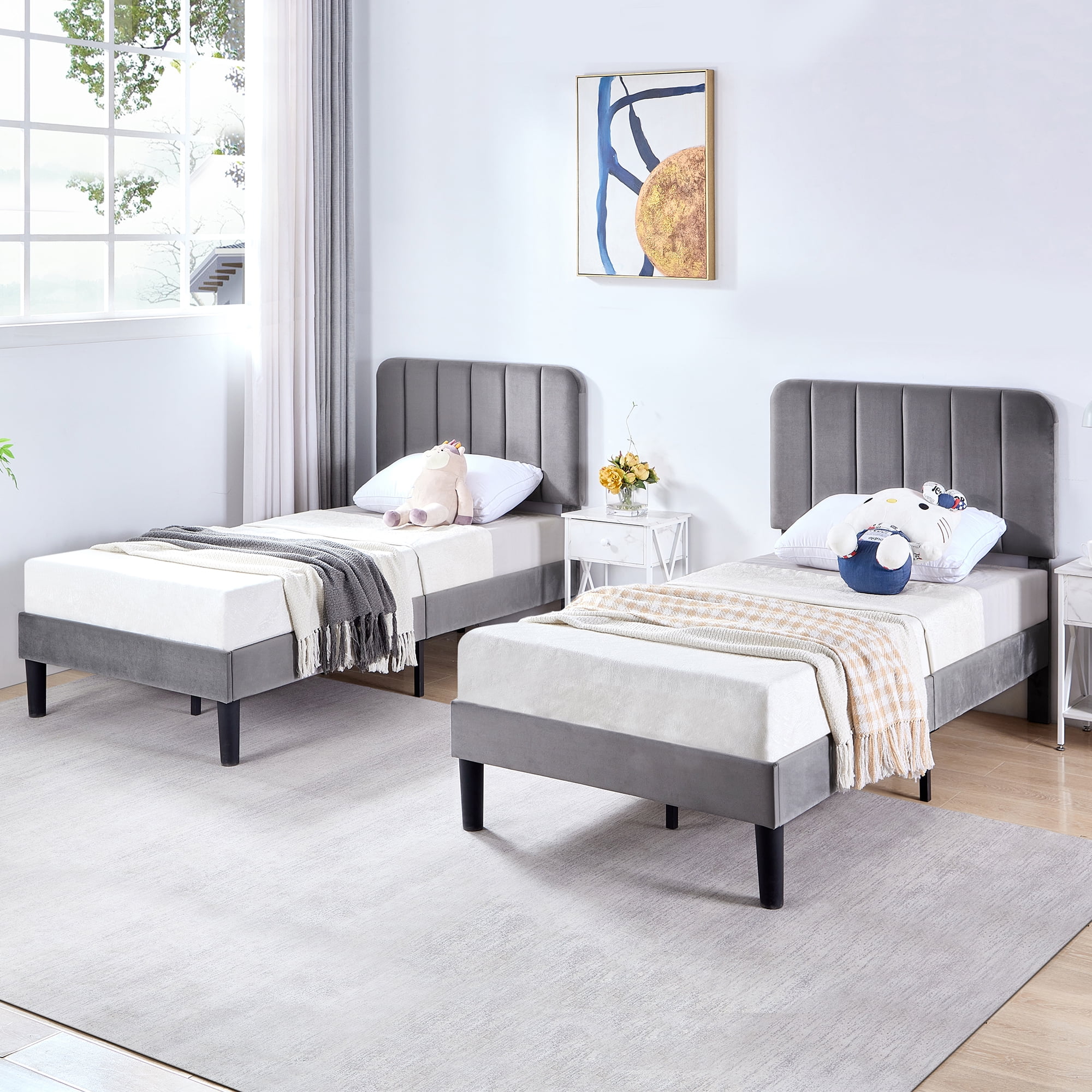 Merrick Lane Upholstered Twin Size Platform Bed in Dark Gray Fabric with Button Tufted Headboard