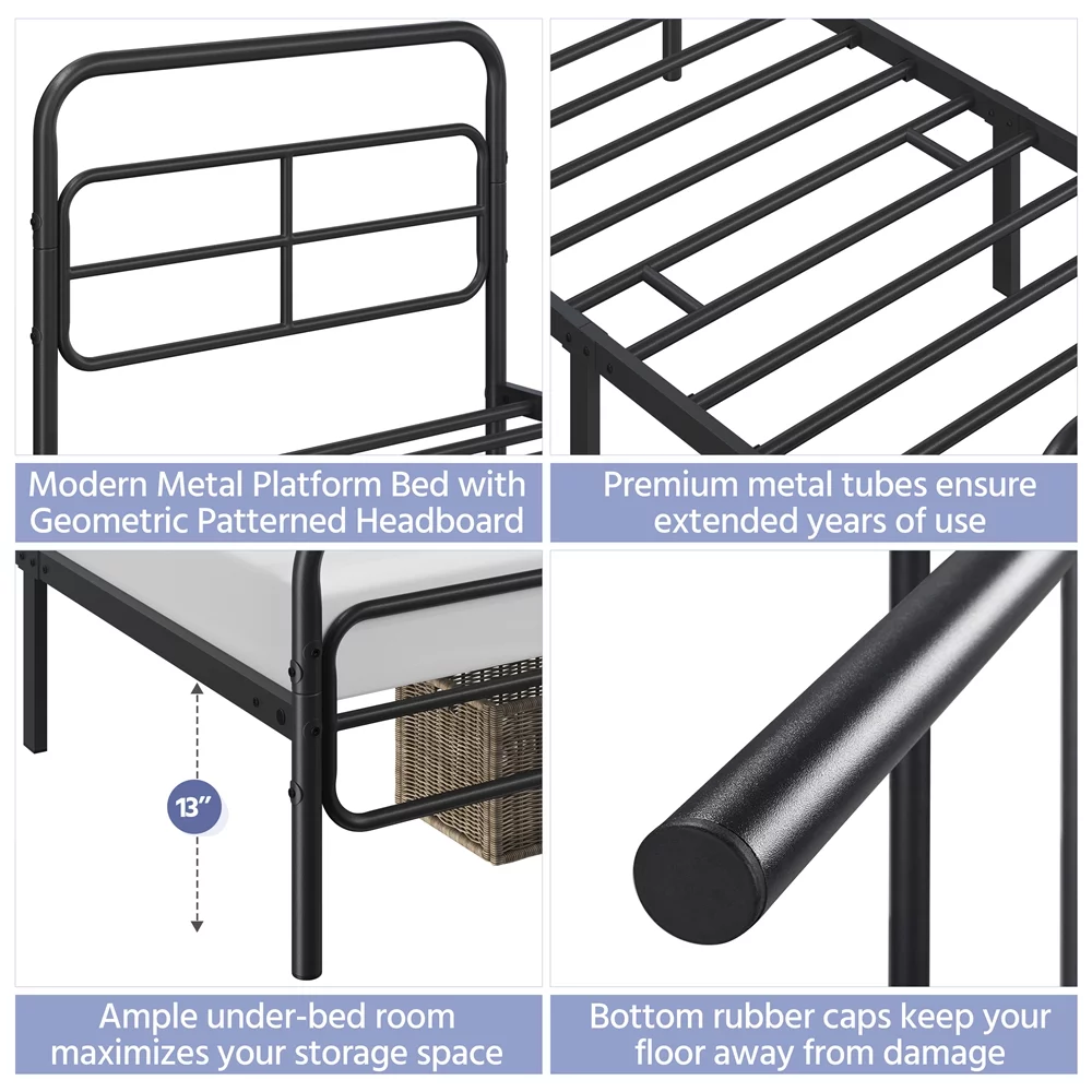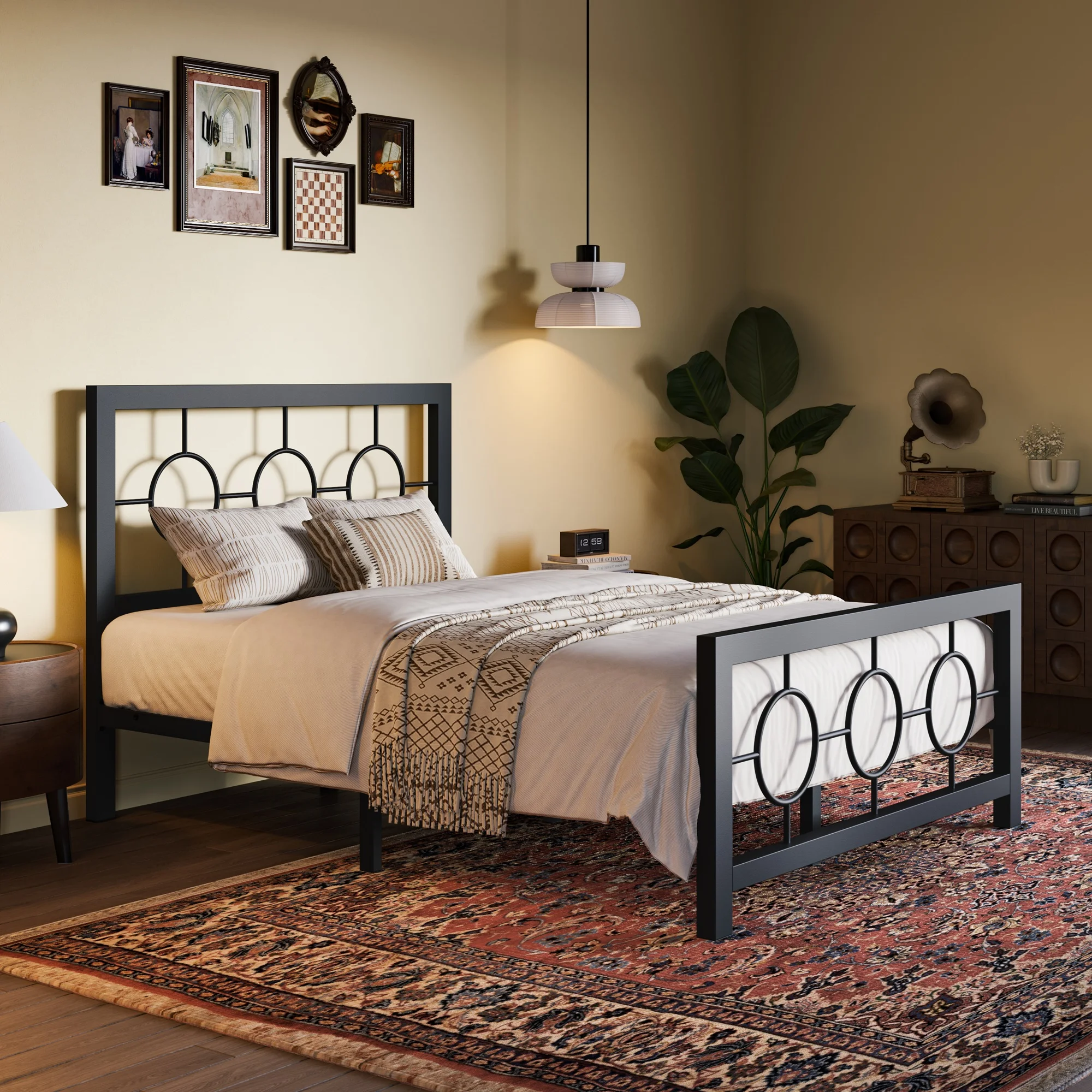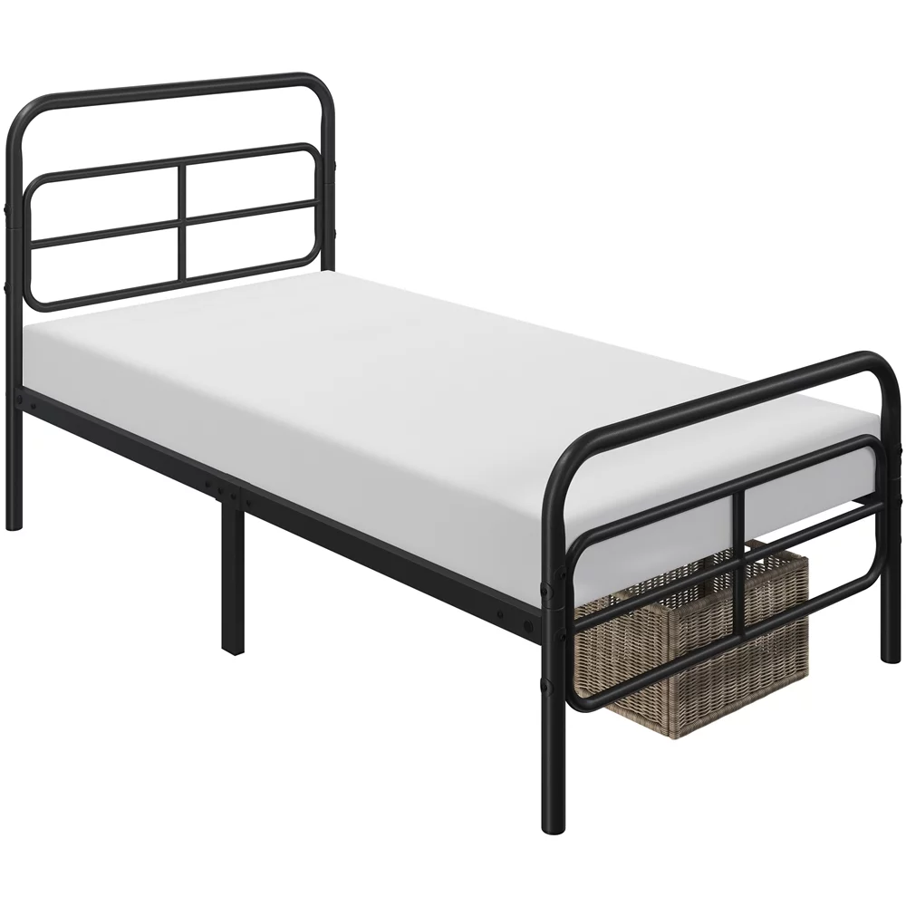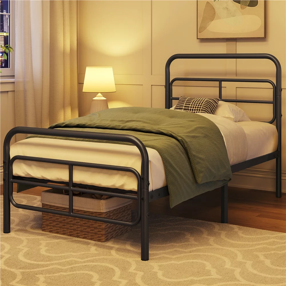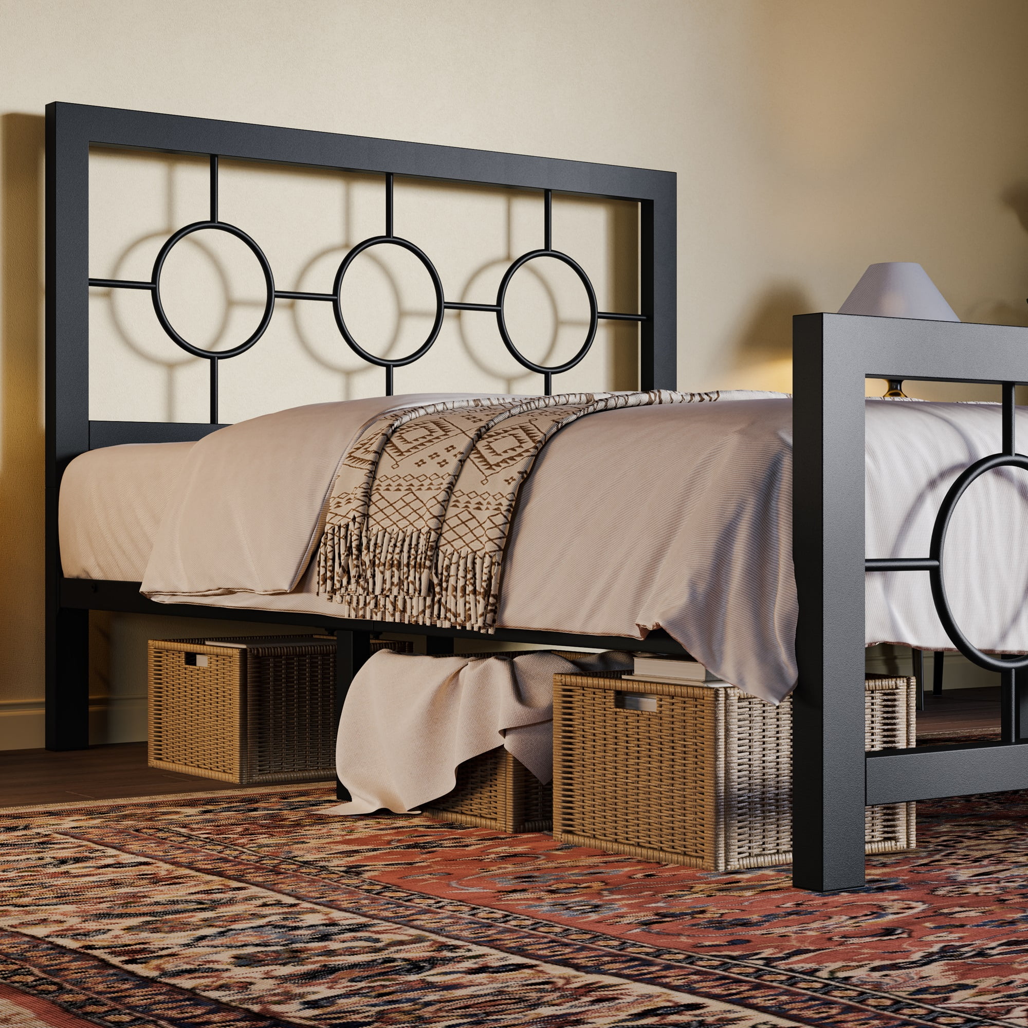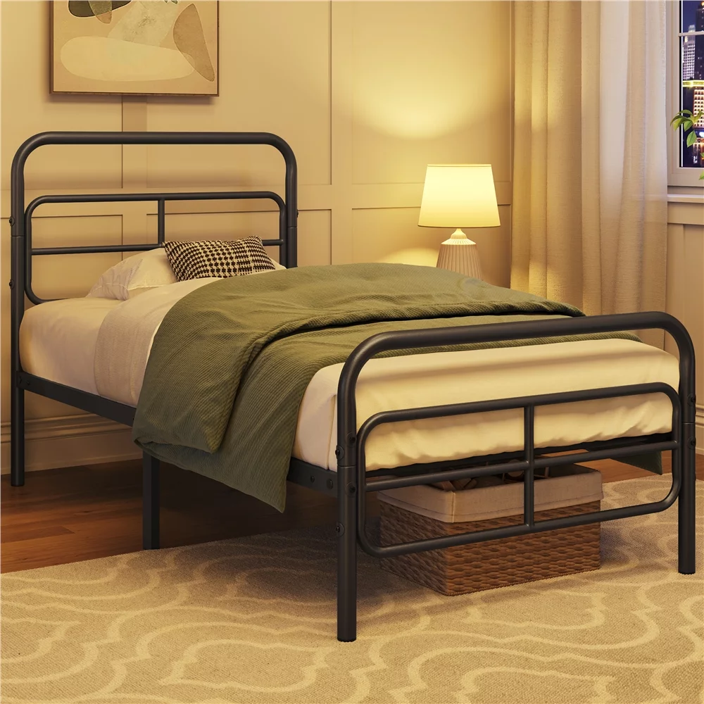 Sha Cerlin Black Twin Size Metal Platform Bed Frame with Vintage Circular Headboard & Footboard, Adult