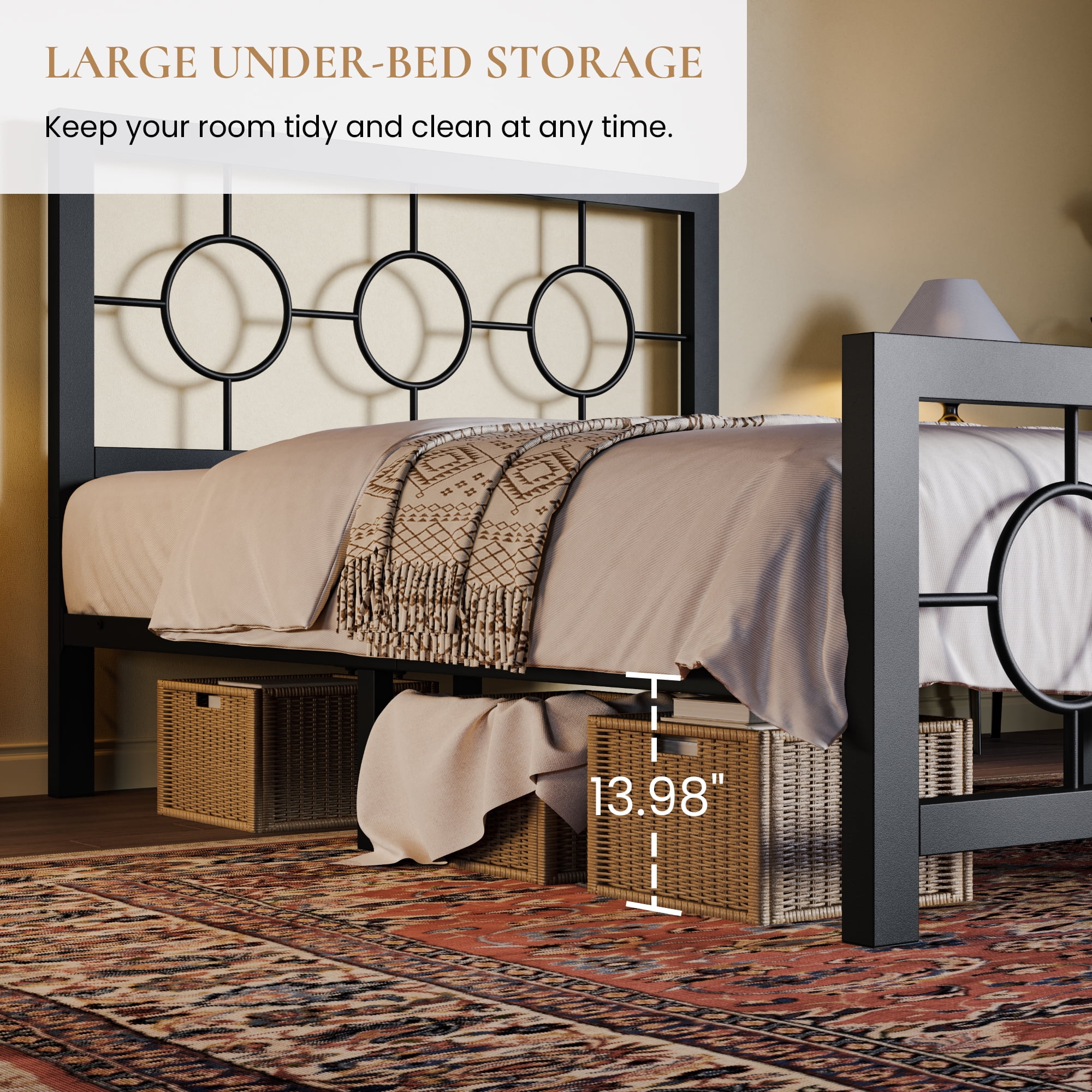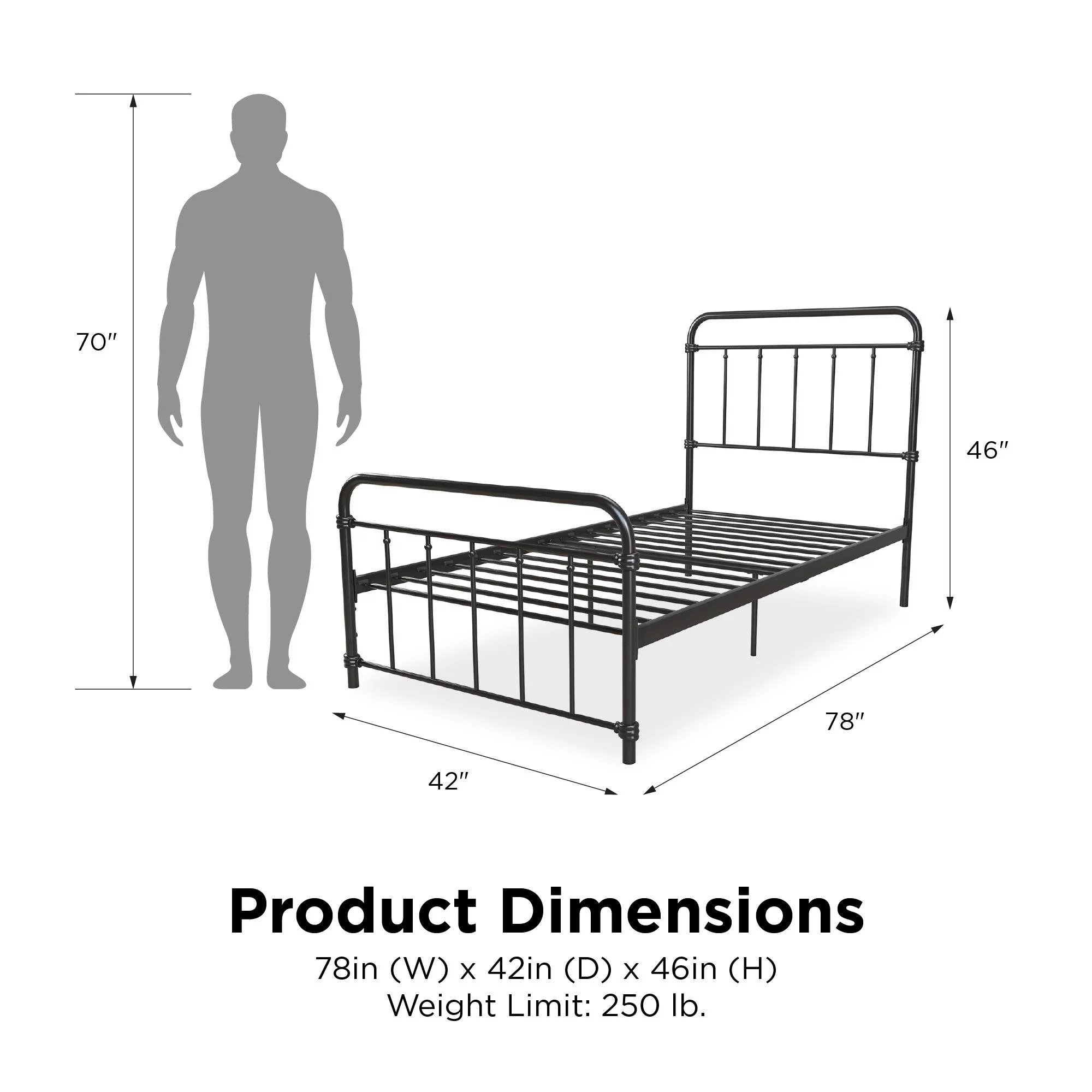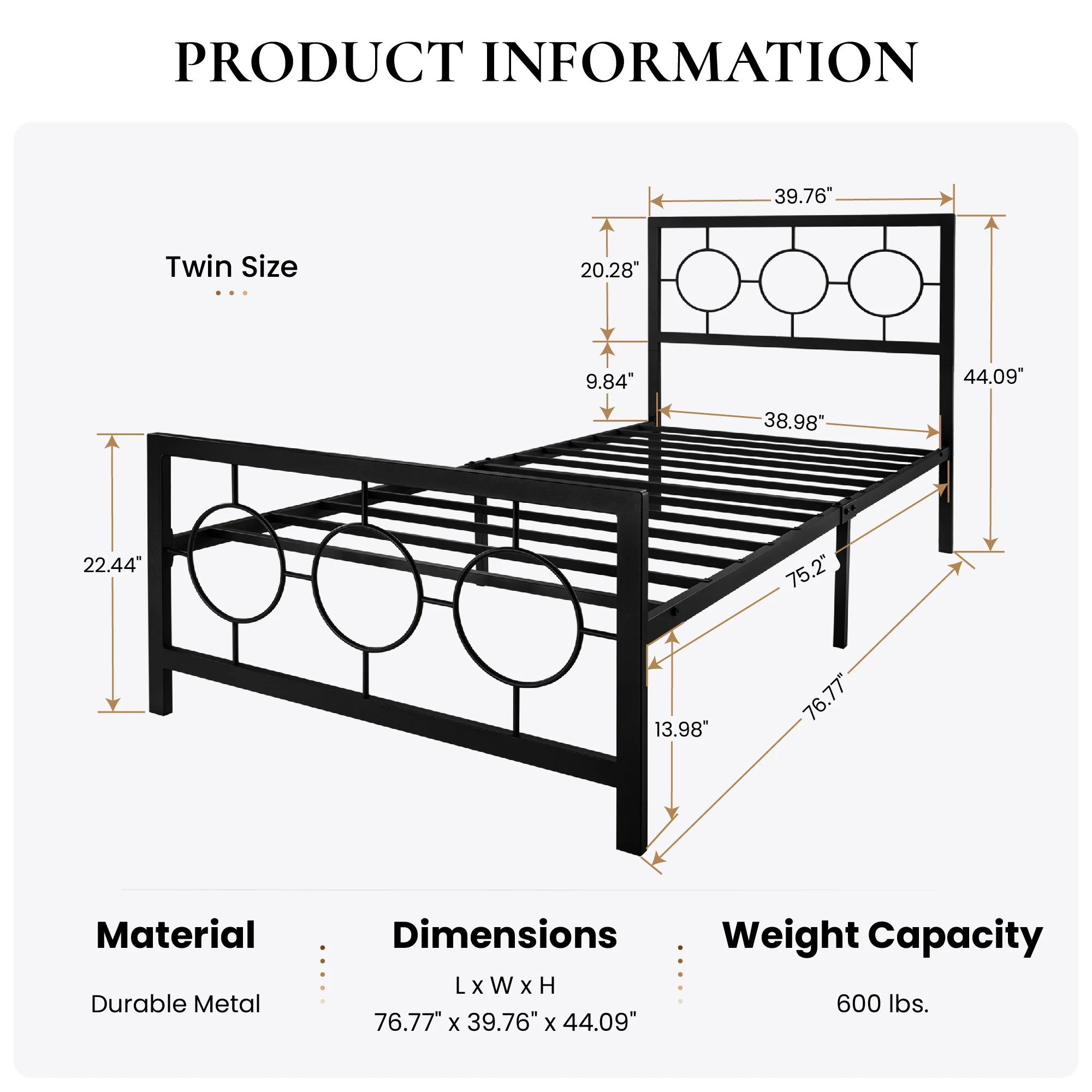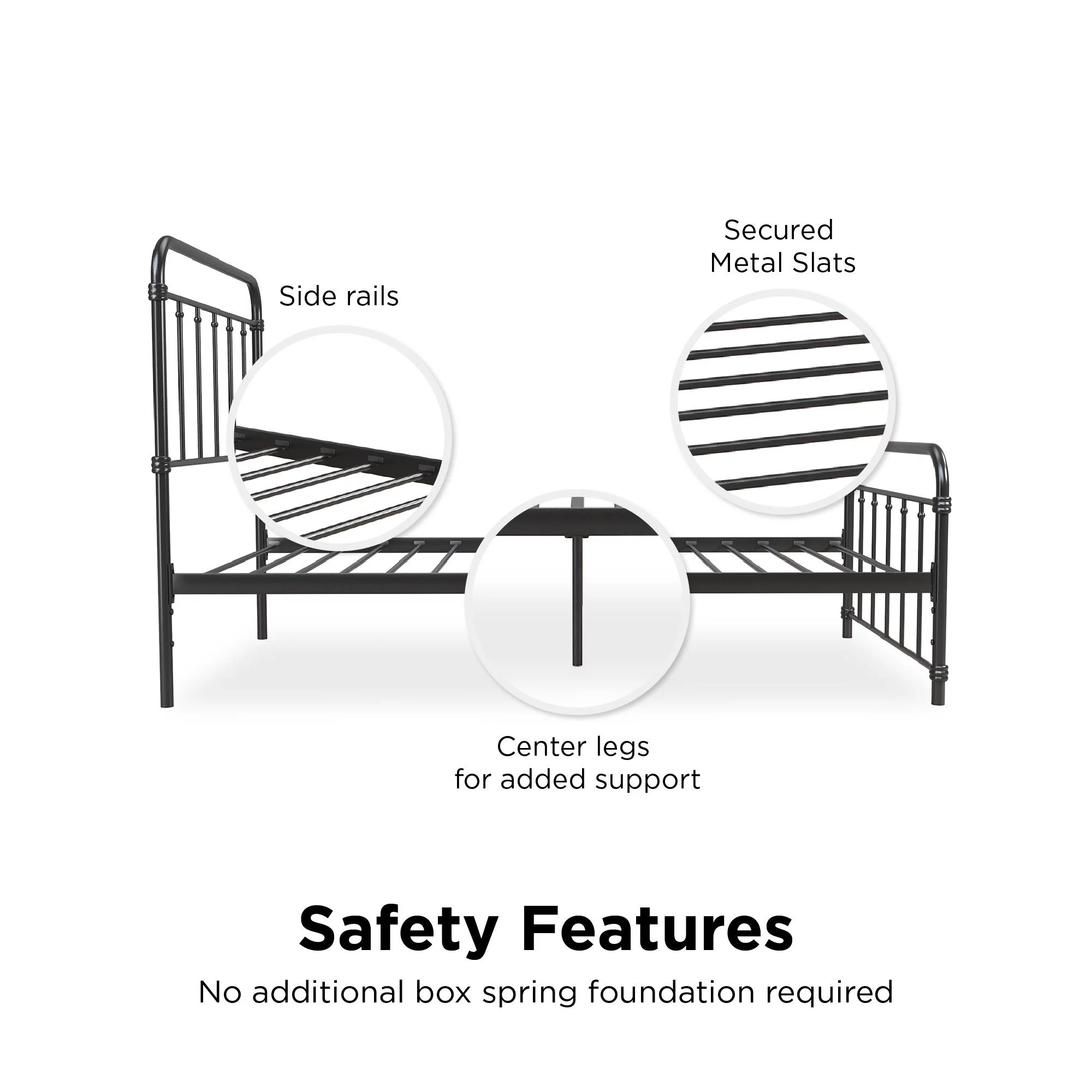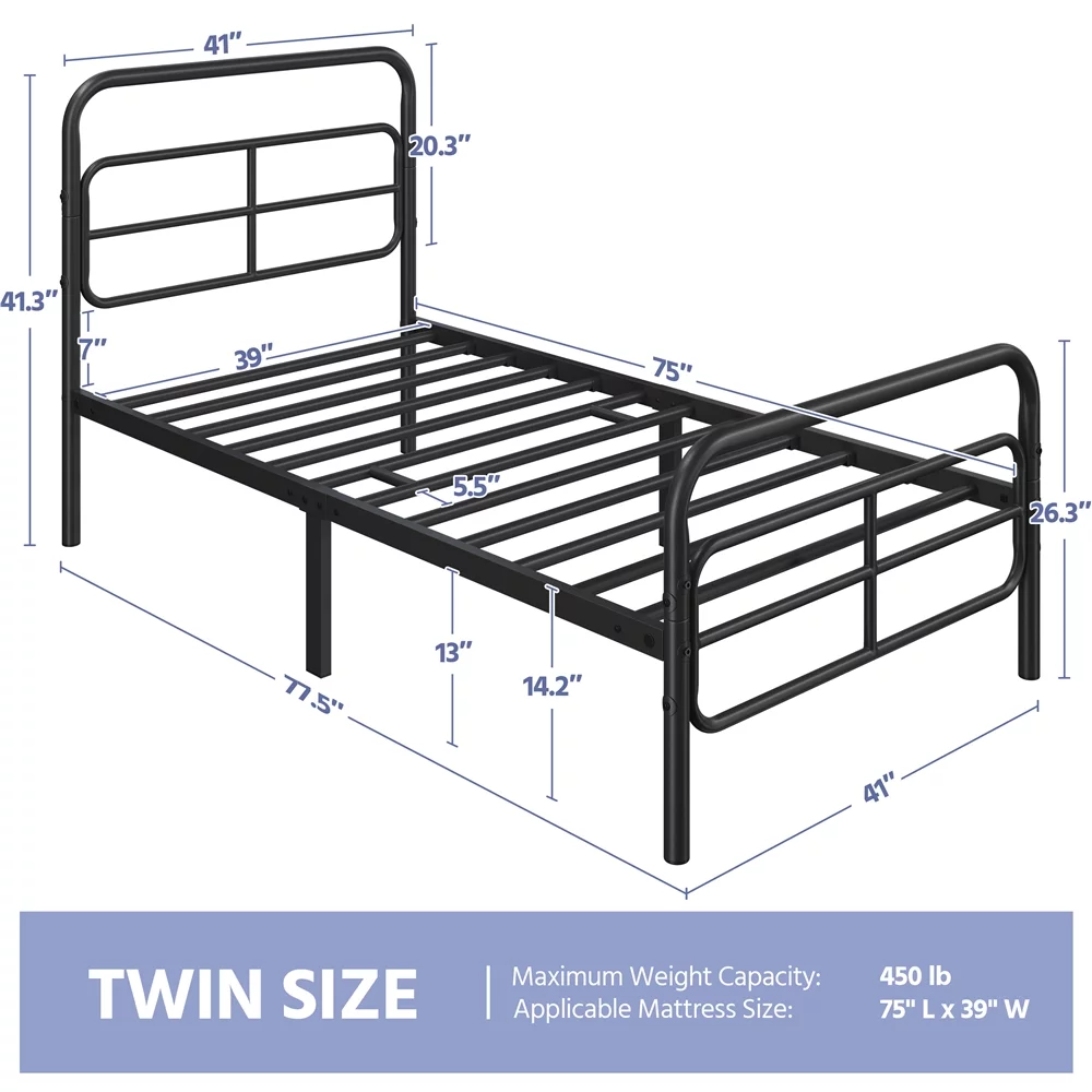 Sha Cerlin Black Twin Size Metal Platform Bed Frame with Vintage Circular Headboard & Footboard, Adult