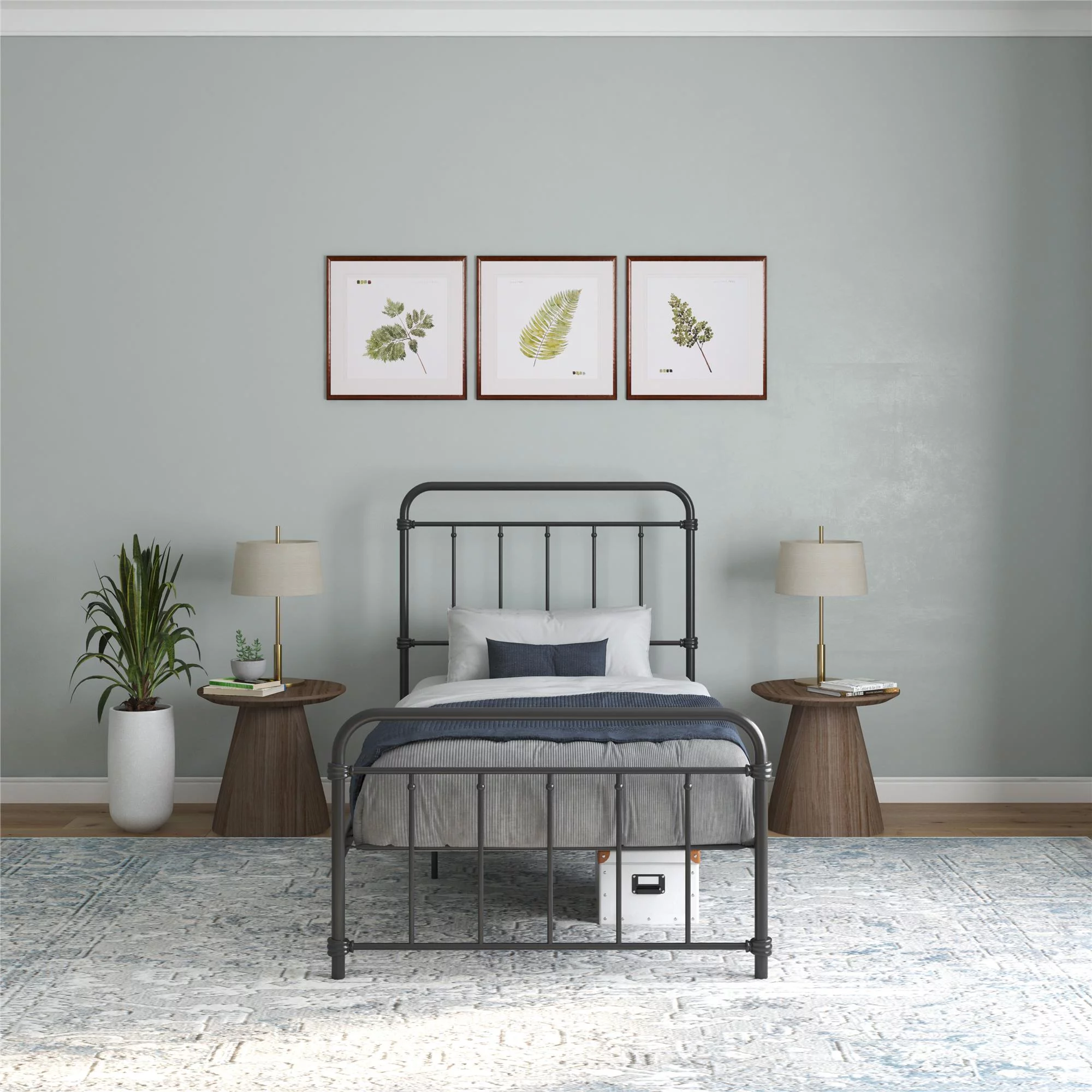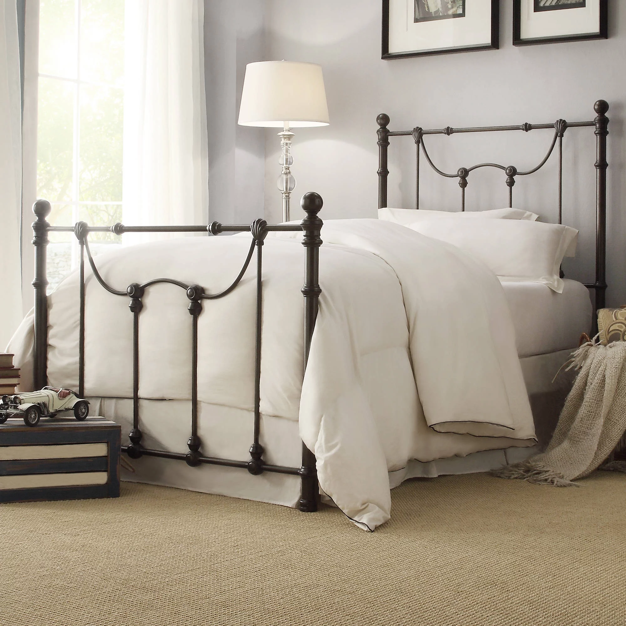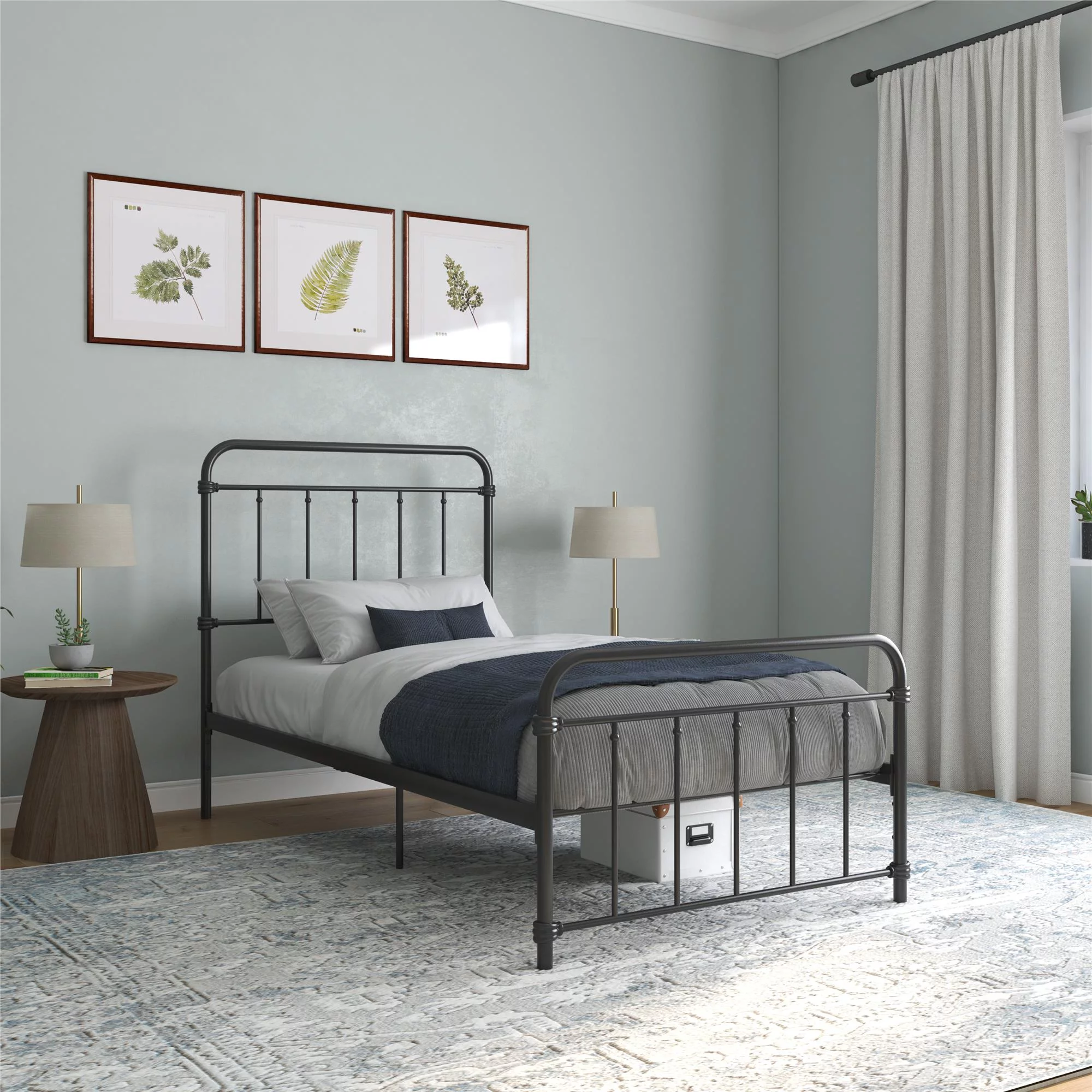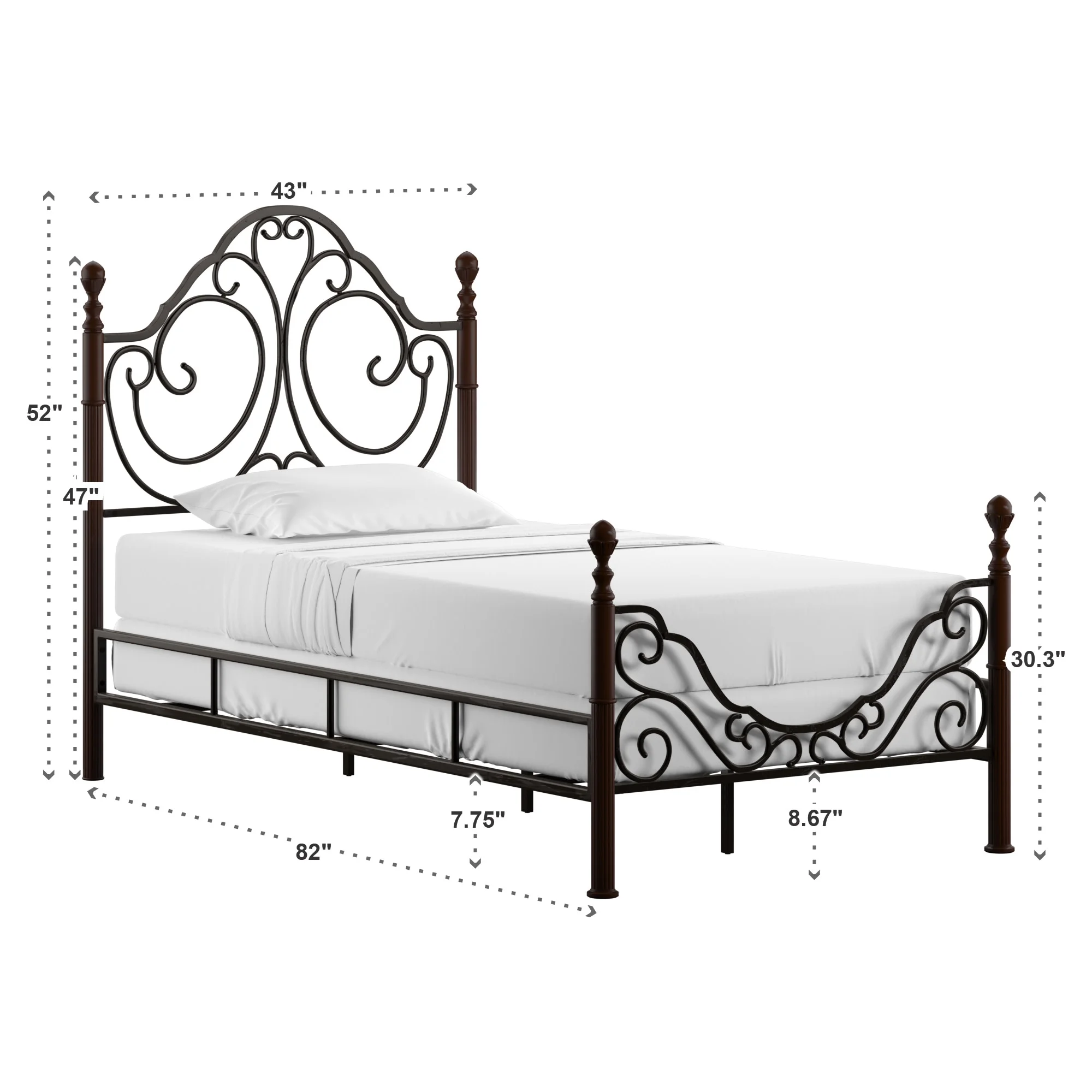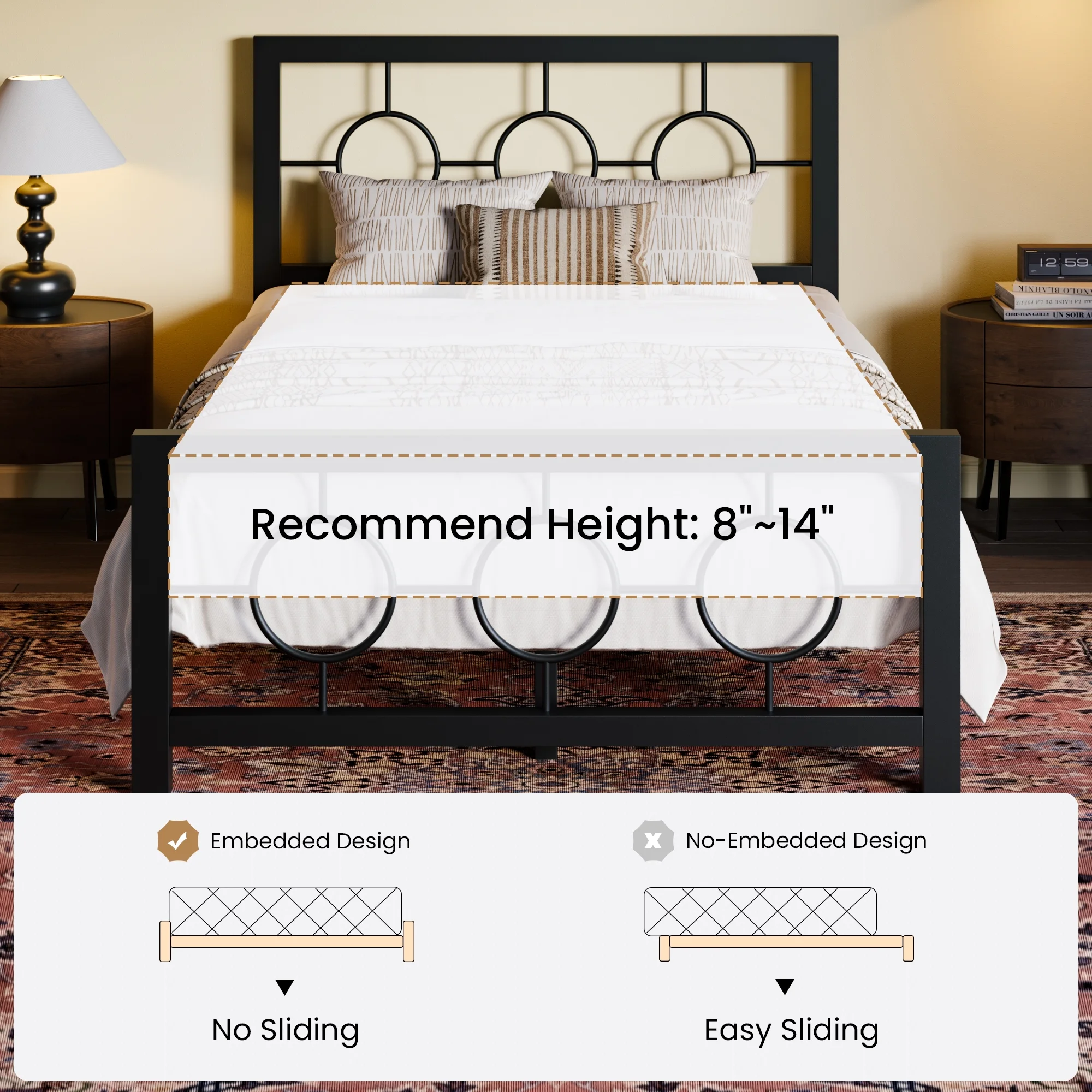 Sha Cerlin Black Twin Size Metal Platform Bed Frame with Vintage Circular Headboard & Footboard, Adult