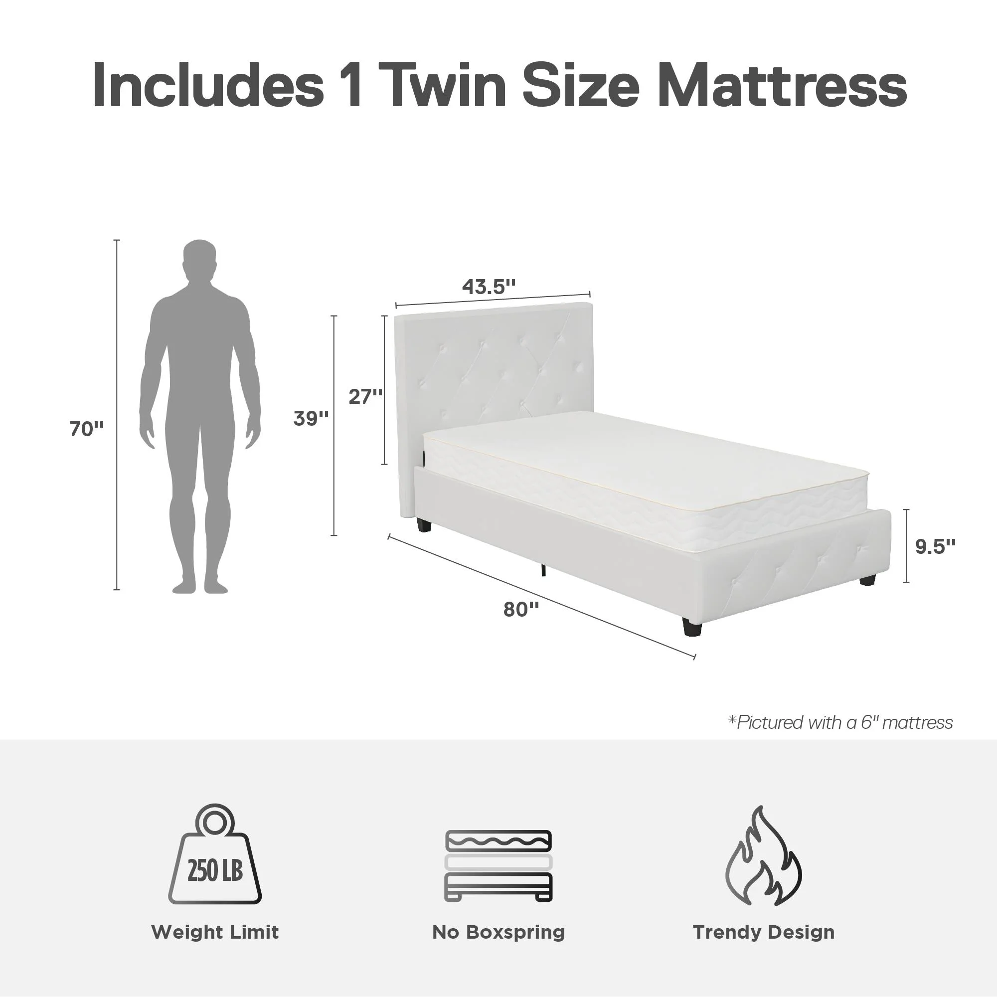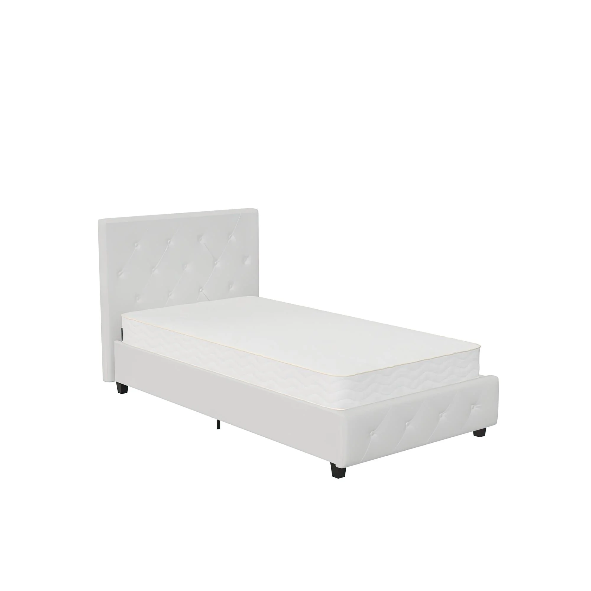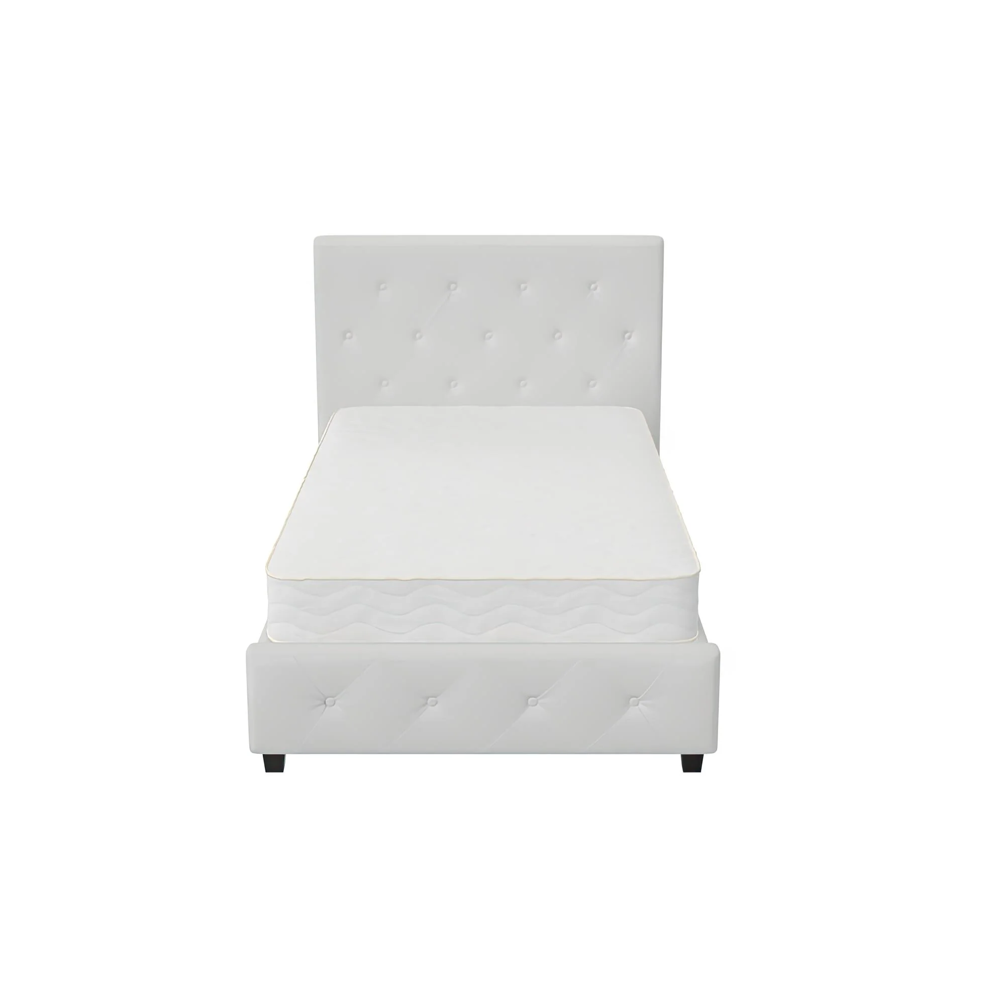 DHP Dakota Upholstered Bed with Signature Sleep Solace 6-Inch Innerspring Mattress, Twin, White