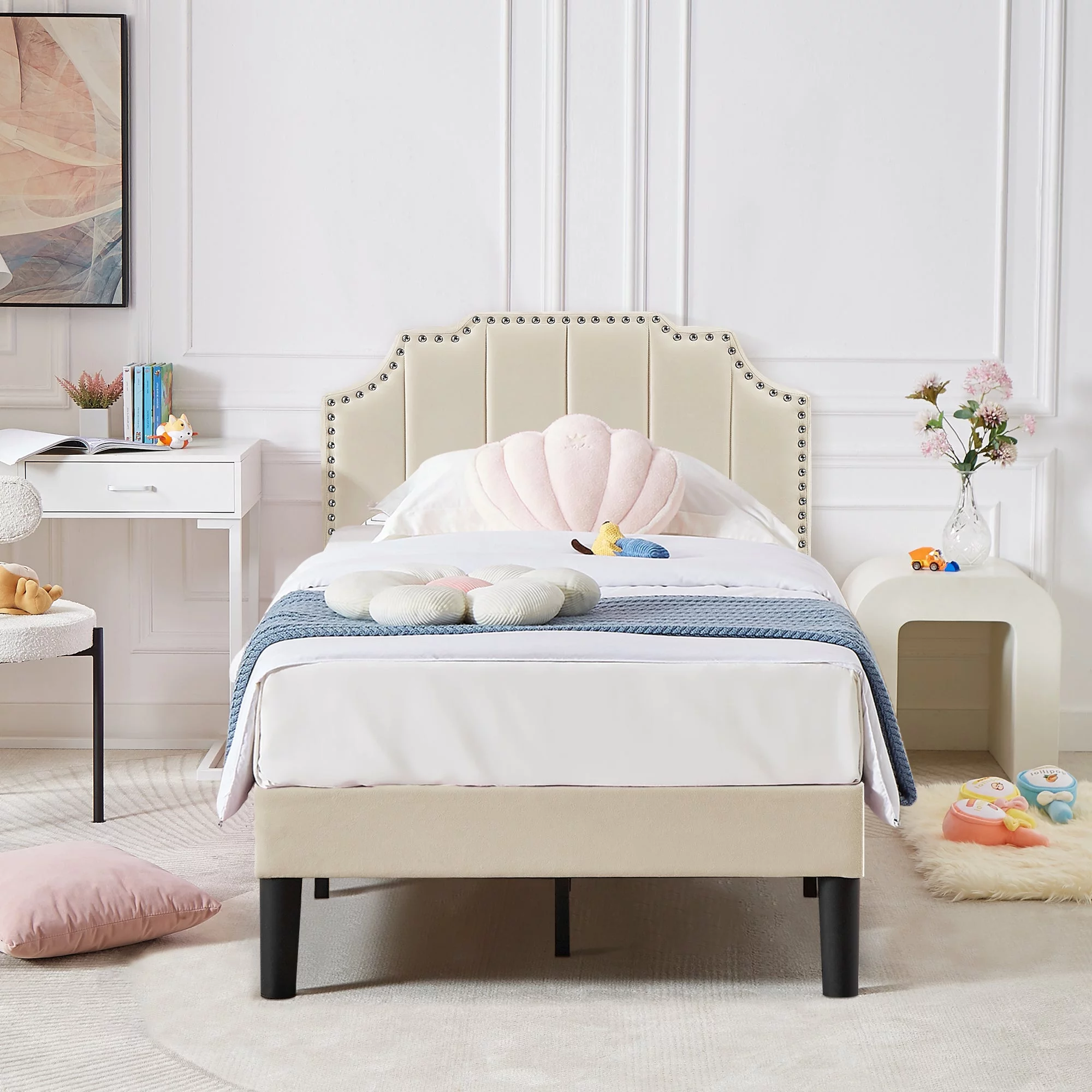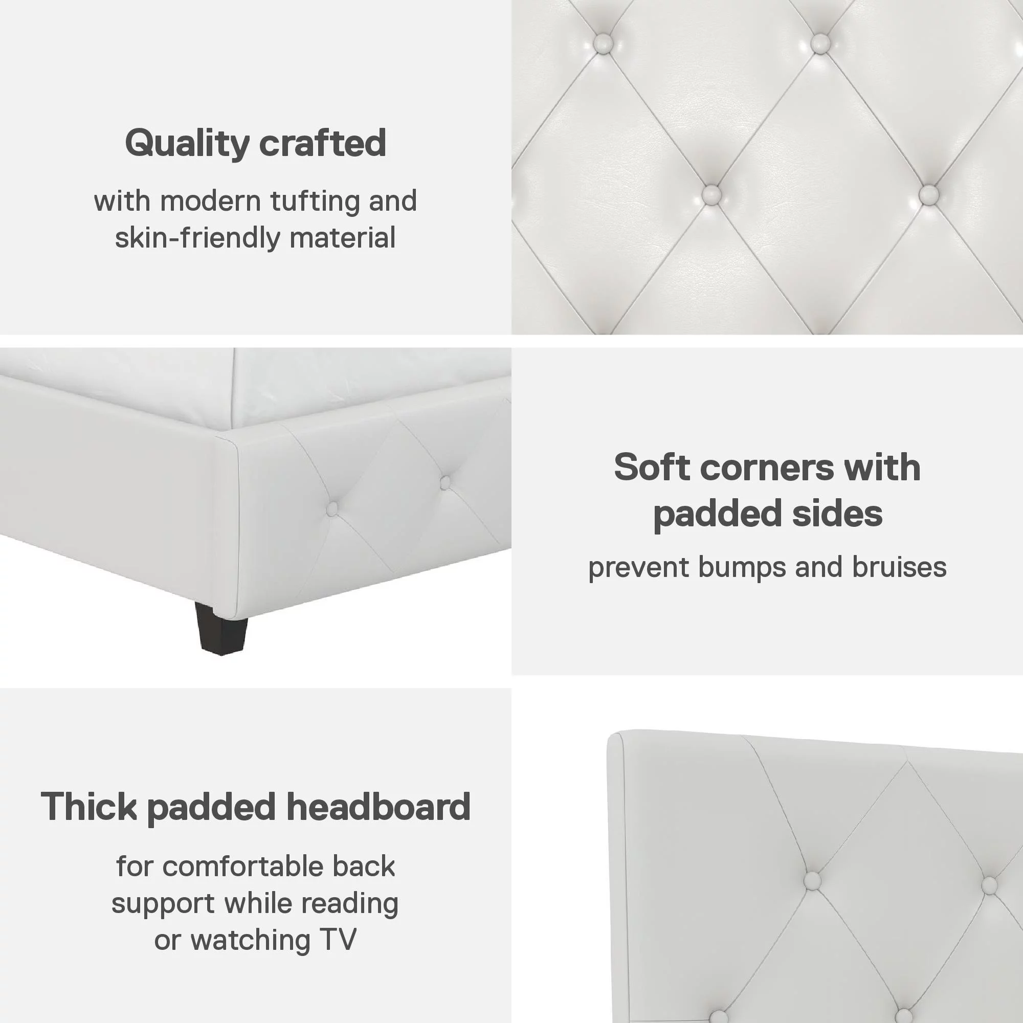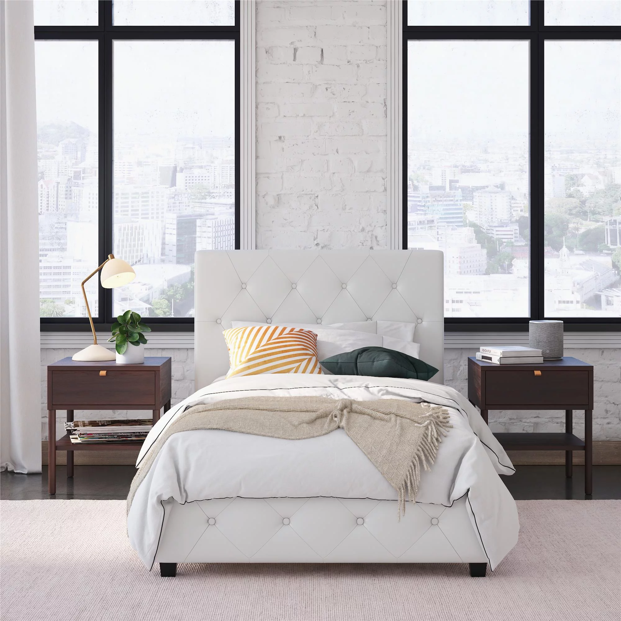DHP Dakota Upholstered Bed with Signature Sleep Solace 6-Inch Innerspring Mattress, Twin, White