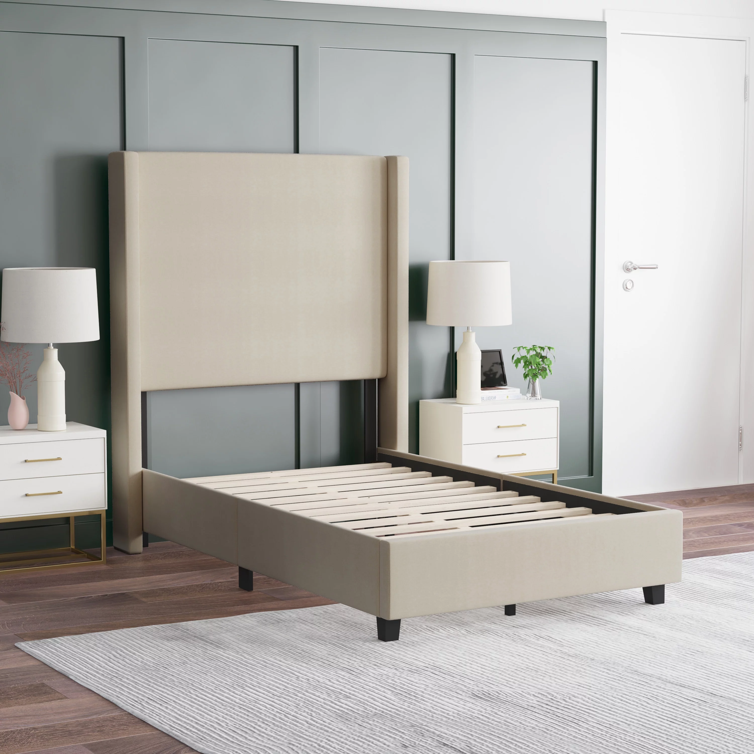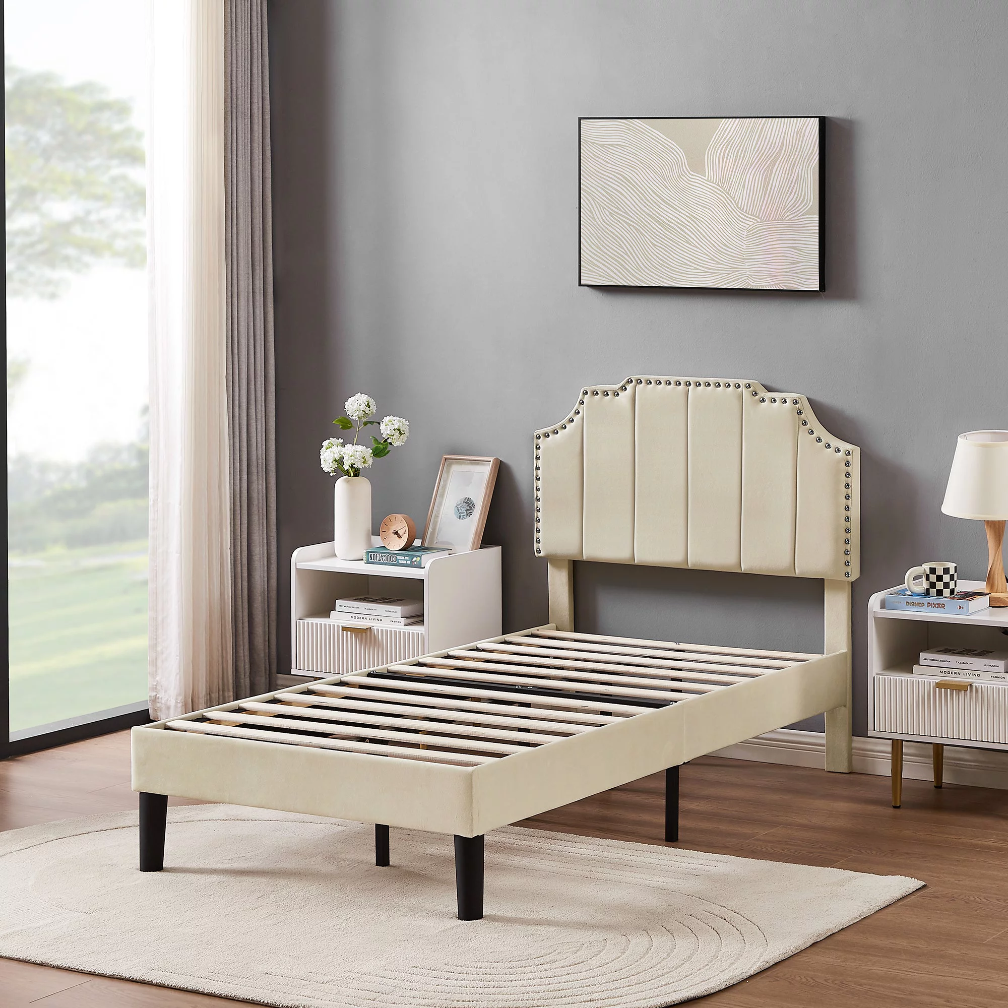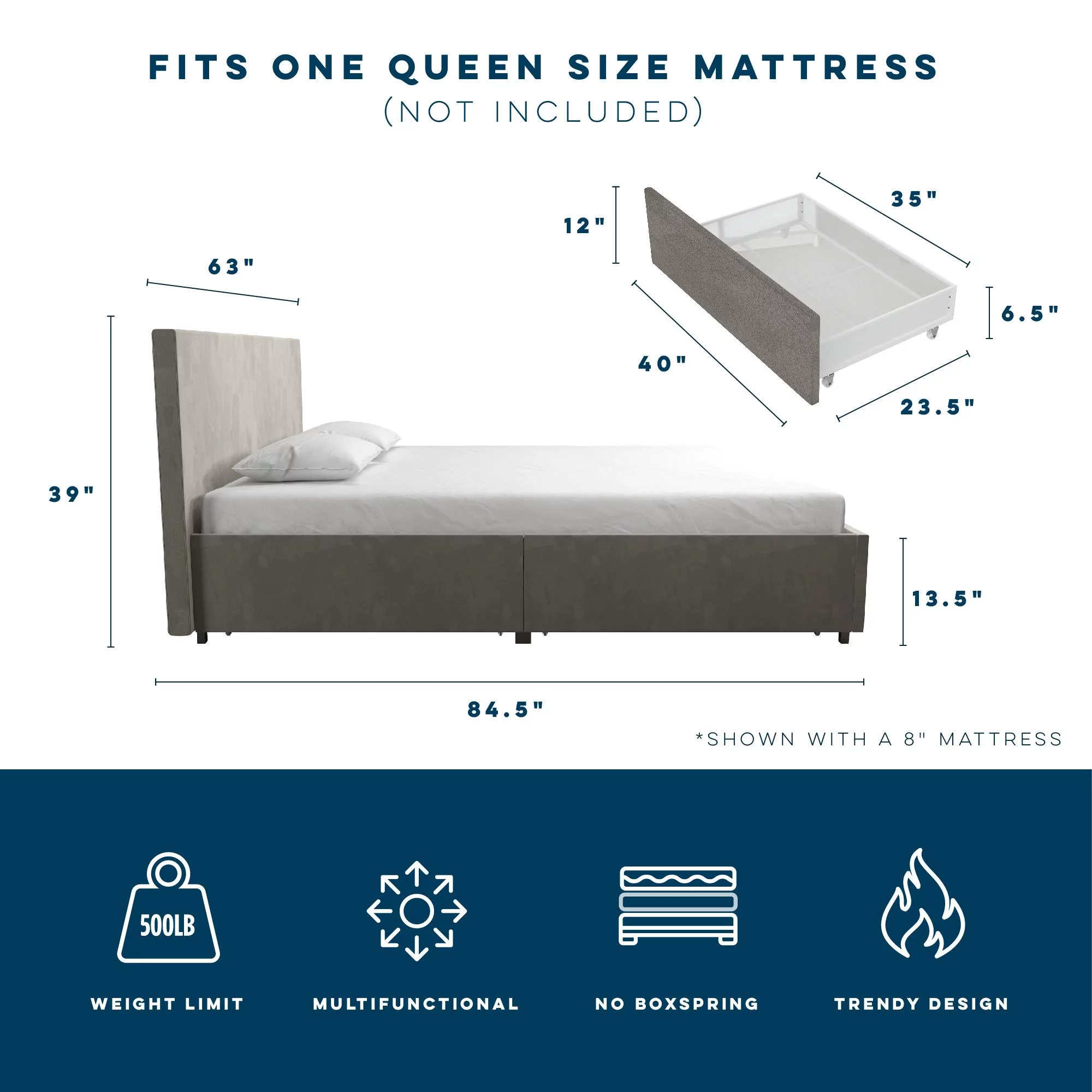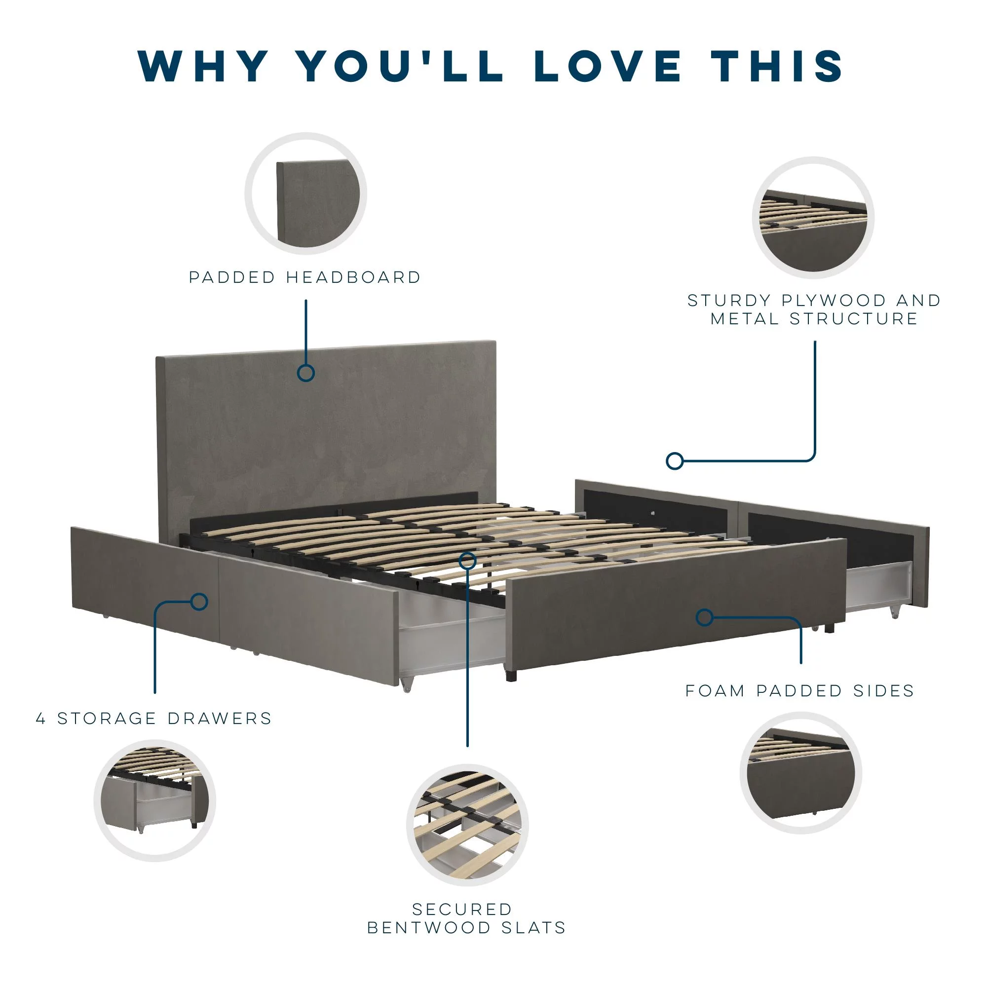 Novogratz Kelly Upholstered Storage Bed Frame, Queen, Light Gray Velvet