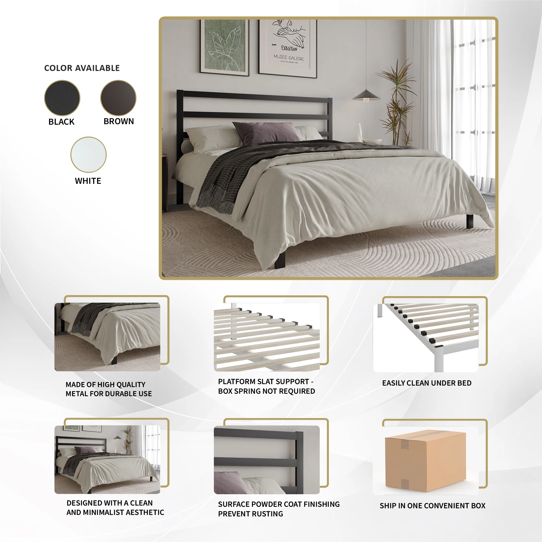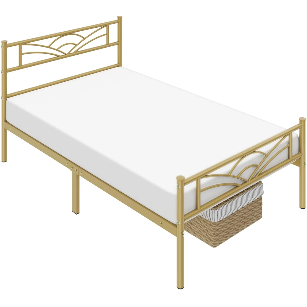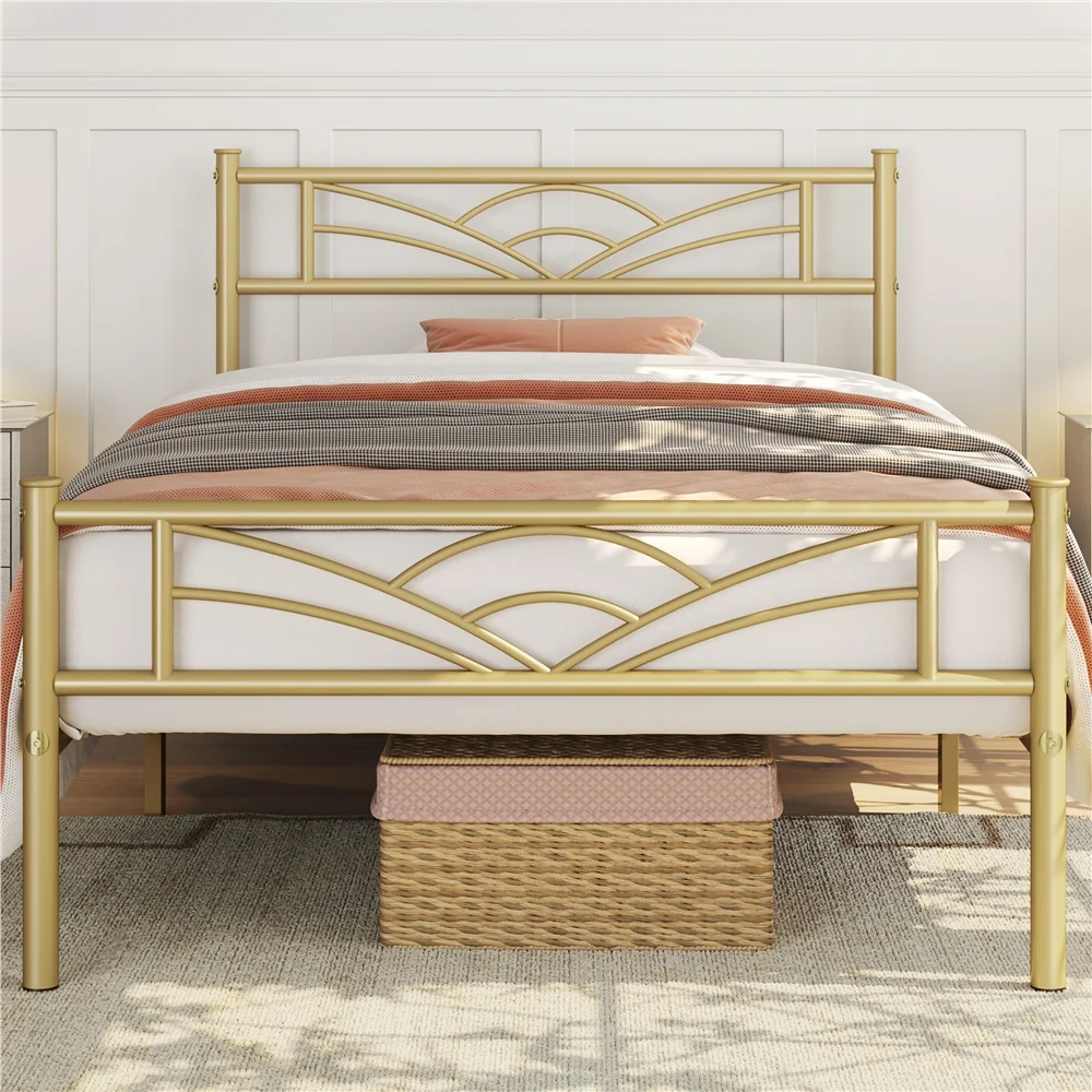 Easyfashion Cloud-Inspired Design Metal Platform Bed, Twin, Antique Gold