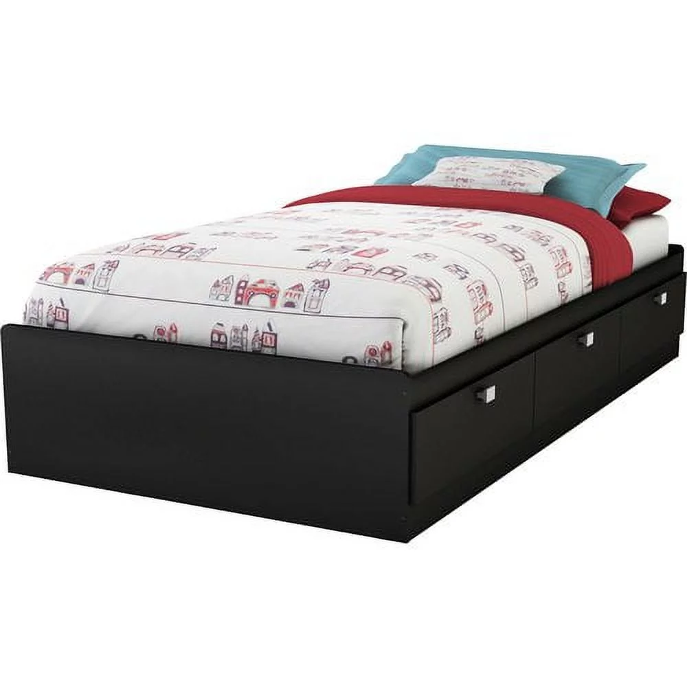 South Shore Summertime Twin Storage Bed 39'' with 3 Drawers, White and Maple