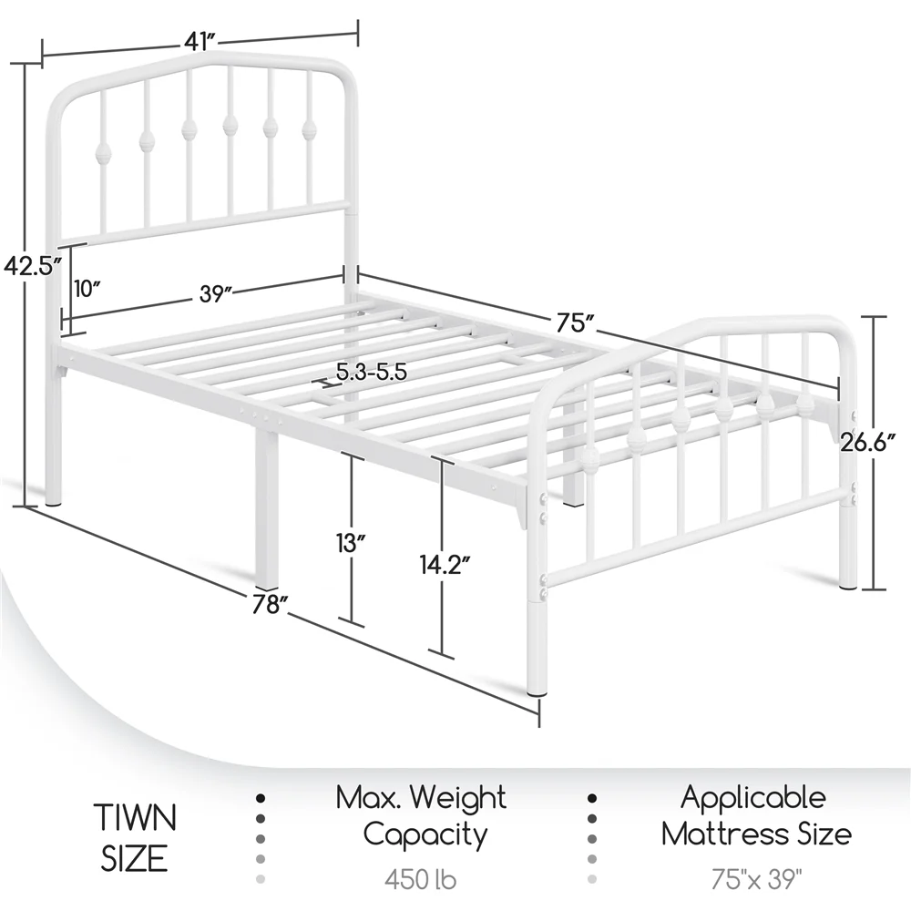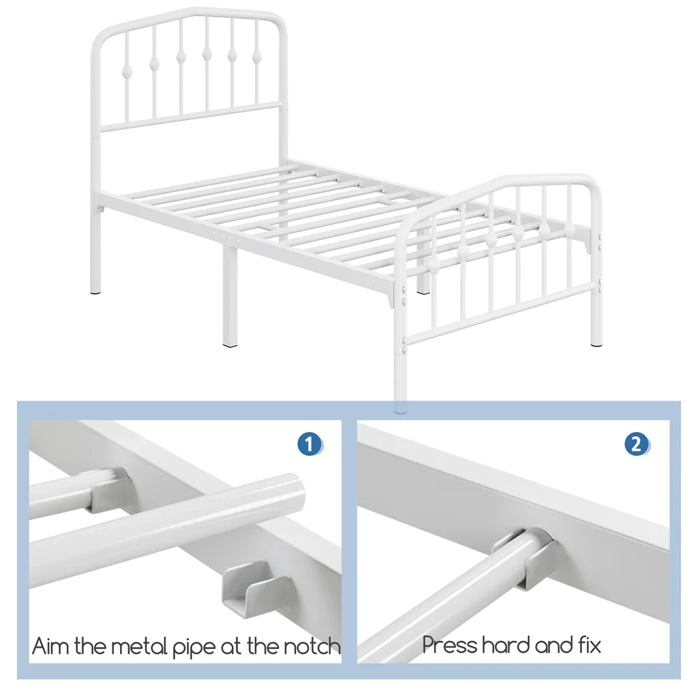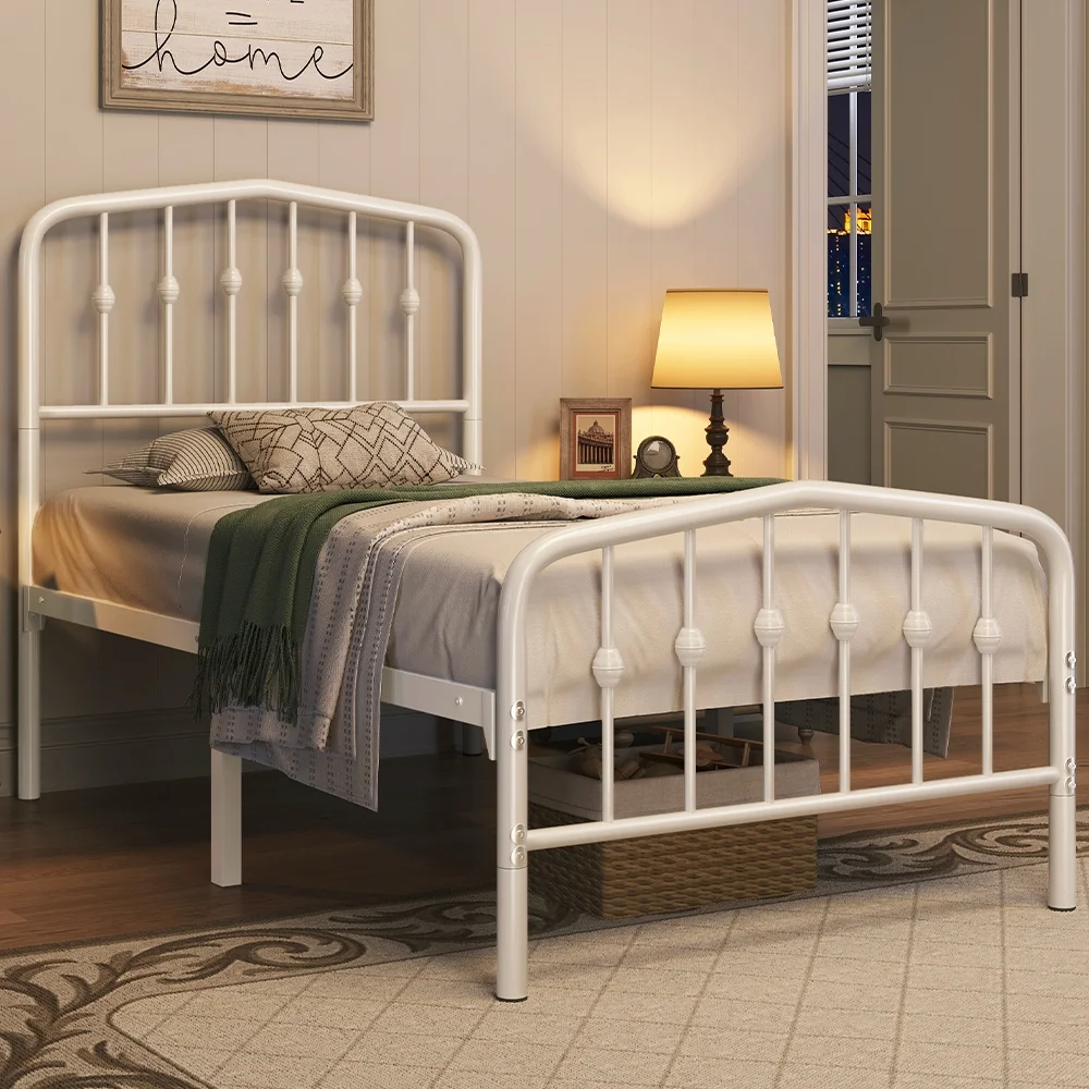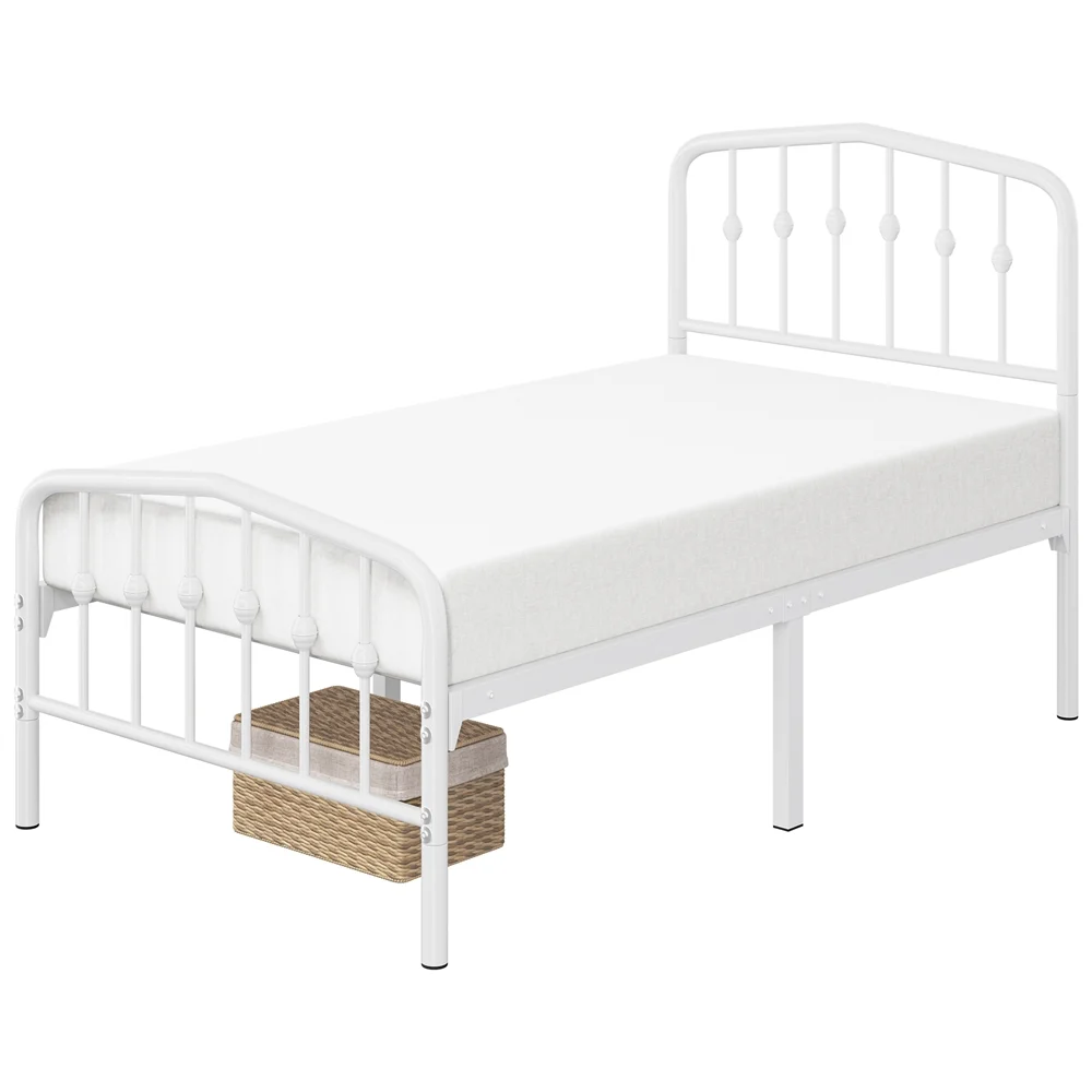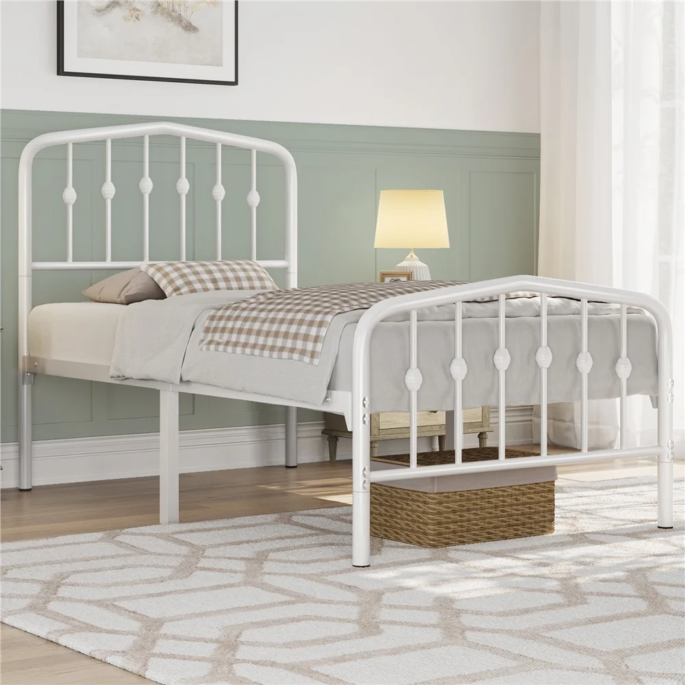 Easyfashion Modern Metal Platform Bed with Arched Headboard and Footboard,Twin,White
