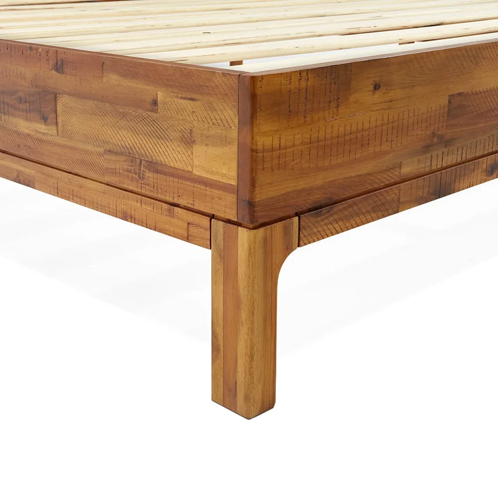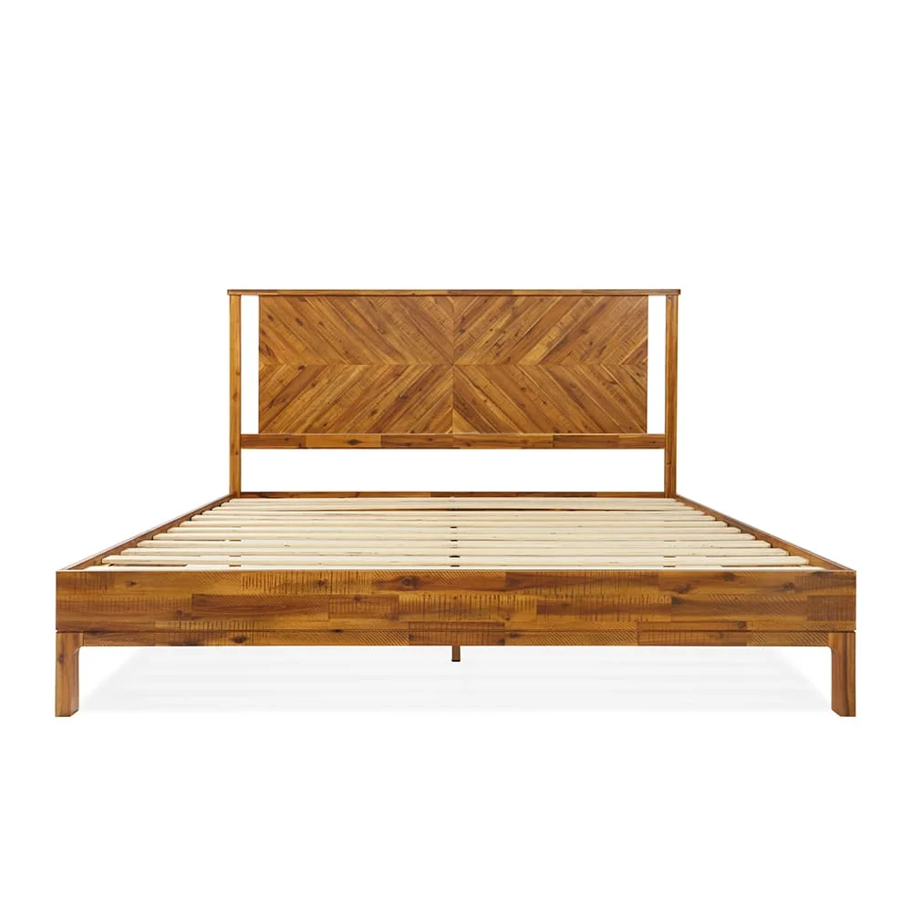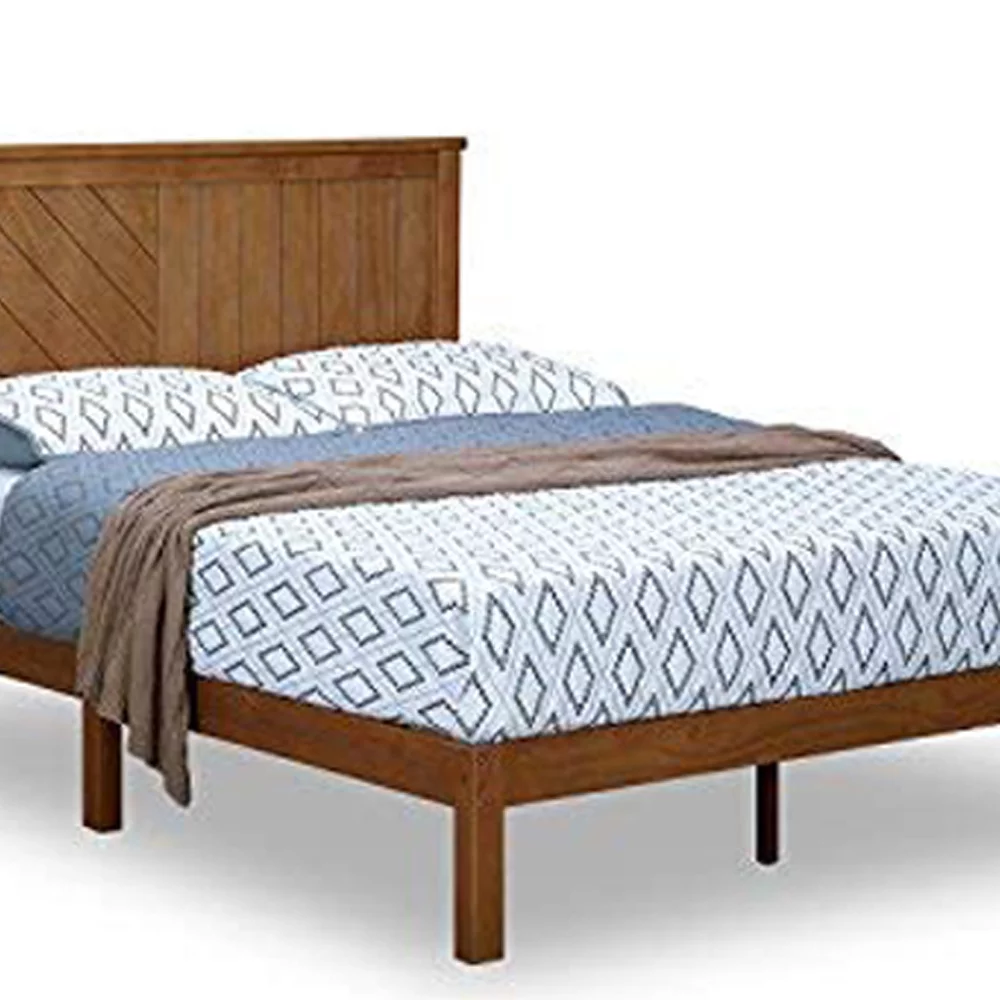BME Christiana 49" King Bed Frames with Headboard, Rustic, Solid Wood, Bright Brown