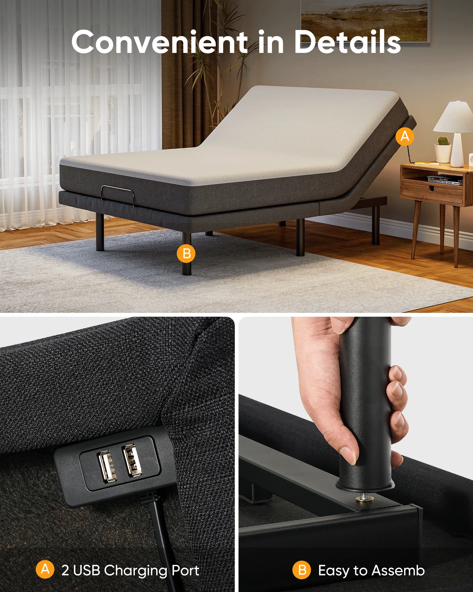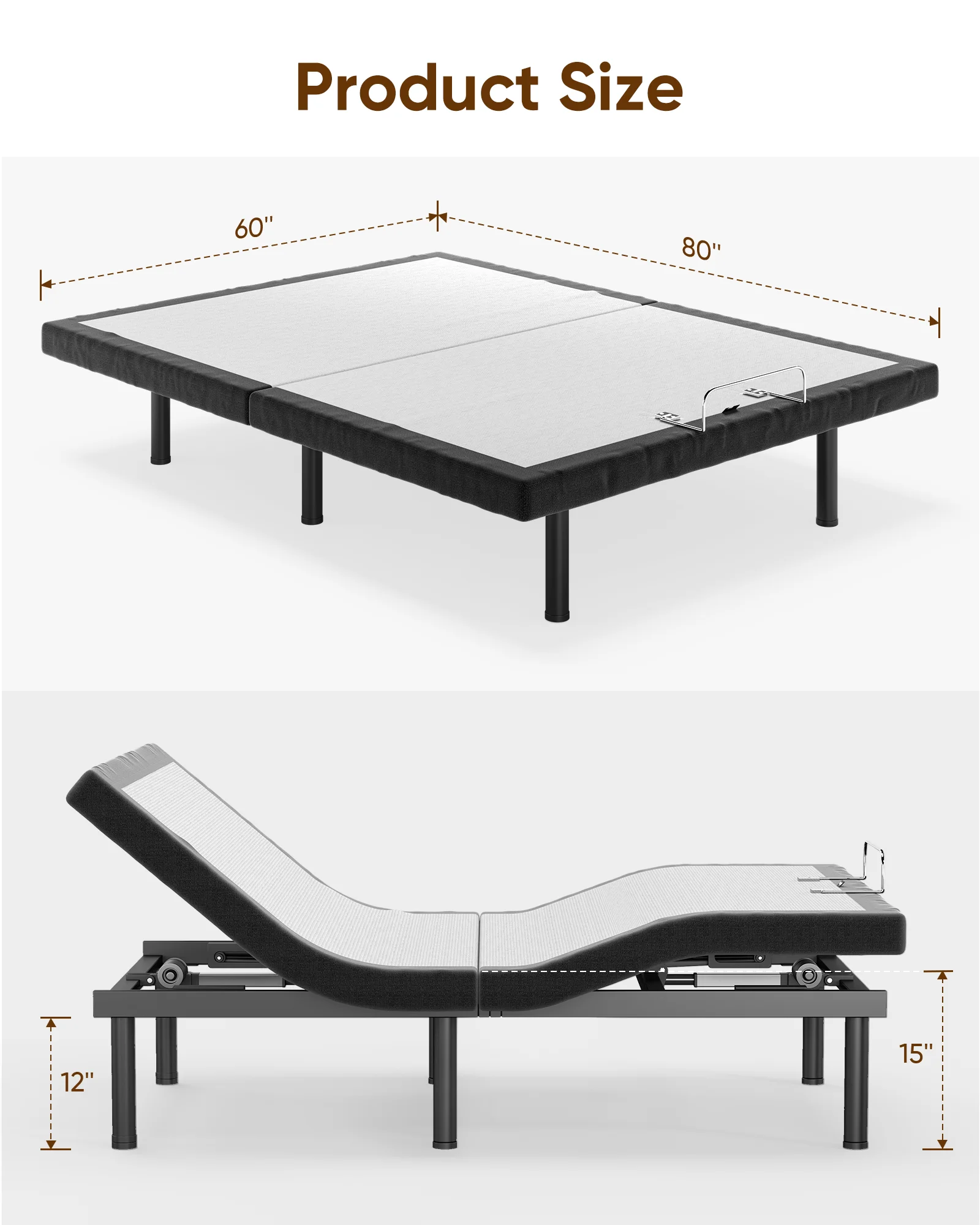 Furgle Queen Size Adjustable Bed Base Frame for Stress Management with Massage, Remote Control