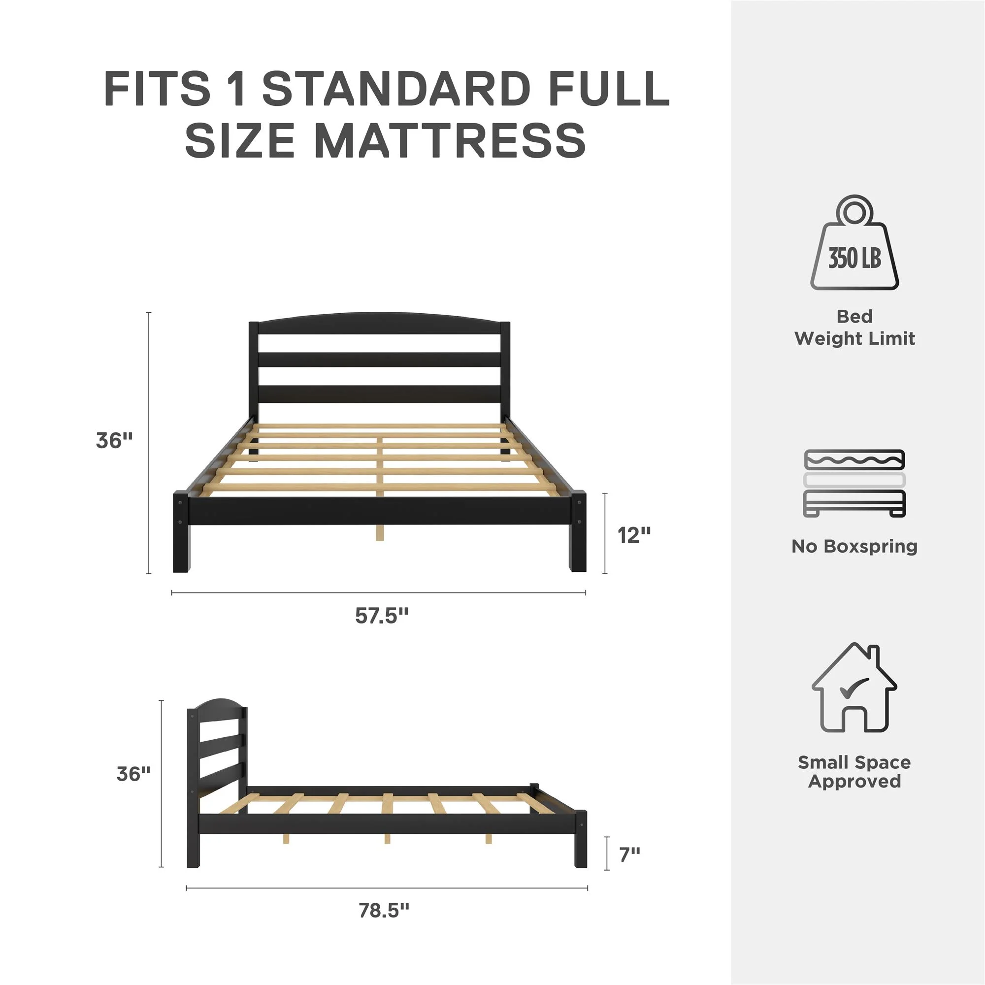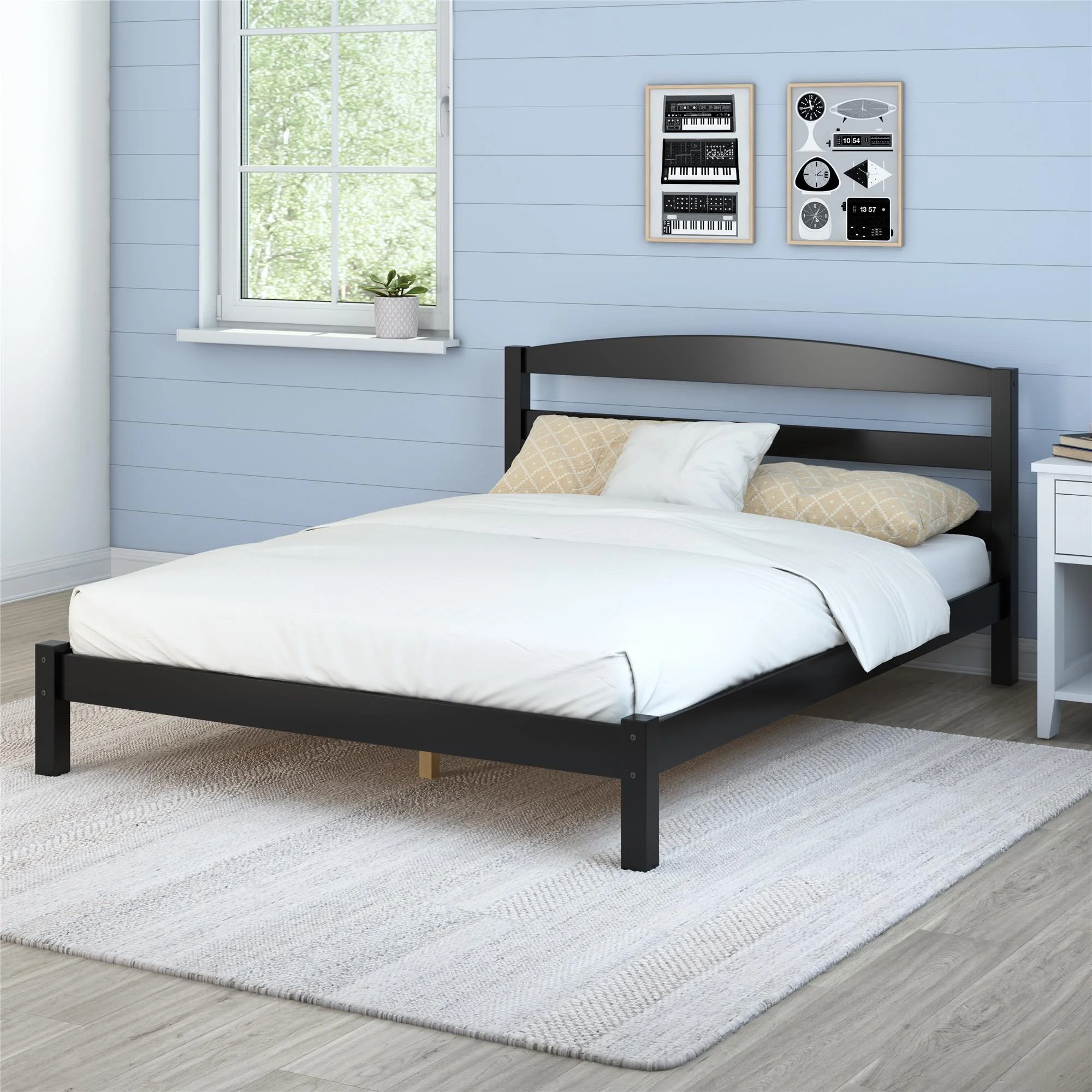Better Homes & Gardens Leighton Solid Wood Platform Bed Frame, Full, Black