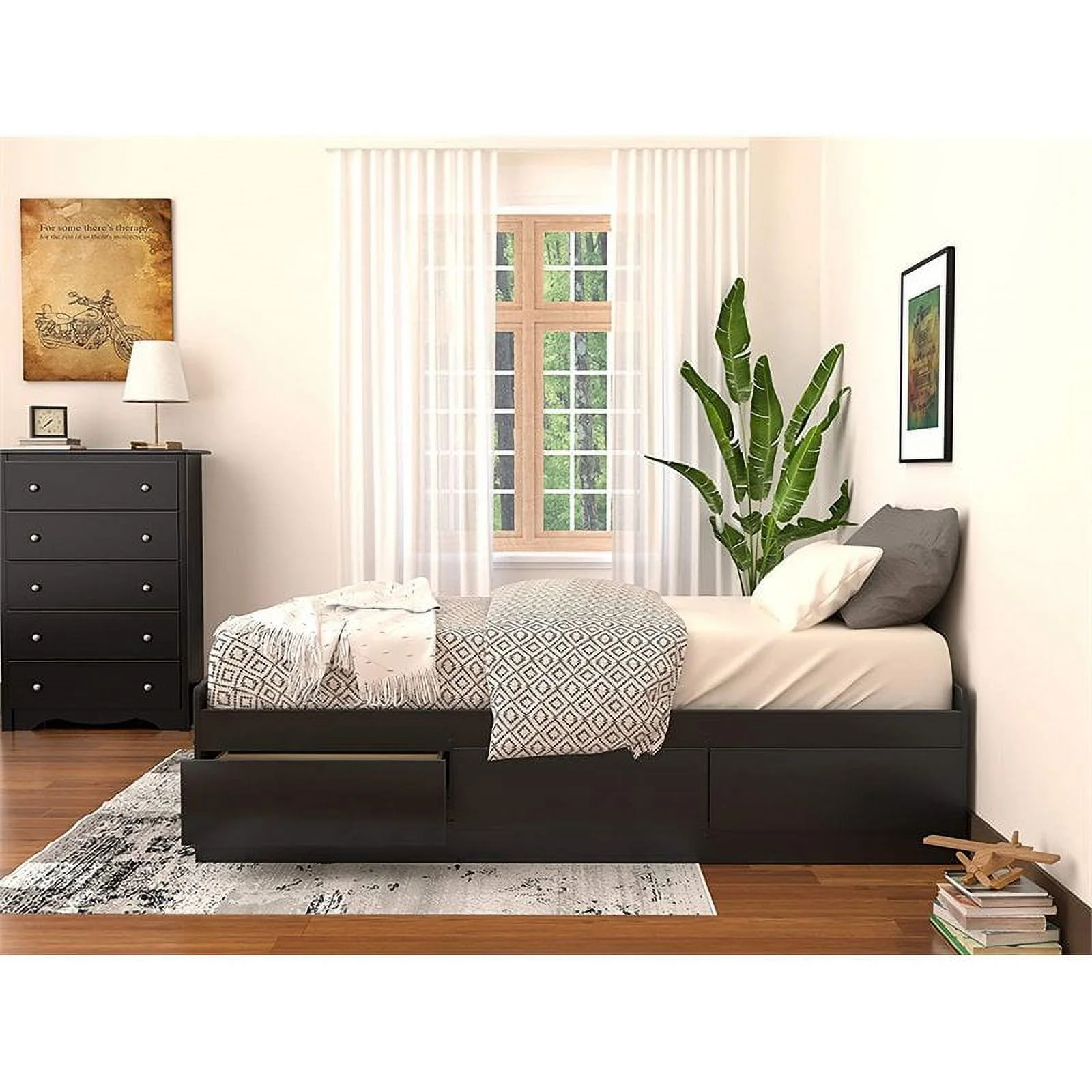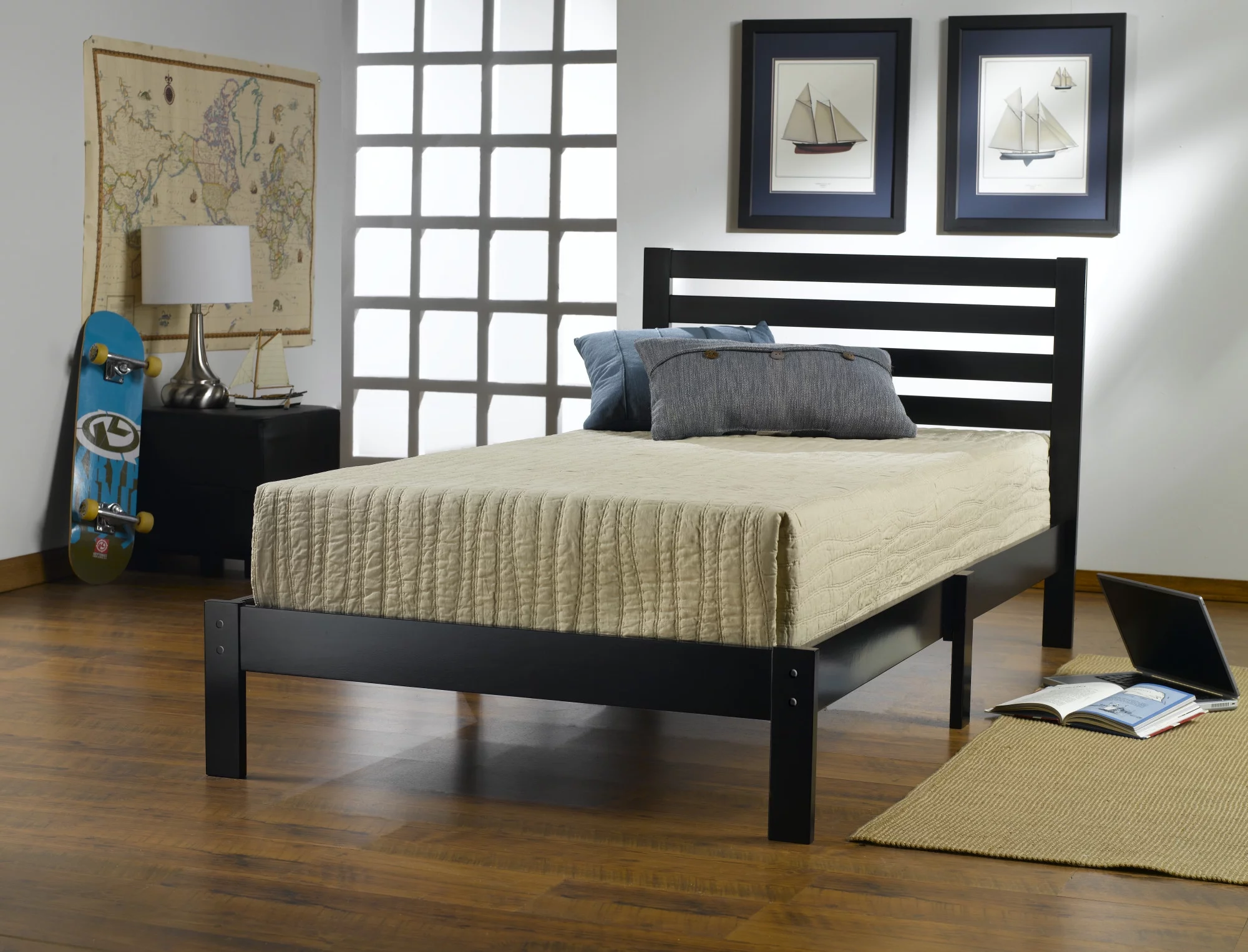 Hillsdale Furniture Aiden Low Profile Ladder Back Wood Platform Twin Bed, Black