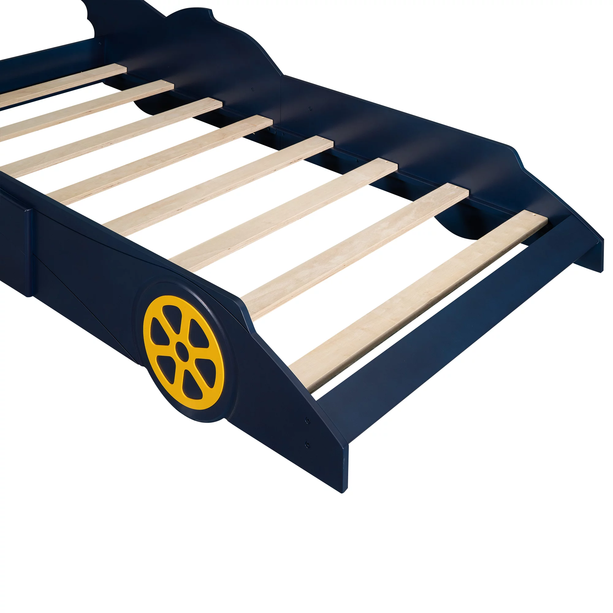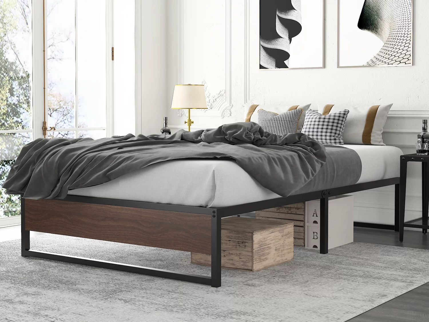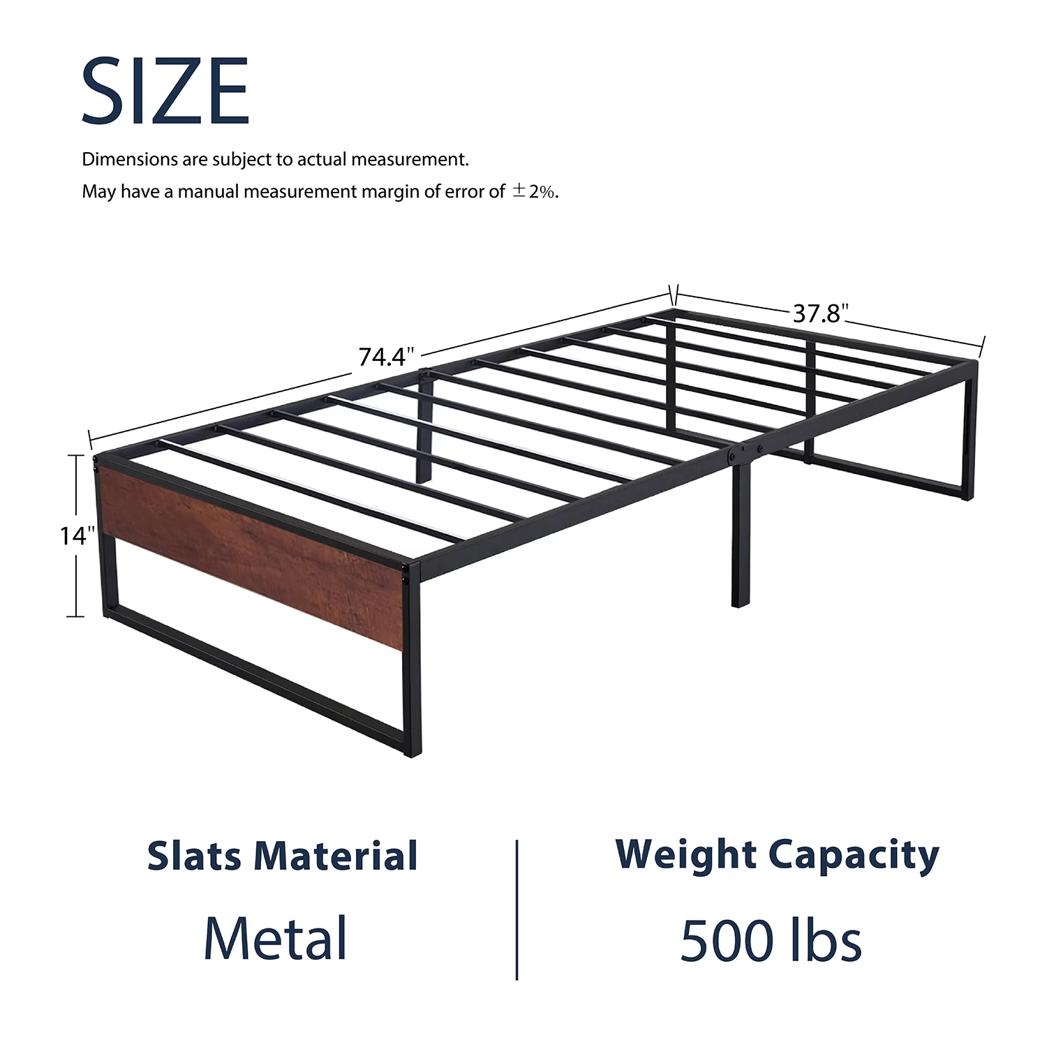 Amolife Twin Size Platform Bed Frame with Rustic Wood, Metal Slats, Black
