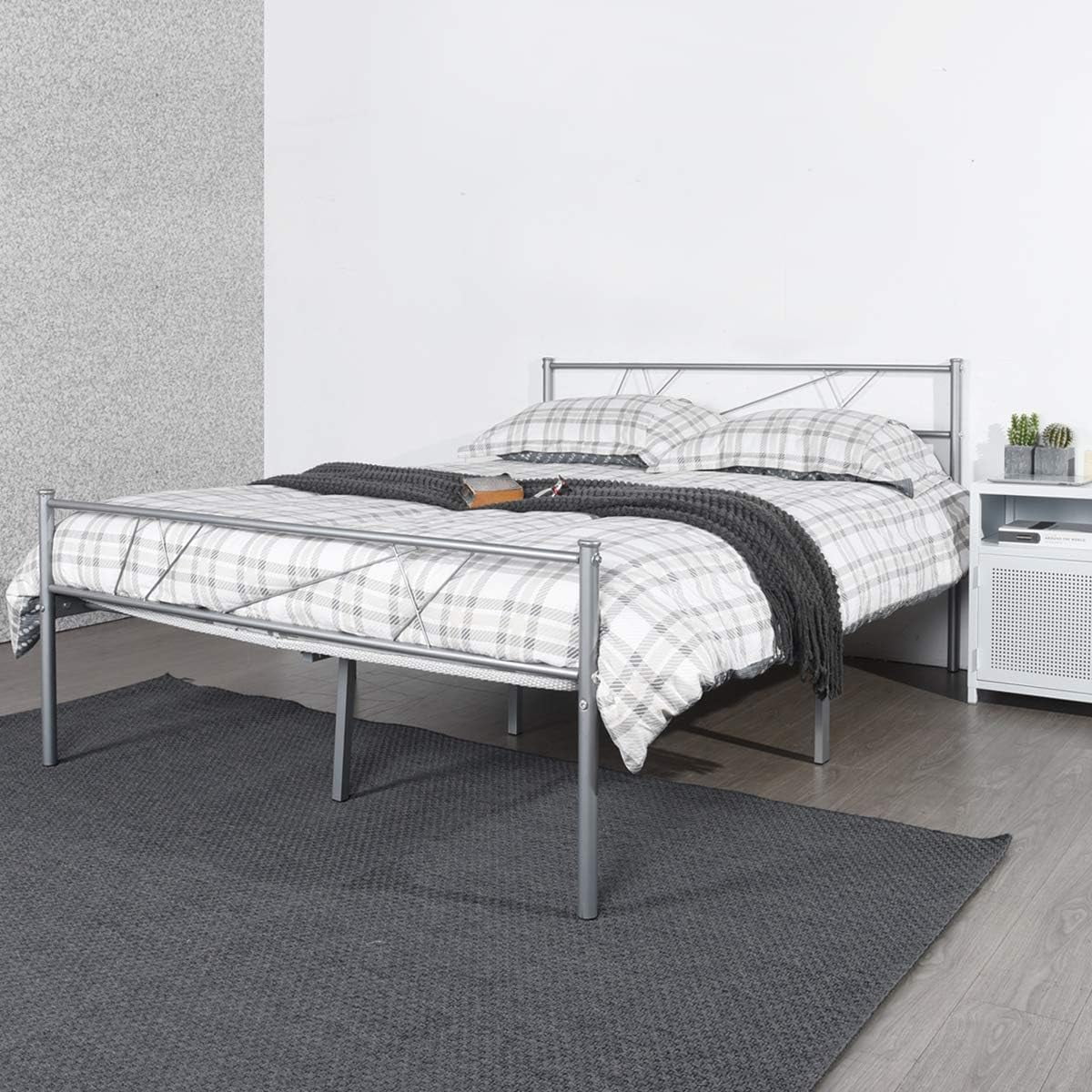 Full Size Steel Foundation Metal Bed Frame Classic Headboard Double Bed