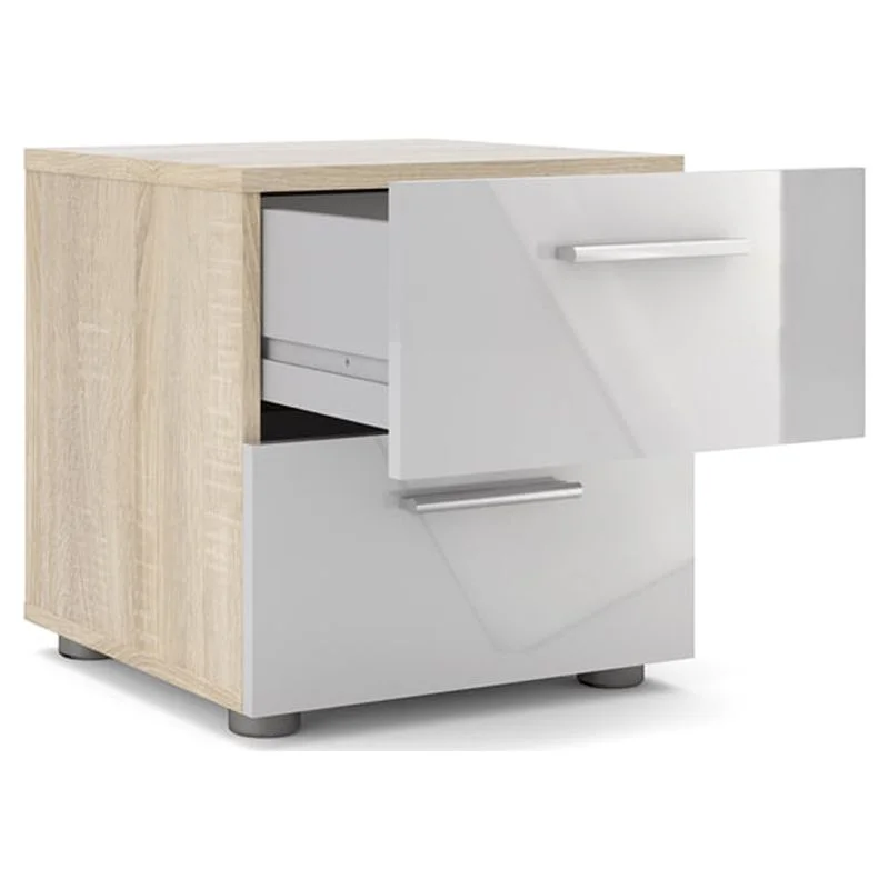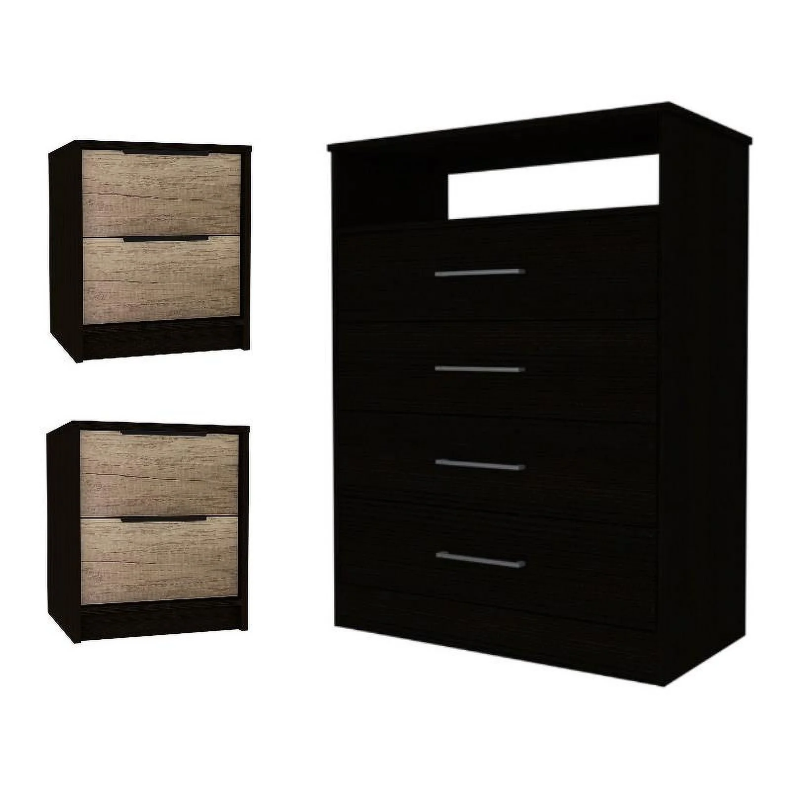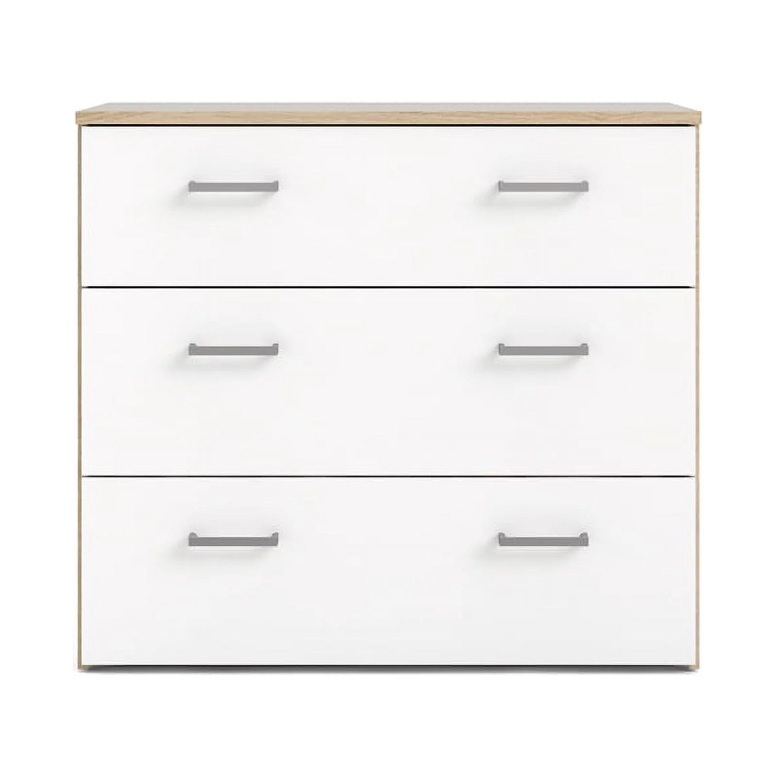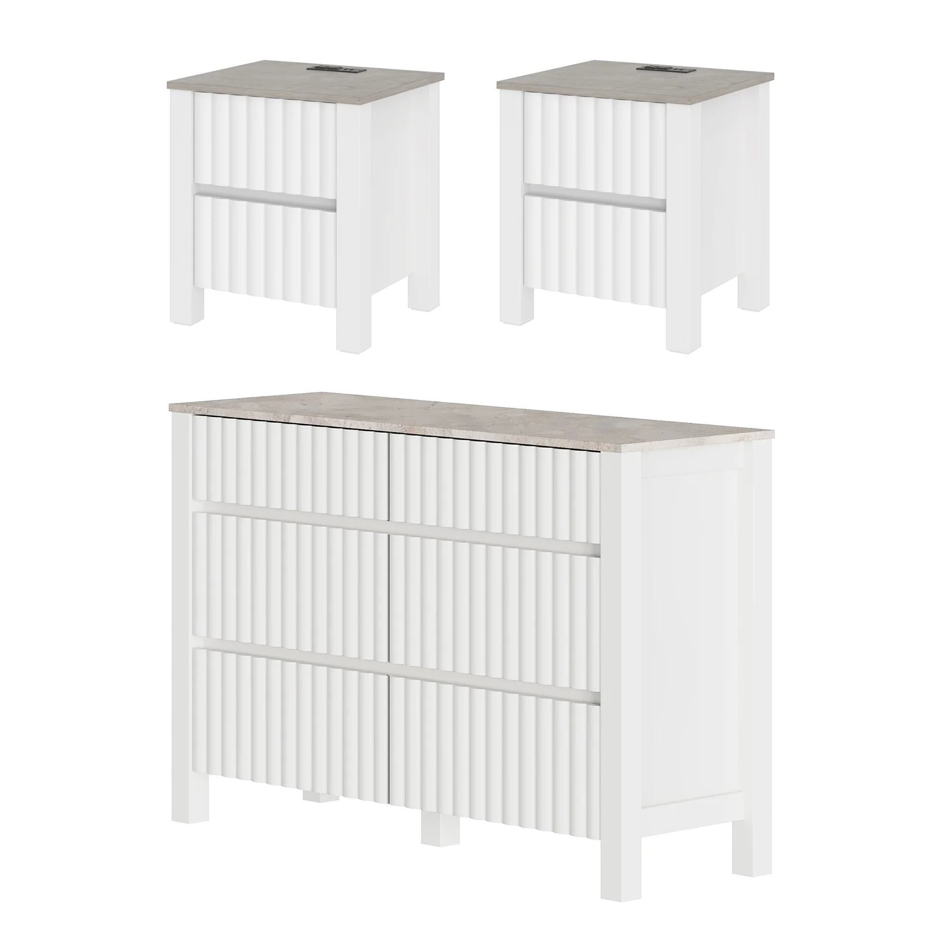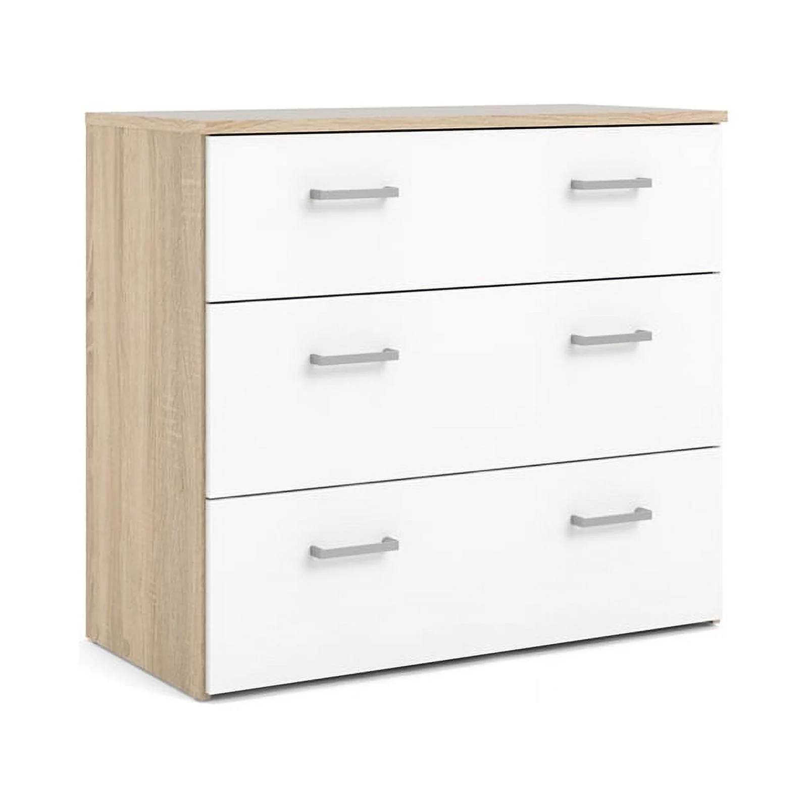 3PC Set with 1 Nightstand 1 Chest and 1 Double Dresser in Oak and White Gloss
