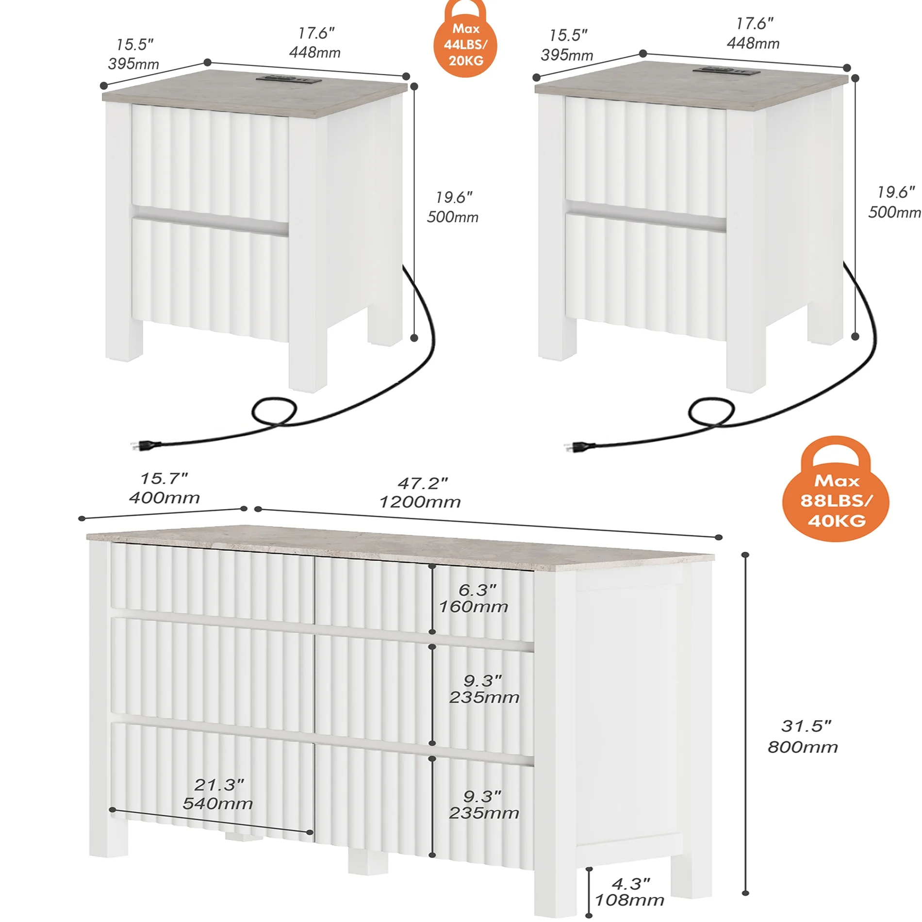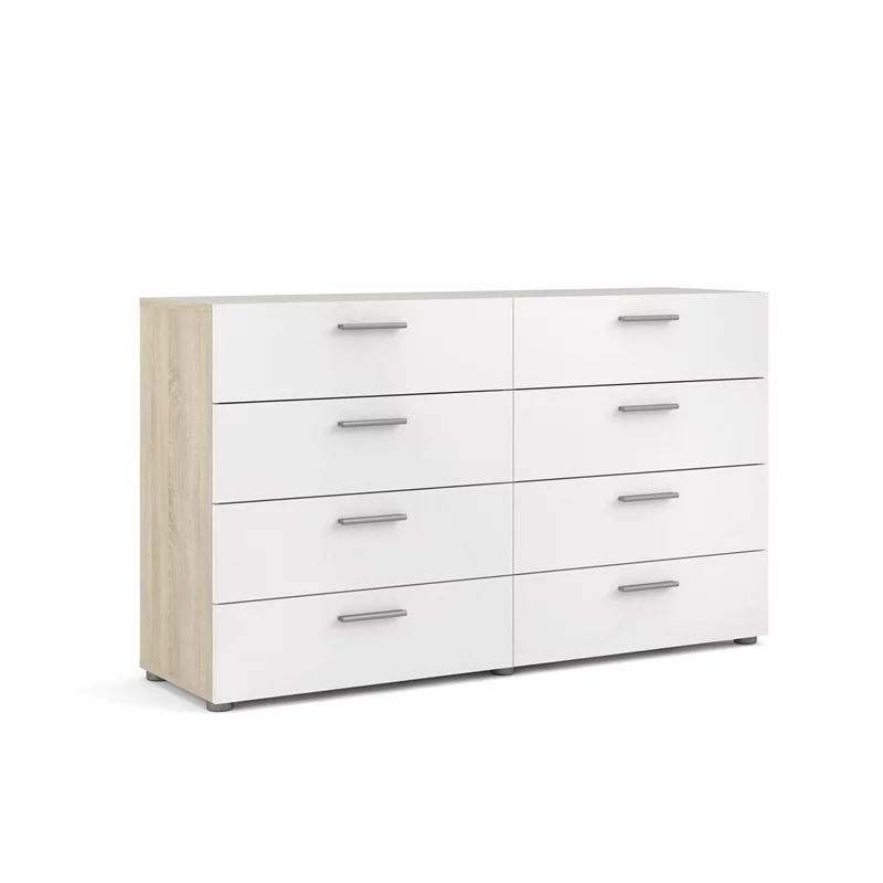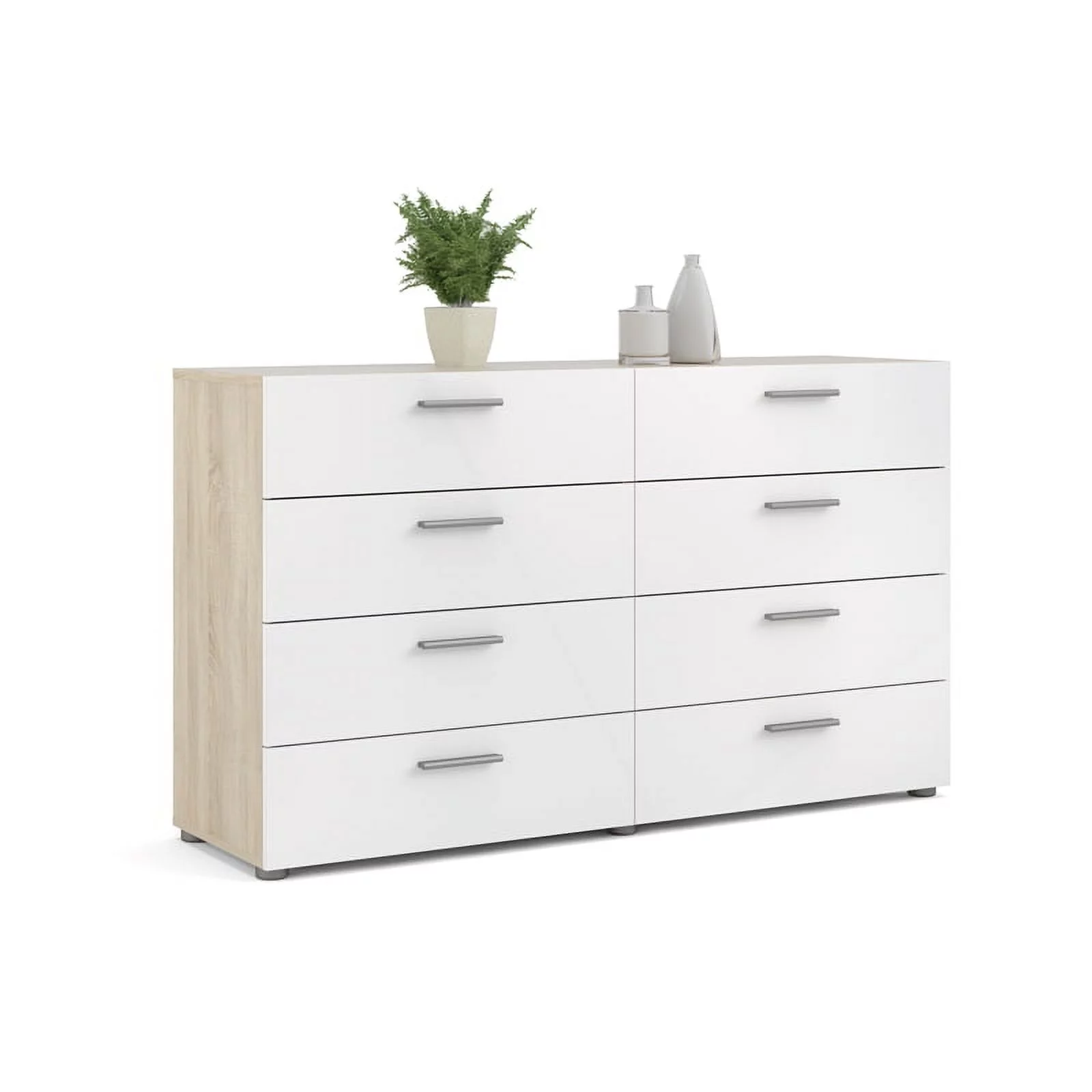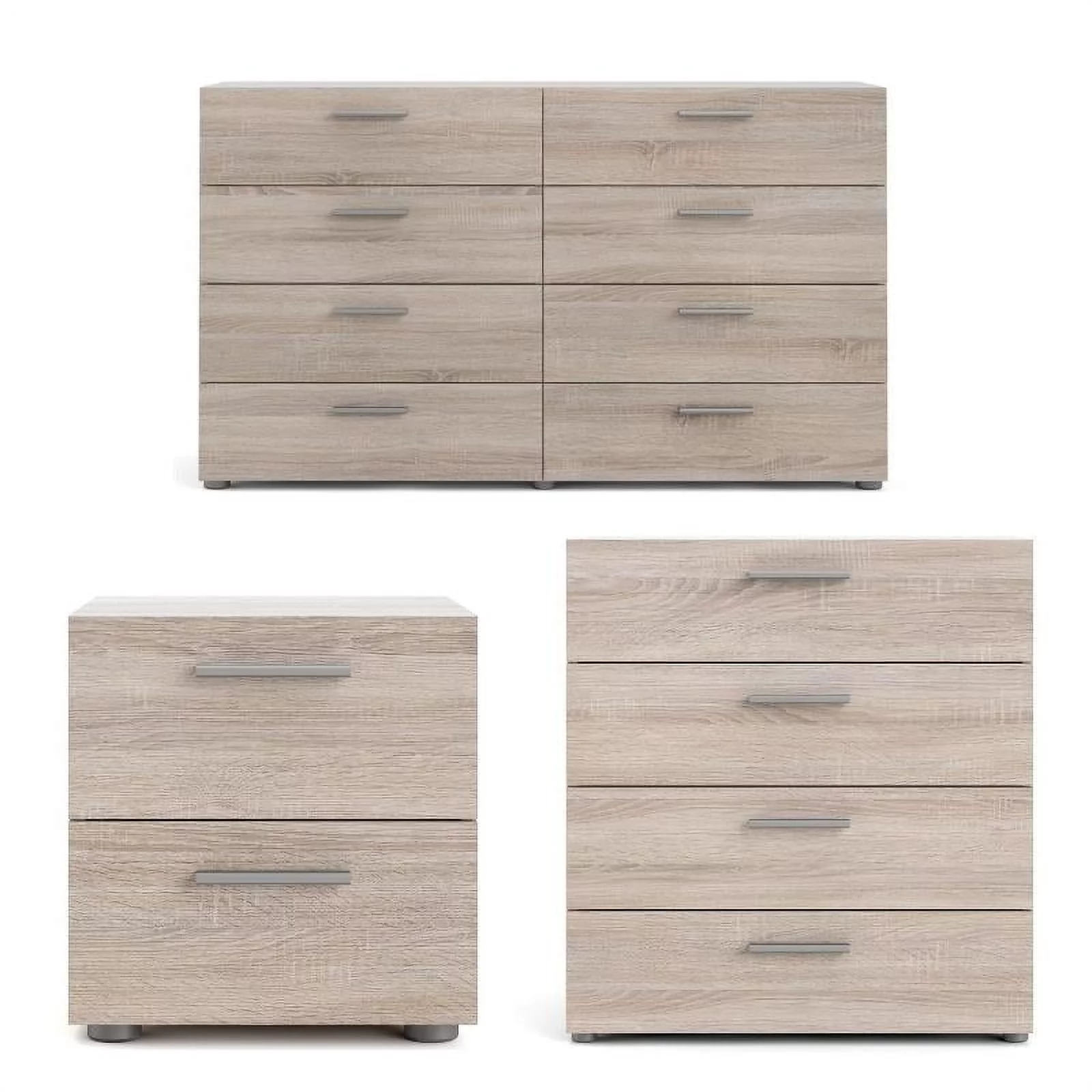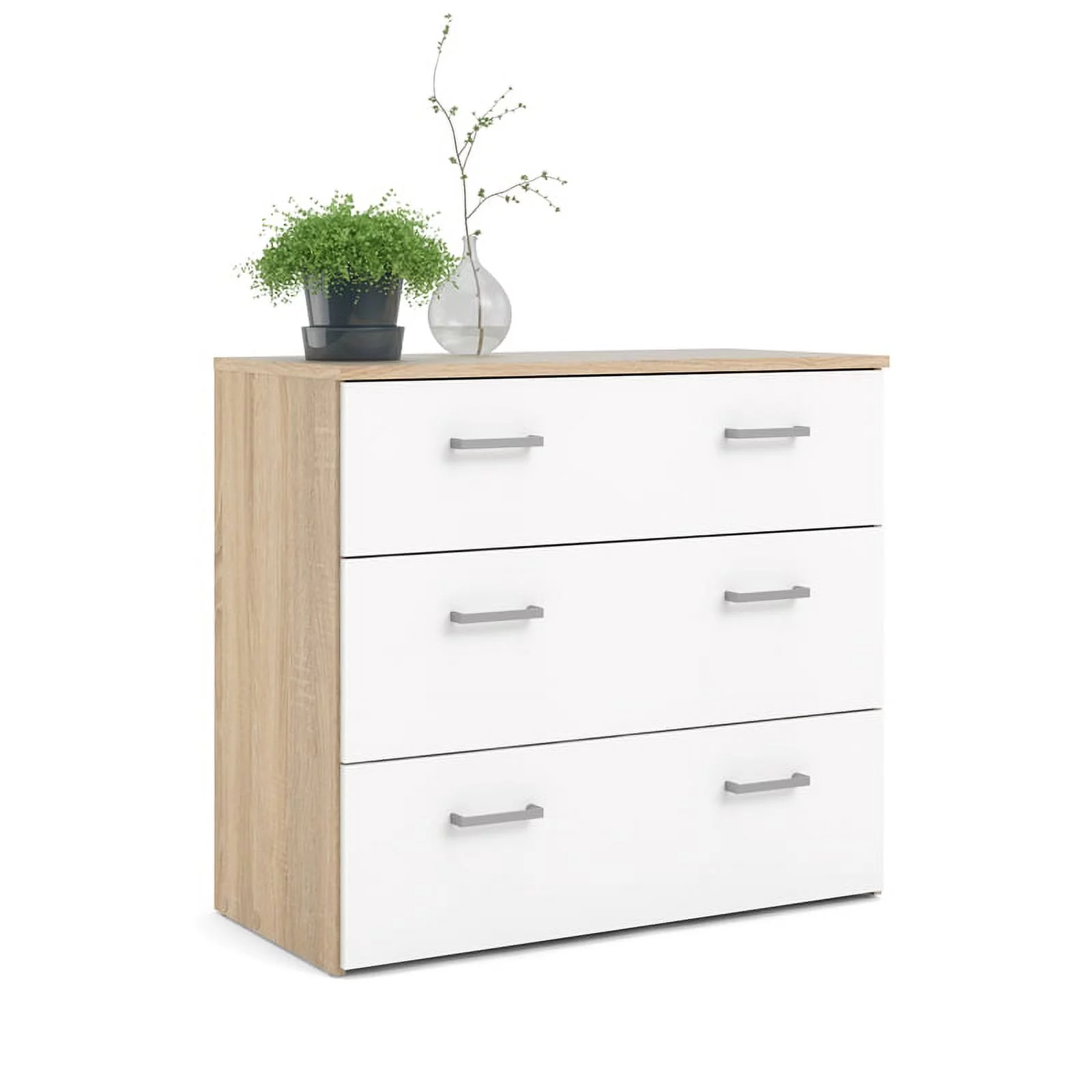 3PC Set with 1 Nightstand 1 Chest and 1 Double Dresser in Oak and White Gloss