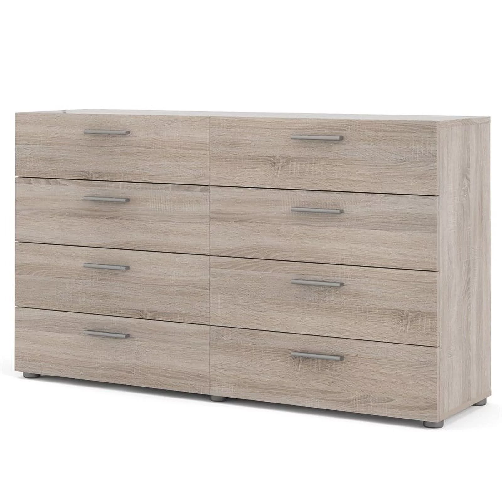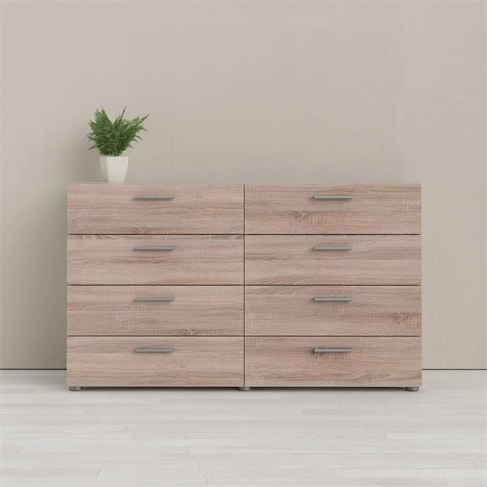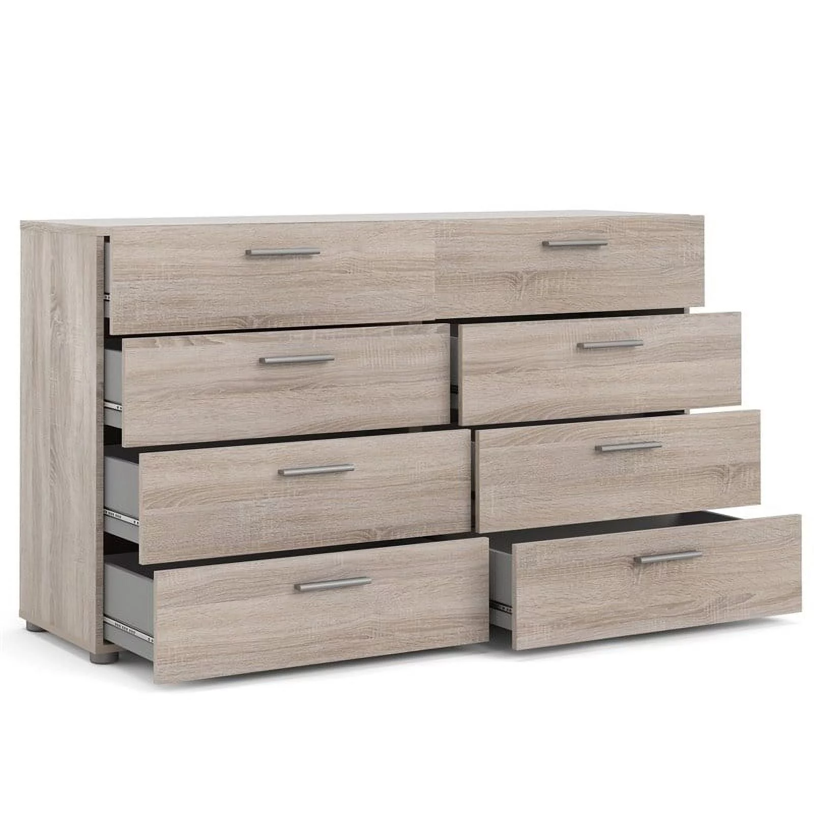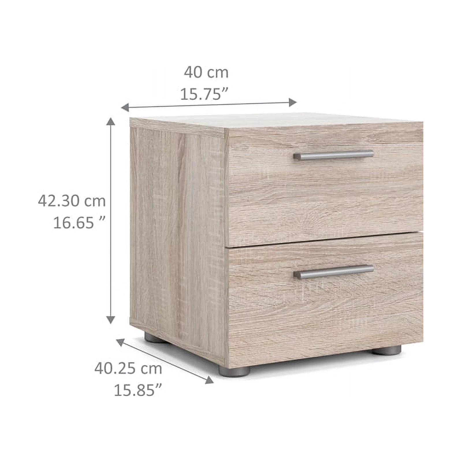 3PC Set with 1 Nightstand 1 Chest and 1 Double Dresser in Oak and White Gloss