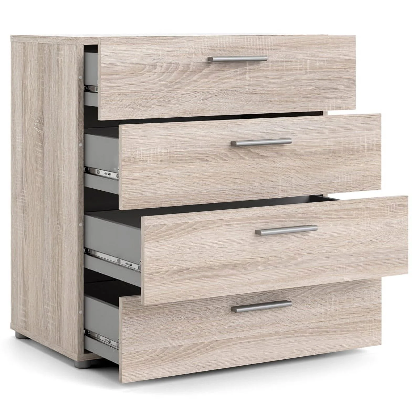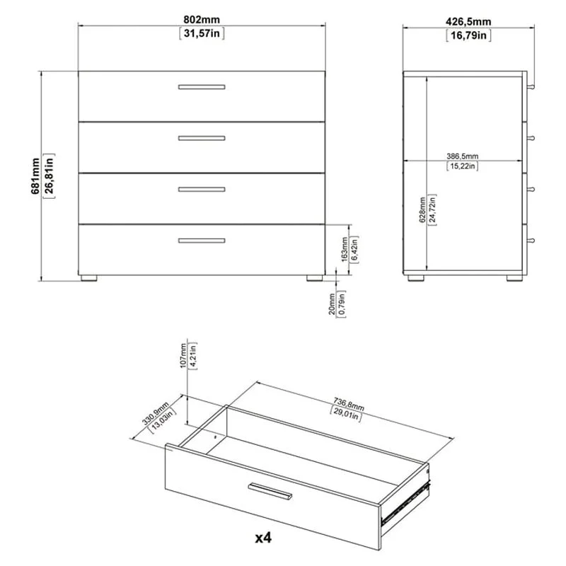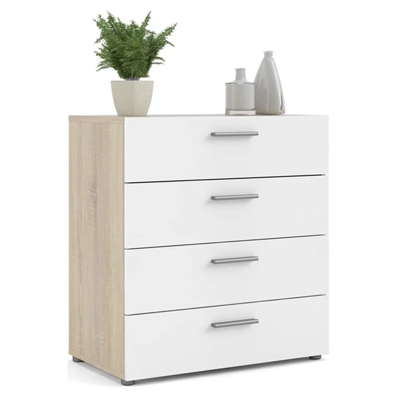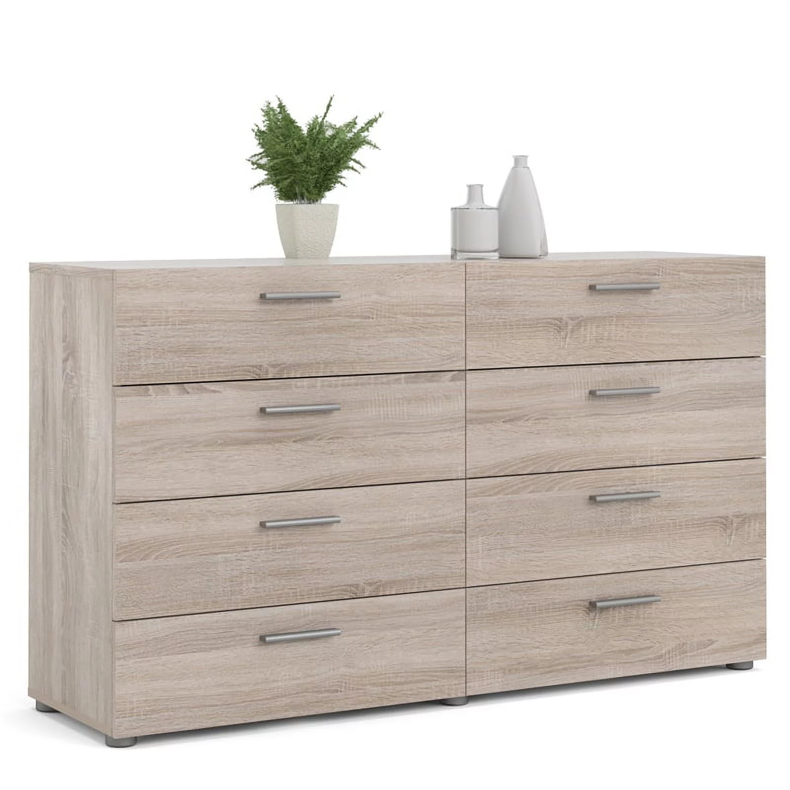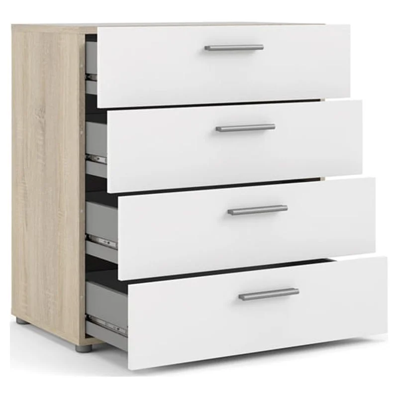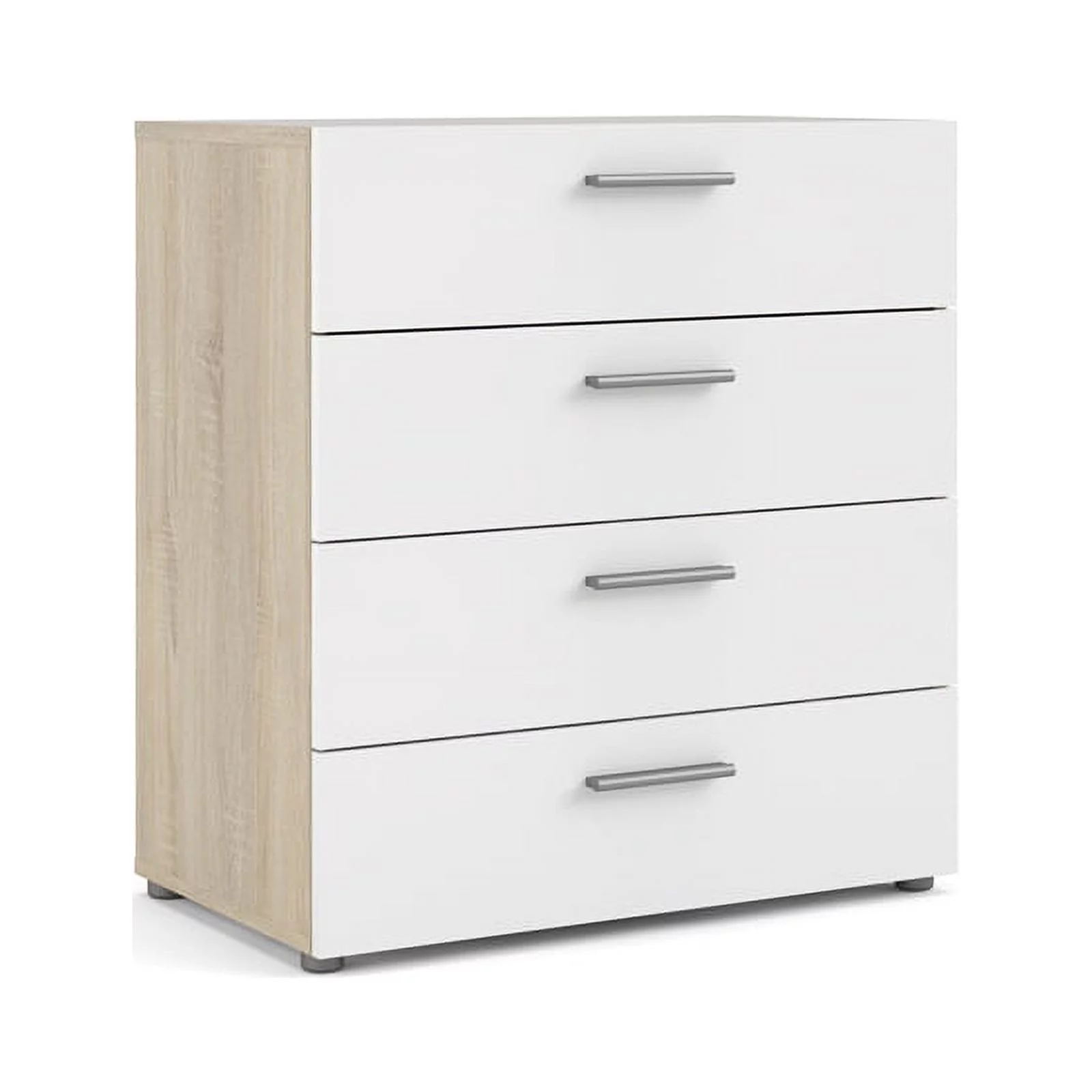 3PC Set with 1 Nightstand 1 Chest and 1 Double Dresser in Oak and White Gloss