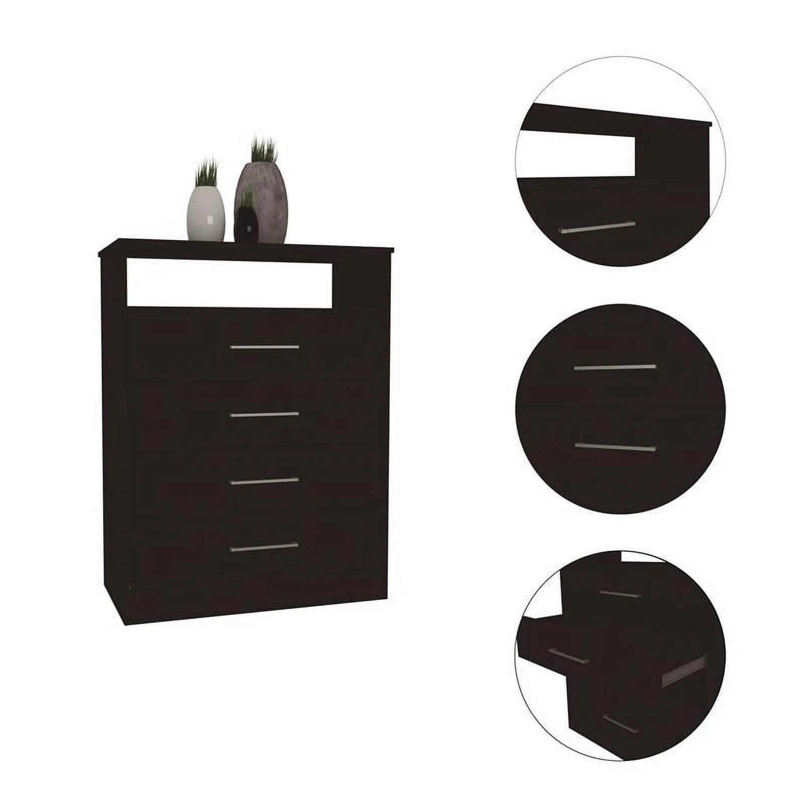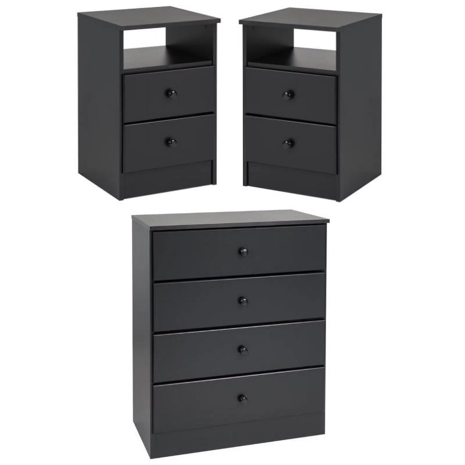 Home Square 3-Piece Furniture Set with 2 Nightstands and 4-Drawer Chest in Black